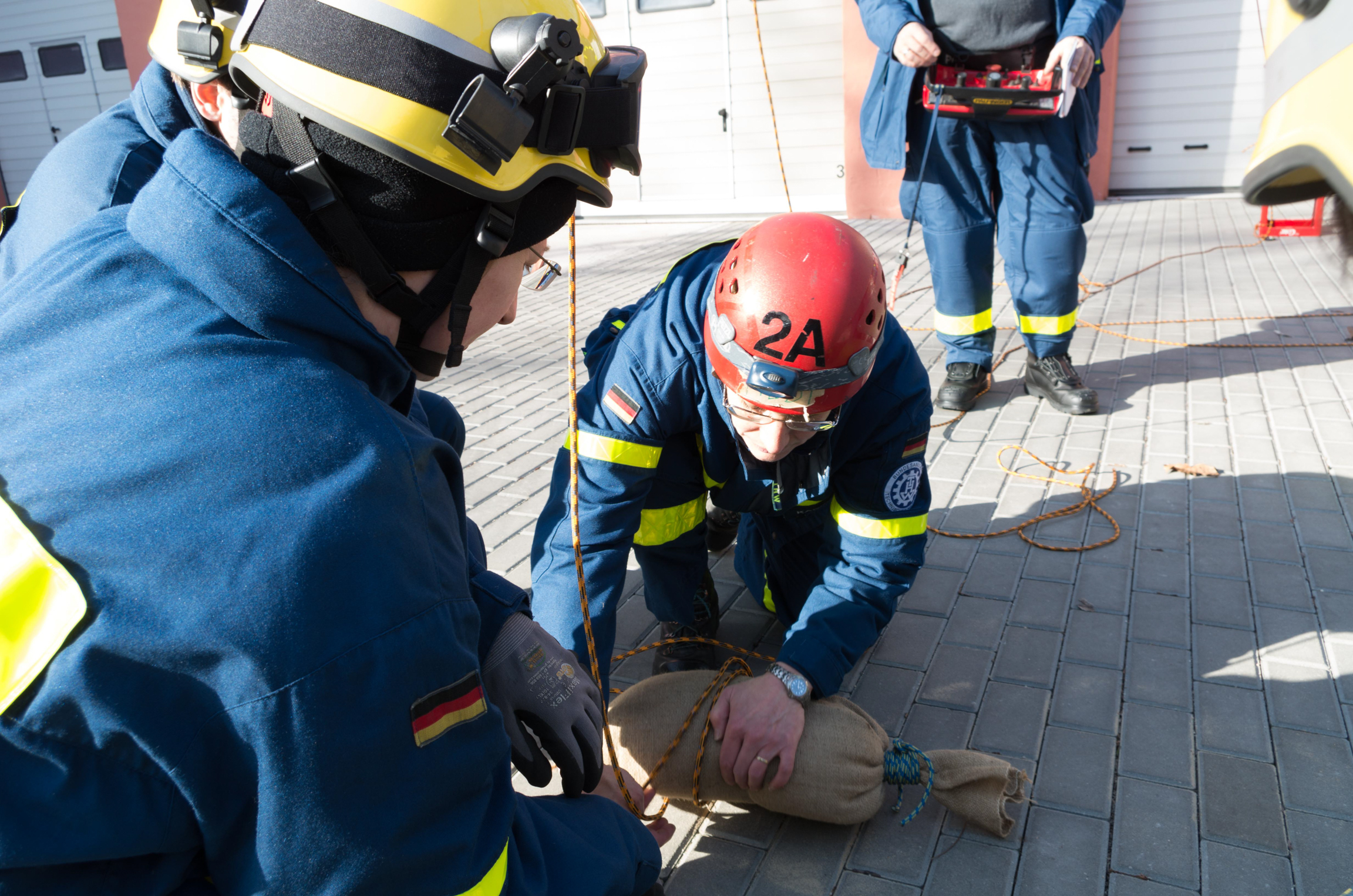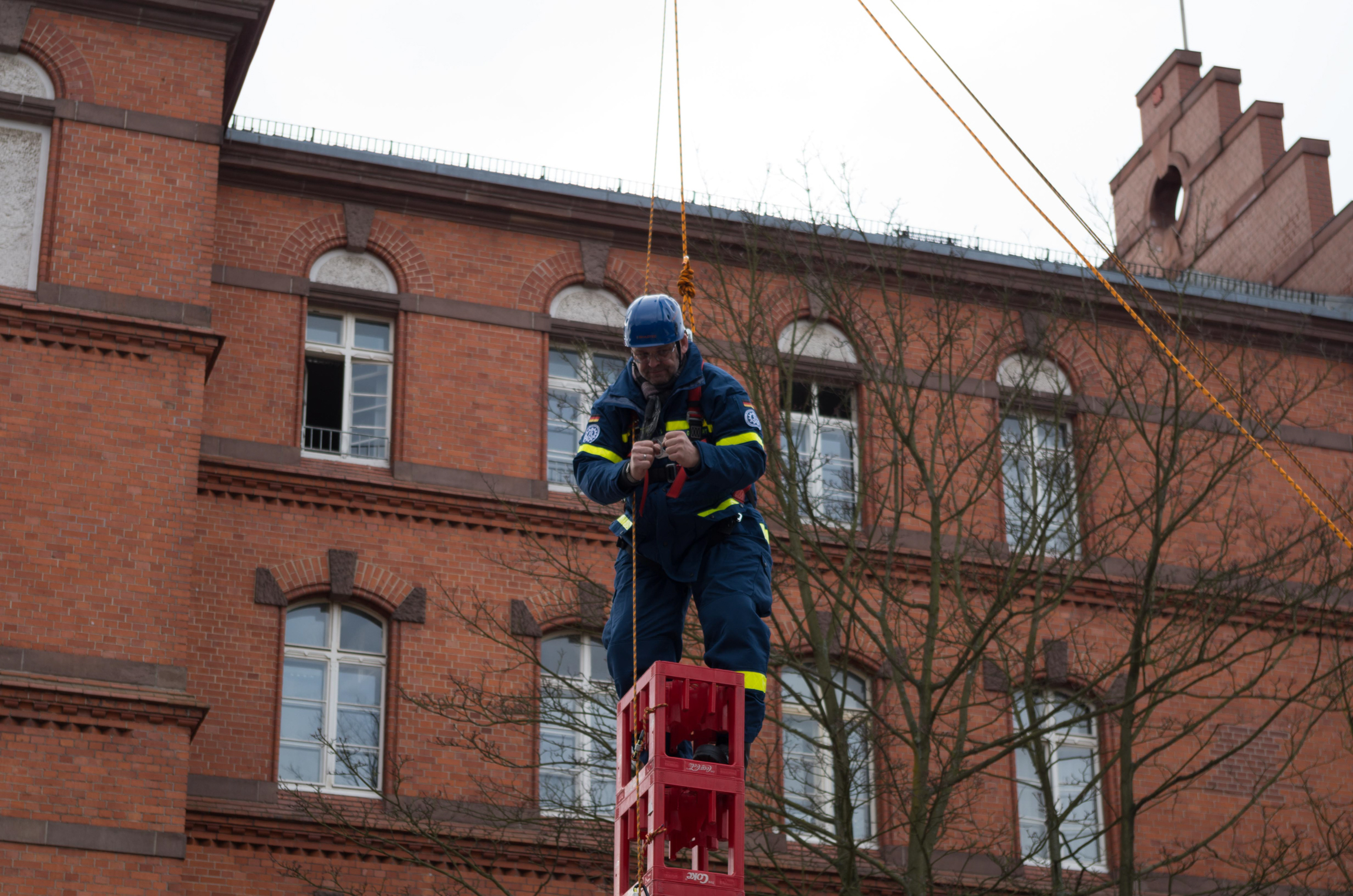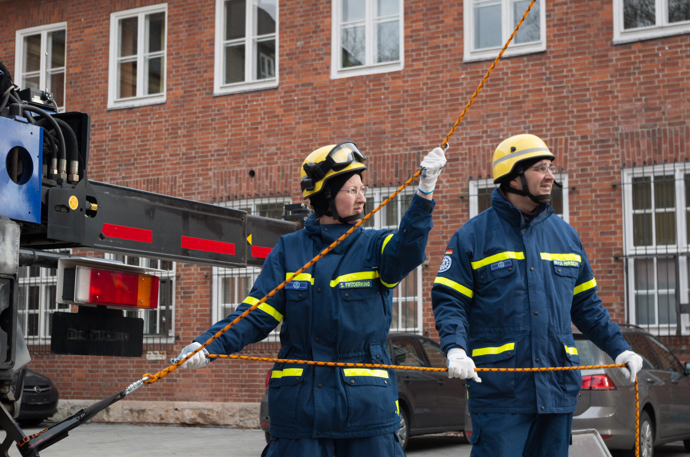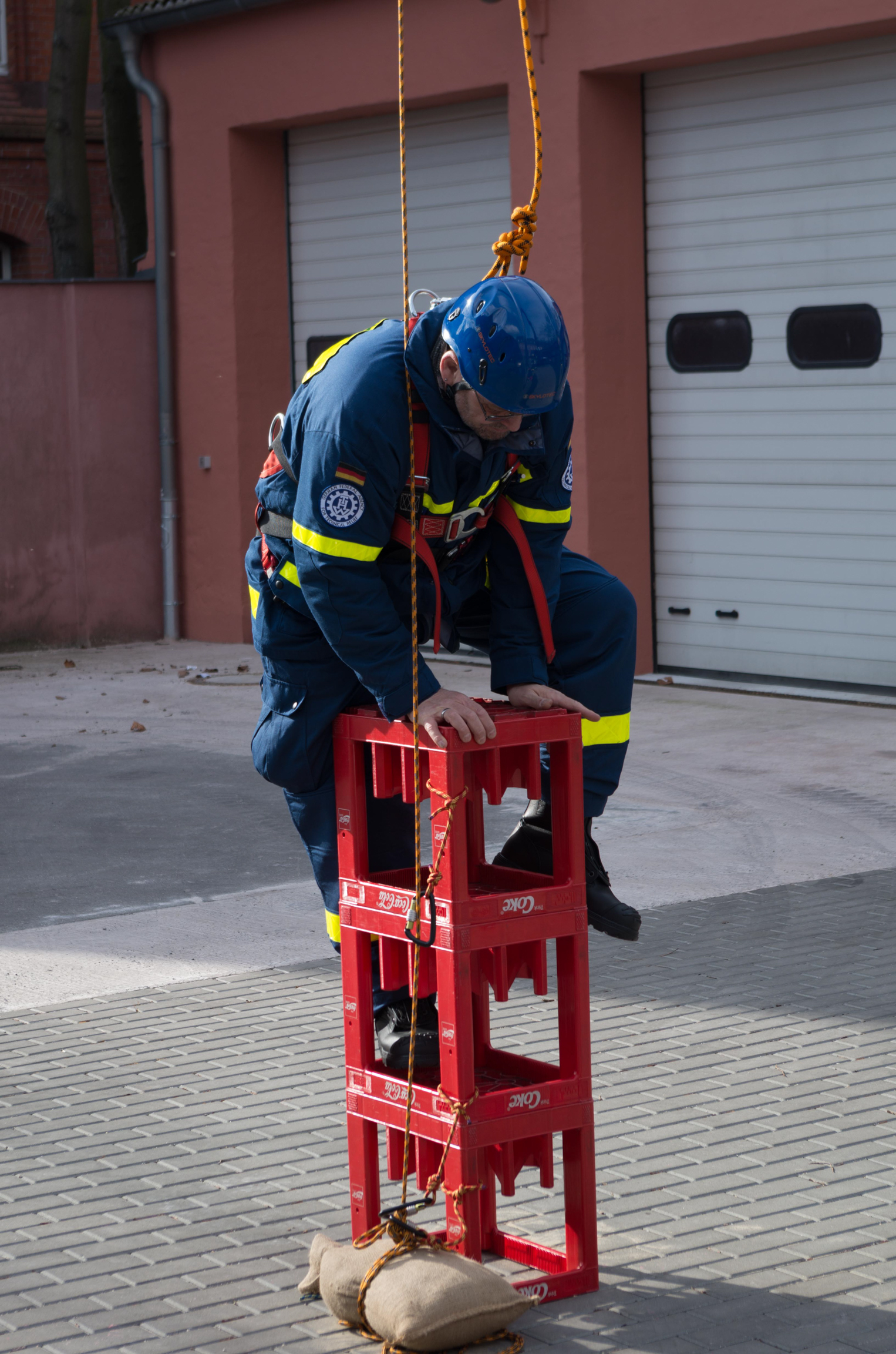 Insgesamt elf Stunden lang trainierten die Helferinnen und Helfer aus Charlottenburg-Wilmersdorf, Neukölln und unserem Ortsverband die richtige Handhabung des Spiels mit großer Technik. Viele Dinge sind zu erlernen gewesen, von der richtigen Positionierung des THW-Krans bis zur richtigen Sicherung der Teilnehmenden. Als Nebeneffekt konnten die Neulinge unter den Expertinnen und Experten gleich selbst testen, wie schwer das Kistenstapeln, am Kran hängend, eigentlich ist.