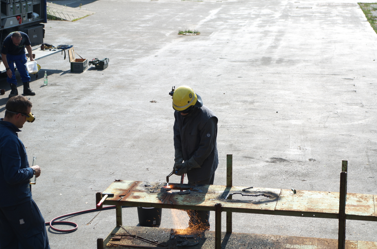 tallen. Während der drei Tage dauernden Ausbildung wurde auf zahlreiche Verfahren aus den Bereichen des Trennens sowie des Fügens von Metallen eingegangen, so übten die Helfer beispielsweise das Brennschneiden, Bohren oder Plasmaschweißen.