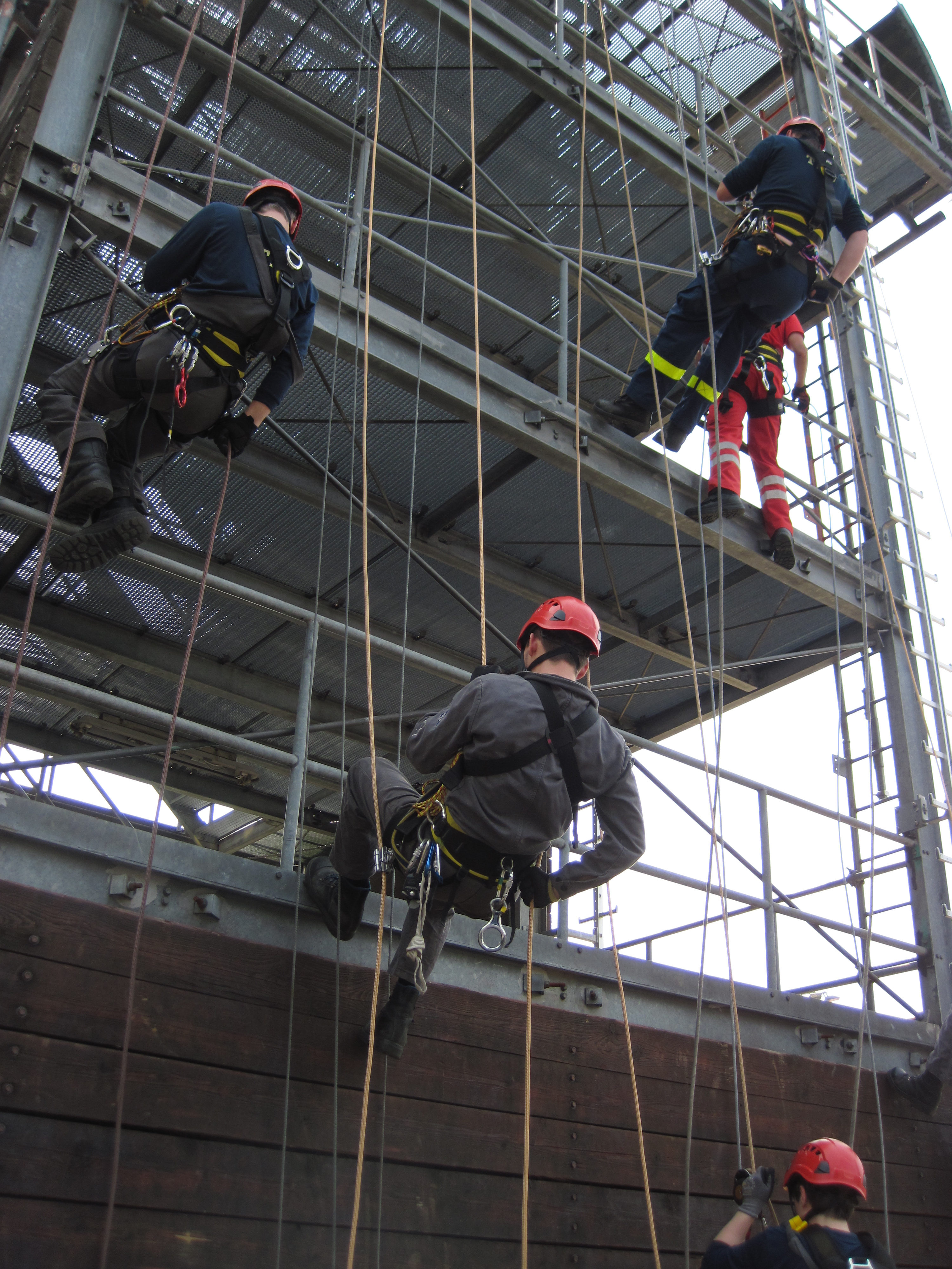 Am Sonntag den 27.7. 2014 übte zudem die Höhenrettung an dem etwa 16 Meter hohen Übungsturm das Abseilen mittels verschiedener Abseilgeräte sowie das erneute Aufsteigen im Seil.