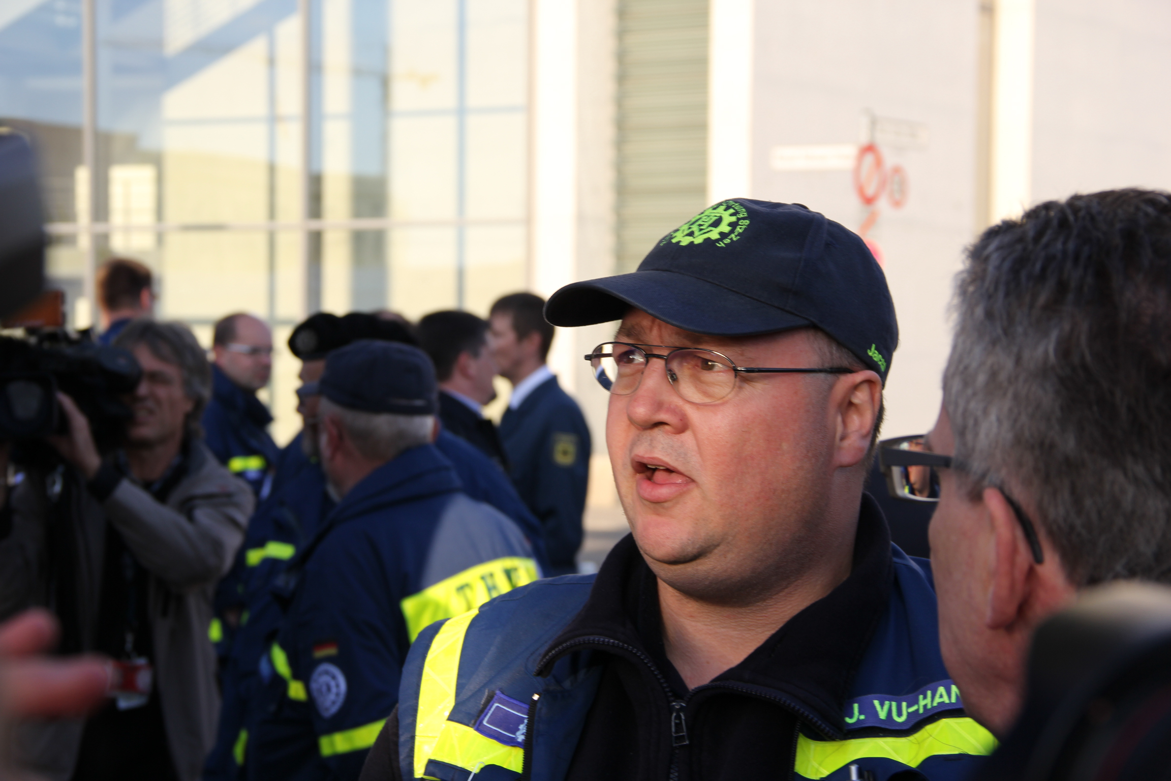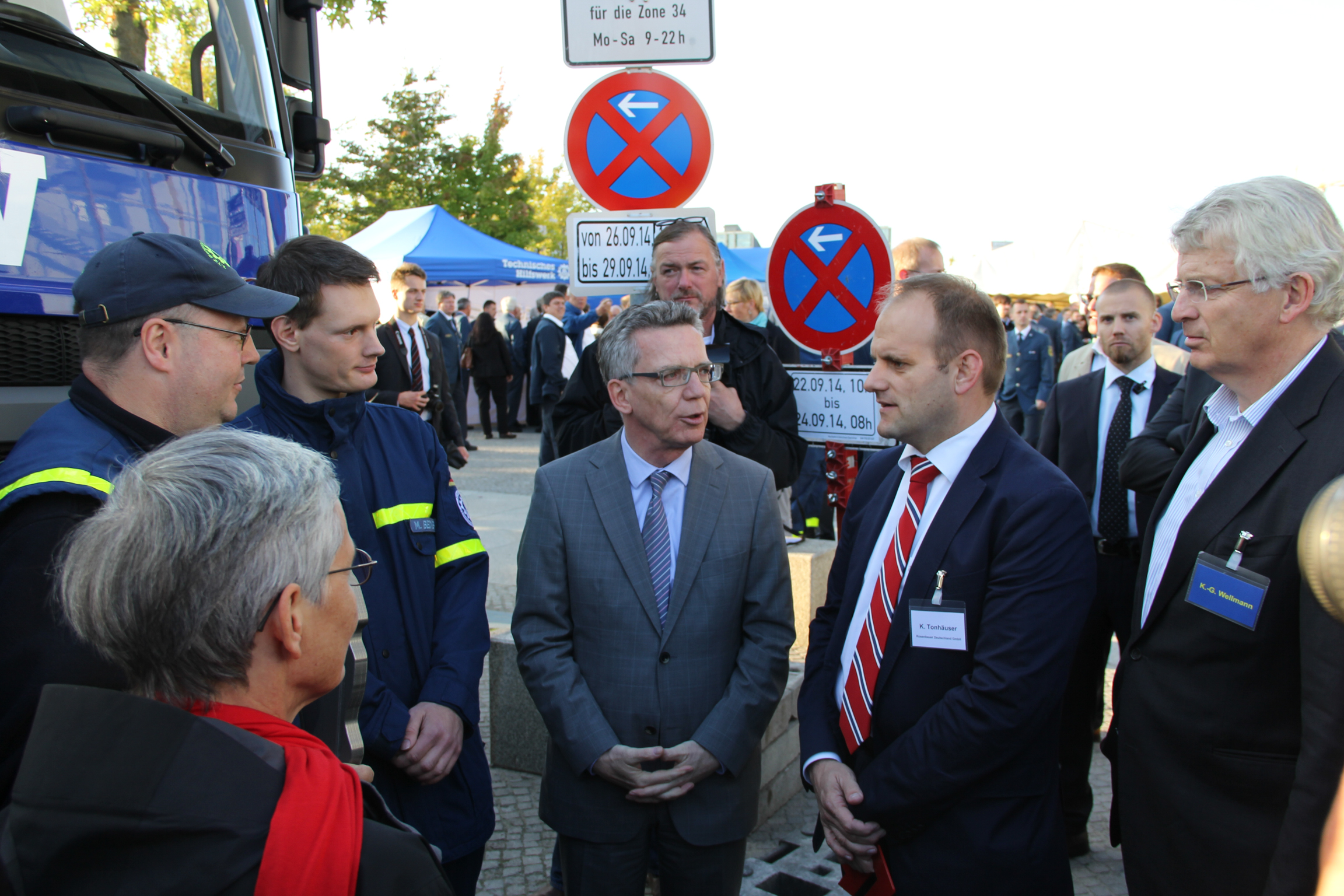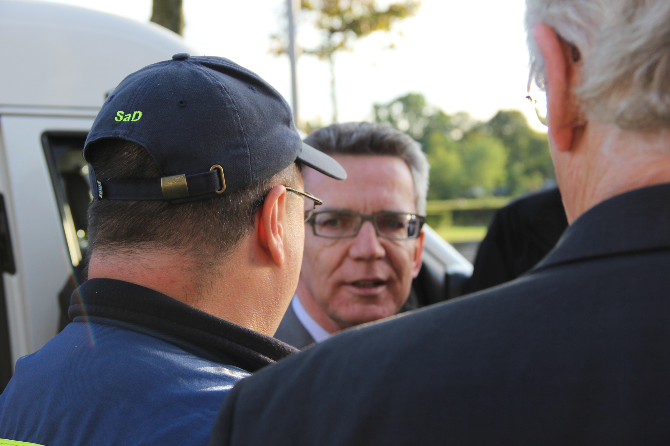 Bundesinnenminister Dr. Thomas de Maizière, MdB, im Gespräch mit unseren Helfern