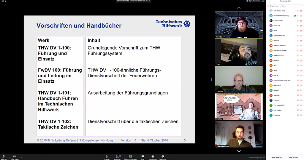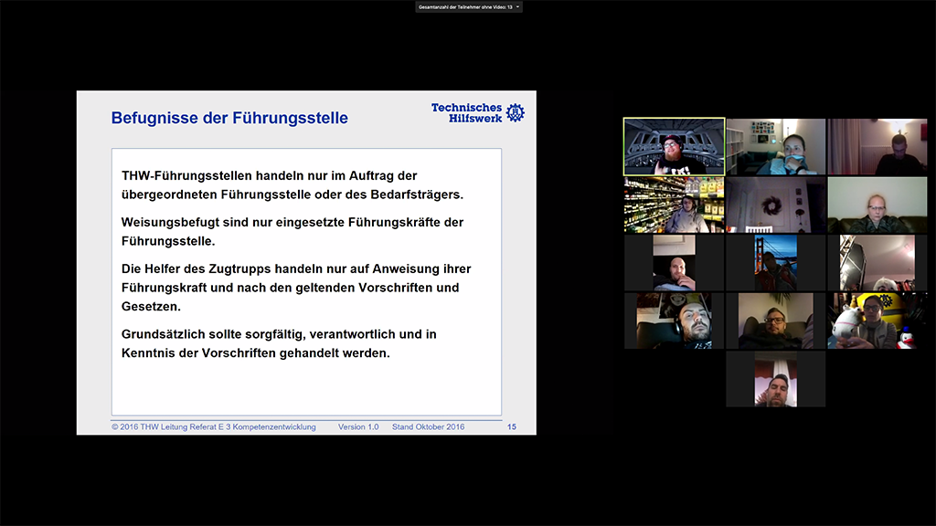 Auch findet jeden Samstag ein online Kameradschaftsabend statt. Gerade in diesen fordernden Zeiten werden die festen wöchentlichen Termine begeistert angenommen und bringen die Helfer unseres Ortsverbandes kameradschaftlich zusammen.
