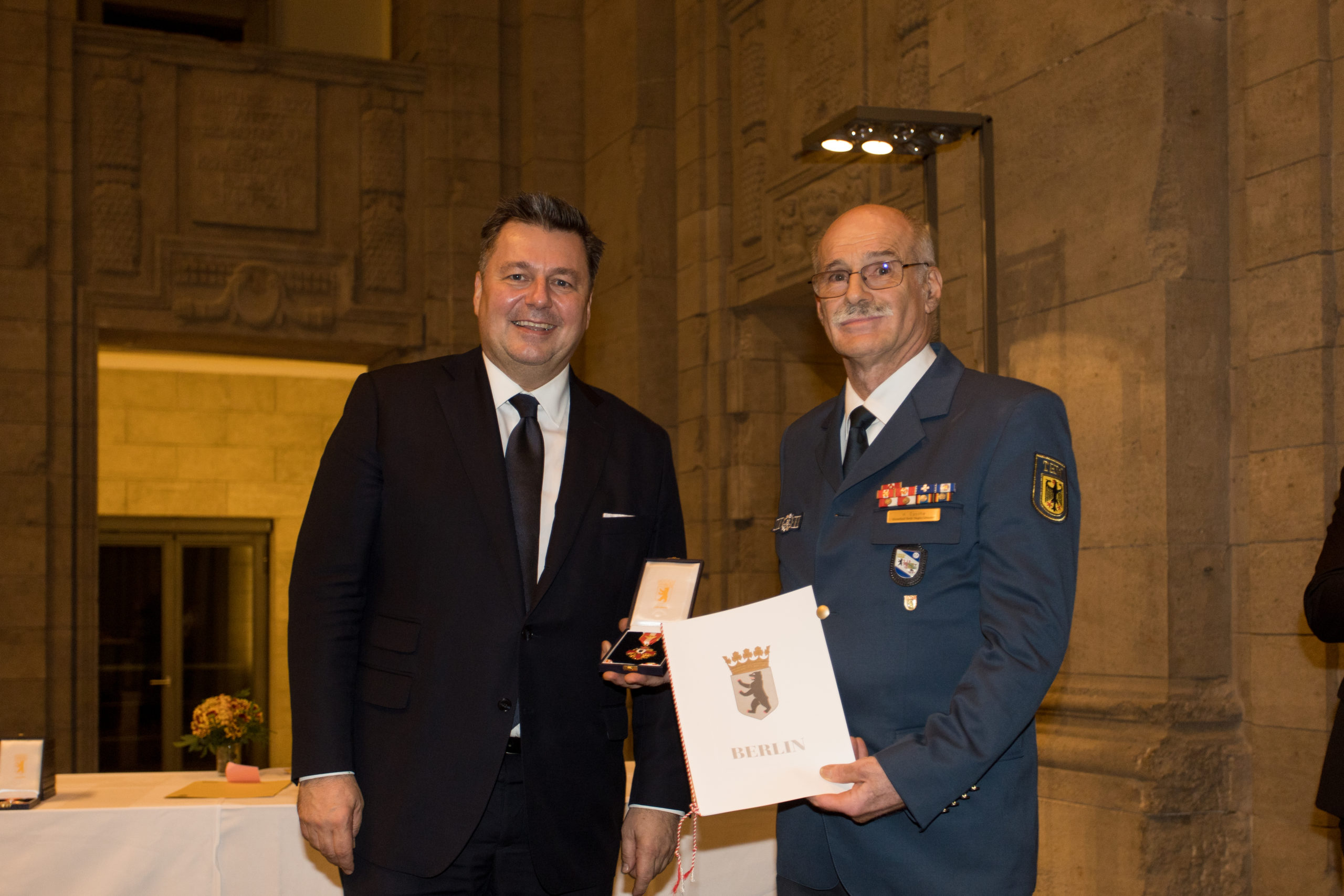 Aus der Hand unseres Innensenators Herrn Andreas Geisel erhielt Horst Gäsche die Ehrung für 50 Jahre Zugehörigkeit zum Technischen Hilfswerk.