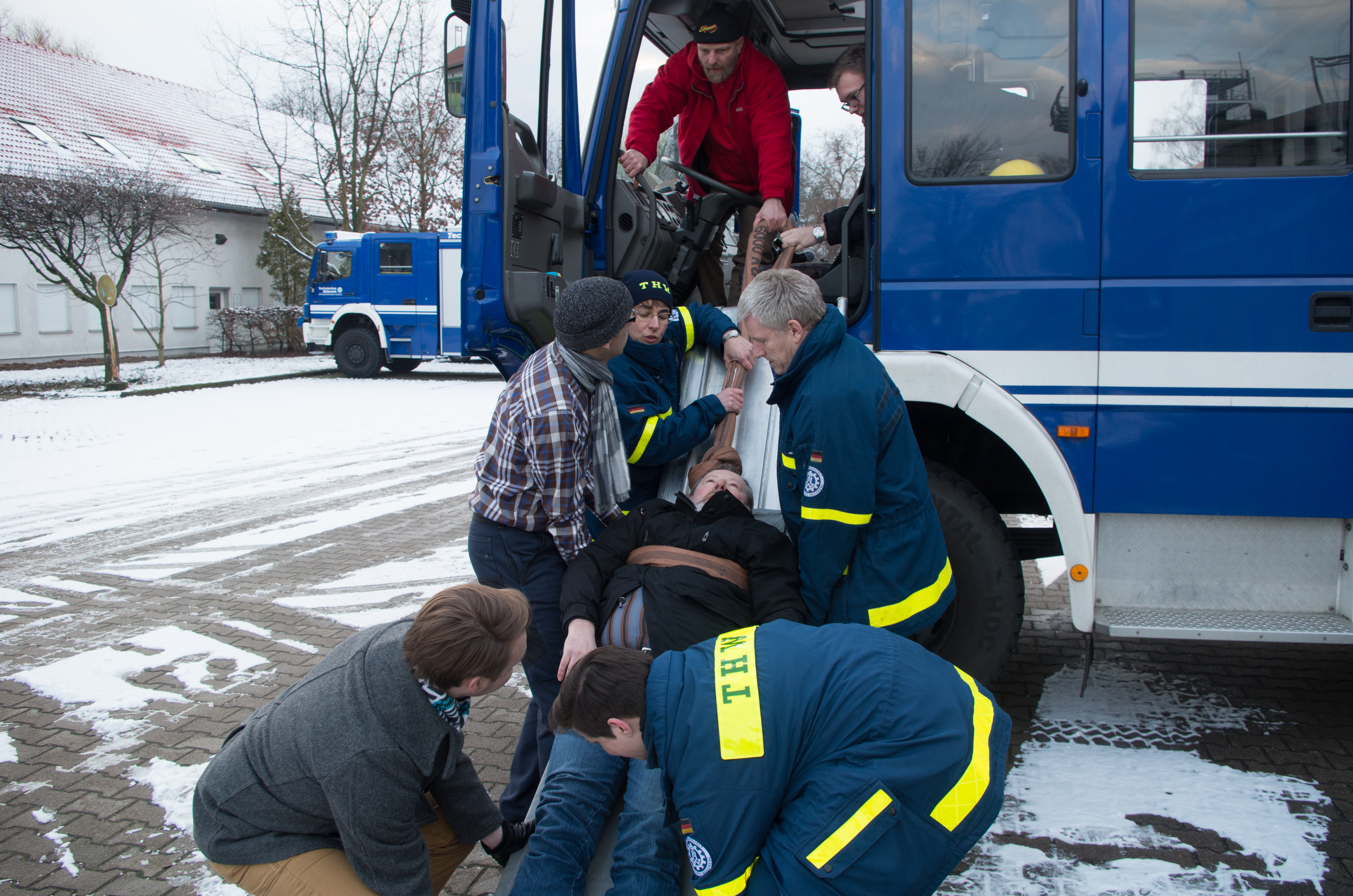 Sowohl im Einsatz als auch im Alltag ist im Ernstfall, beispielsweise bei einem Autounfall, schnelle Hilfe nötig um einen Verletzten bis zum Eintreffen des Rettungsdienstes zu versorgen. Aus diesem Grund trainierten die Helferinnen und Helfer der Ortsverbände Steglitz-Zehlendorf und Potsdam, unter Anleitung zweier Ausbilder der DLRG, verschiedene Techniken zur Versorgung von Verletzten.