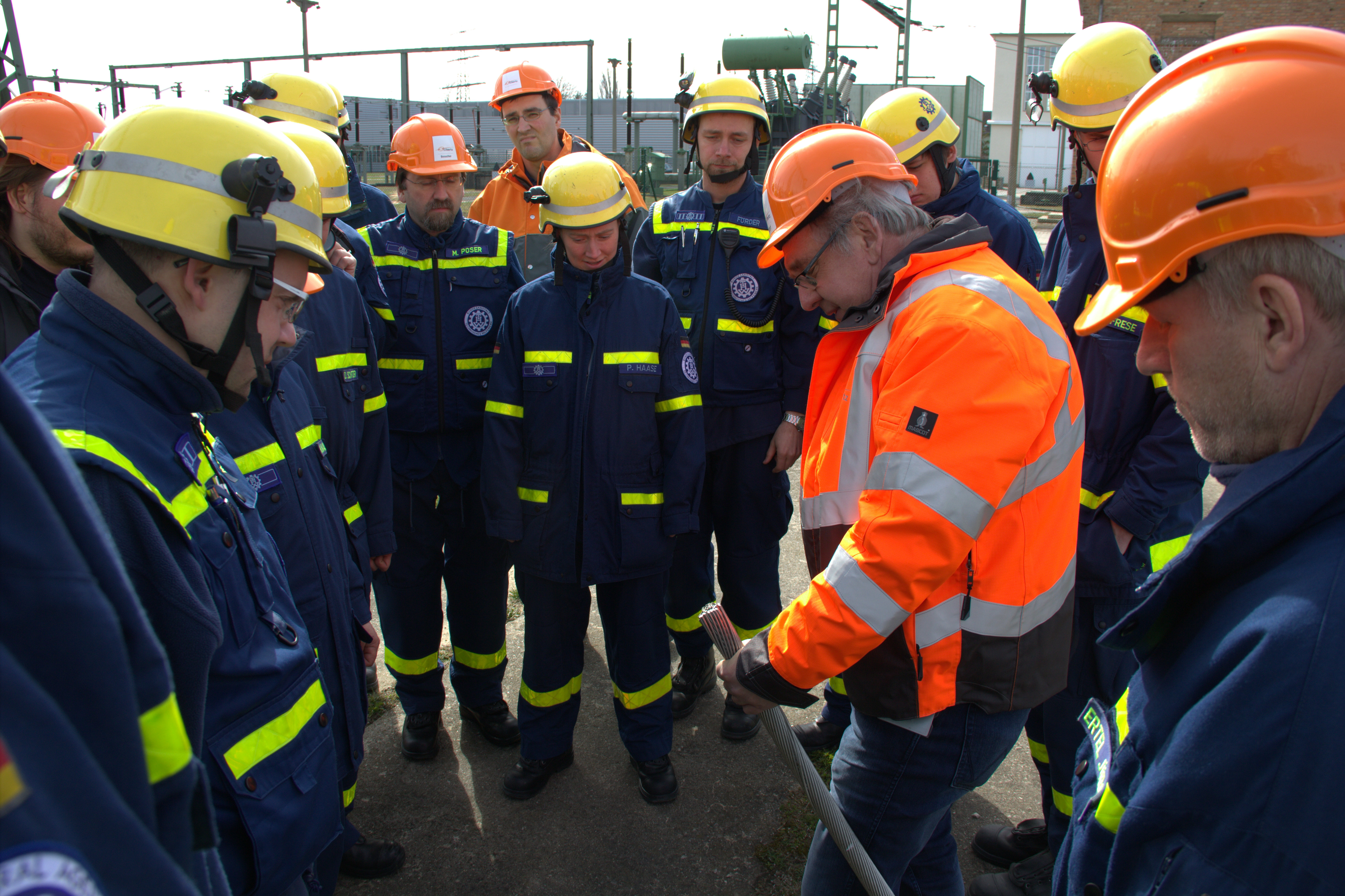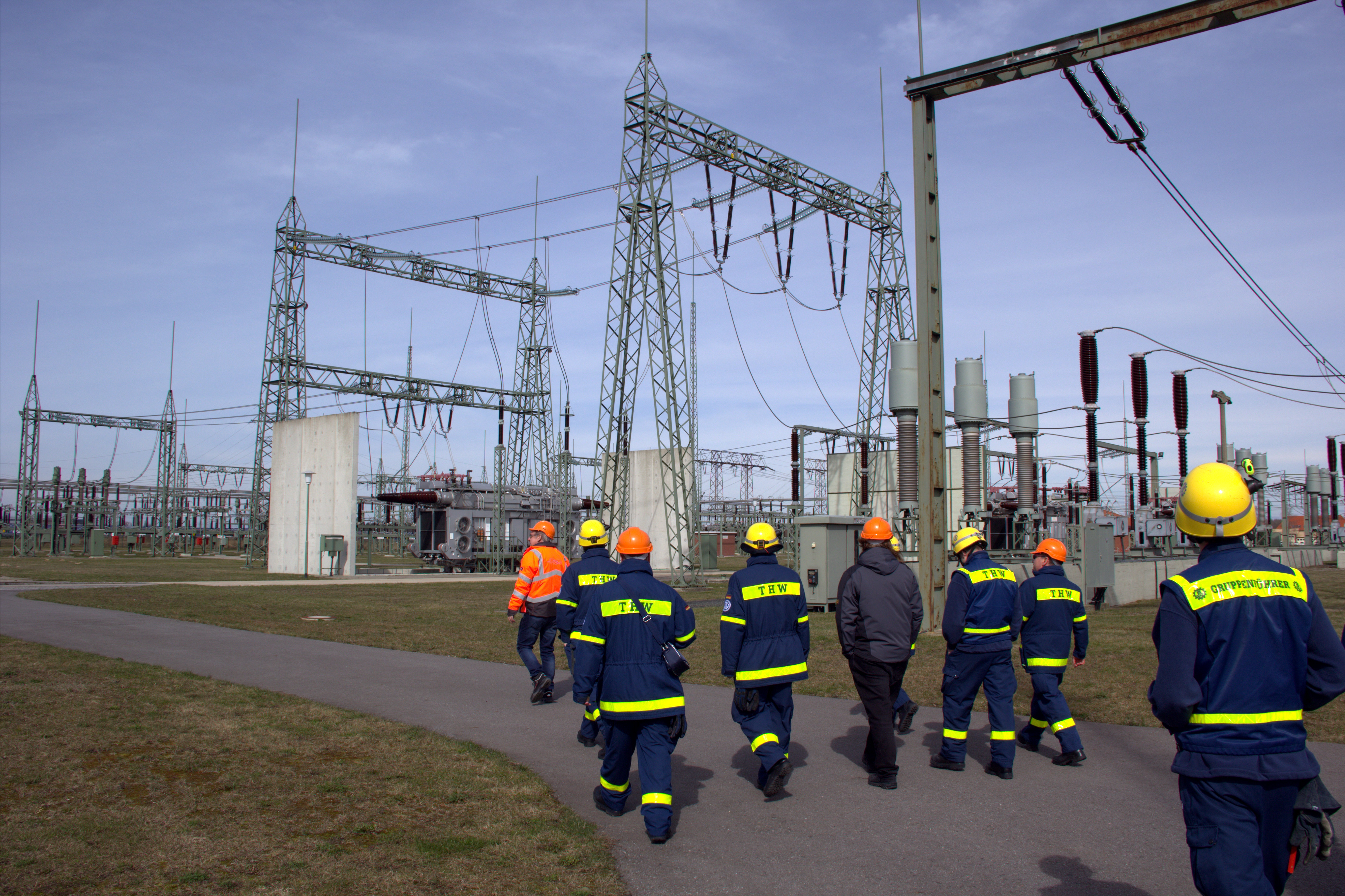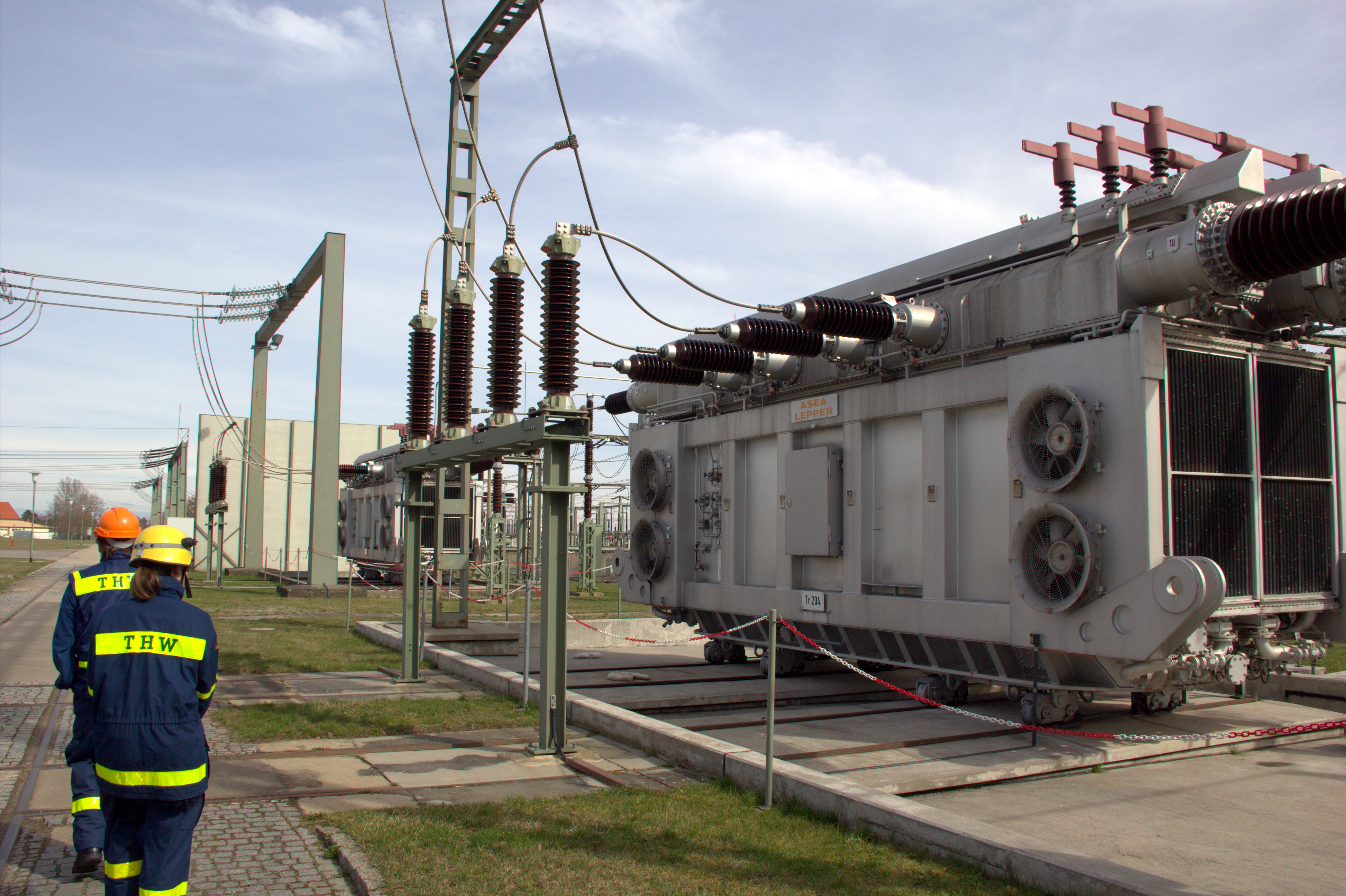 Um die Versorgung großer Städte und Industrien mit elektrischer Energie sicherzustellen, sind hohe Leistungen und dementsprechende Infrastruktur erforderlich – so war es nicht verwunderlich, dass bei der Besichtigung des Umspannwerks Neuenhagen bei Berlin am Samstag, den 25.03.2017 schnell der Funke auf die anwesenden Helfer des Technischen Hilfswerks übersprang.