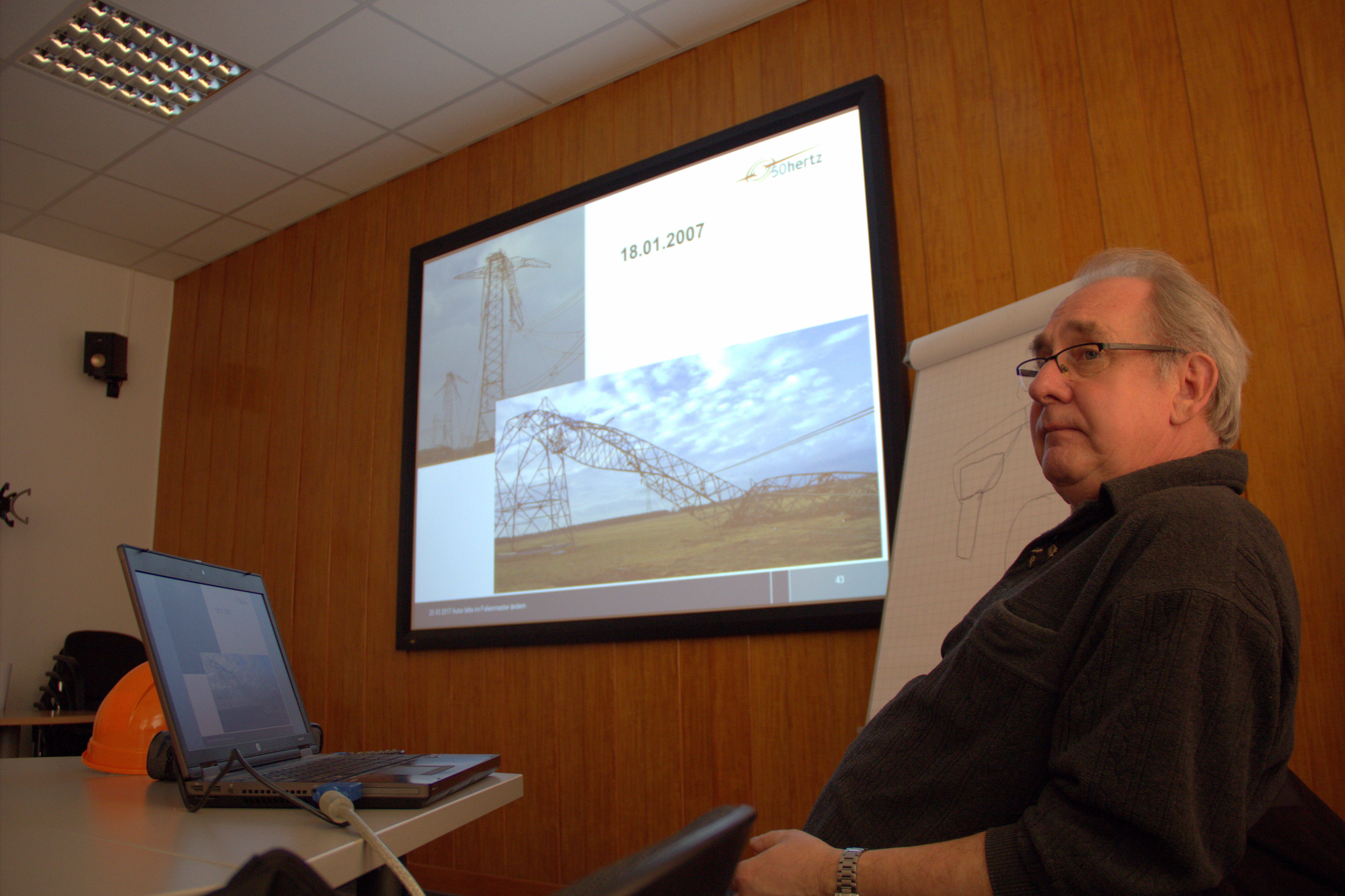 Erkenntnisreich waren zudem die Berichte über den Wartungs- und Instandsetzungsbetrieb an den Freileitungen selbst. Phänomene wie den Spannungstrichter kennt jeder THW-Helfer seit der Grundausbildung, doch die versteckten Risiken durch elektrische wie mechanische Energien beim Umgang mit teilzerstörten Masten und eine Aufschlüsselung der geltenden Sicherheitsabstände im Normalbetrieb gehörten zu den merkenswerten Eindrücken des informationsgeladenen Tages.