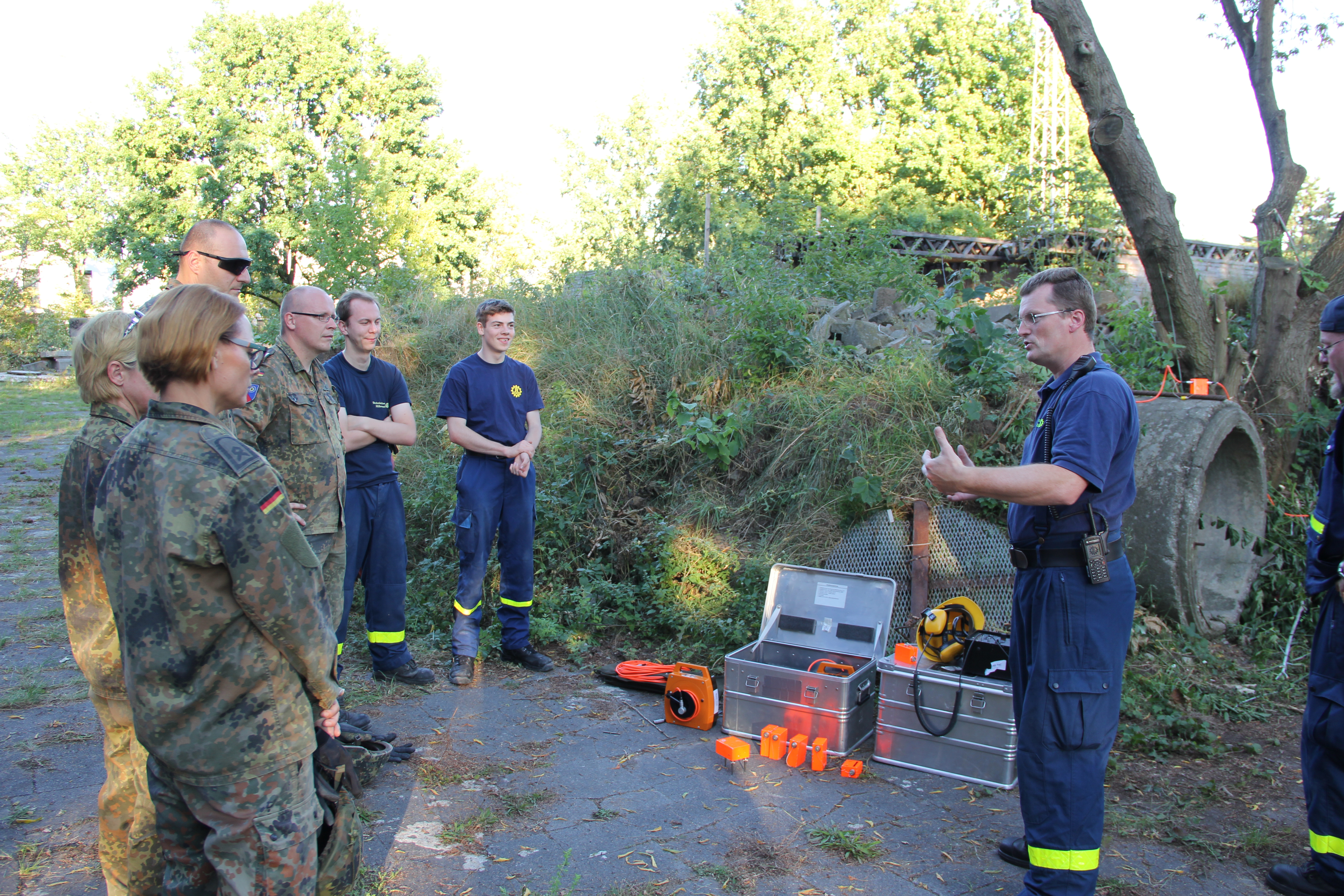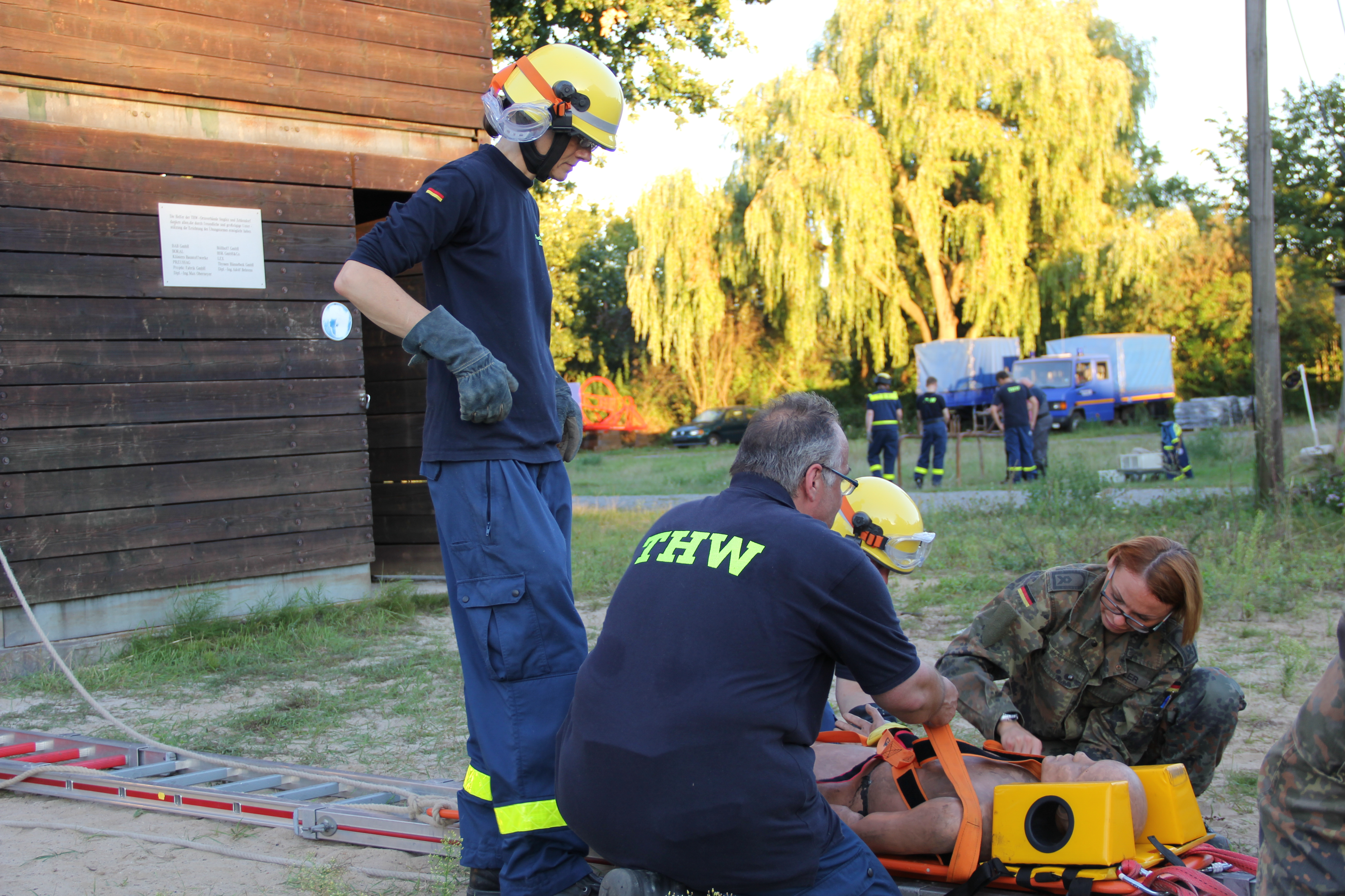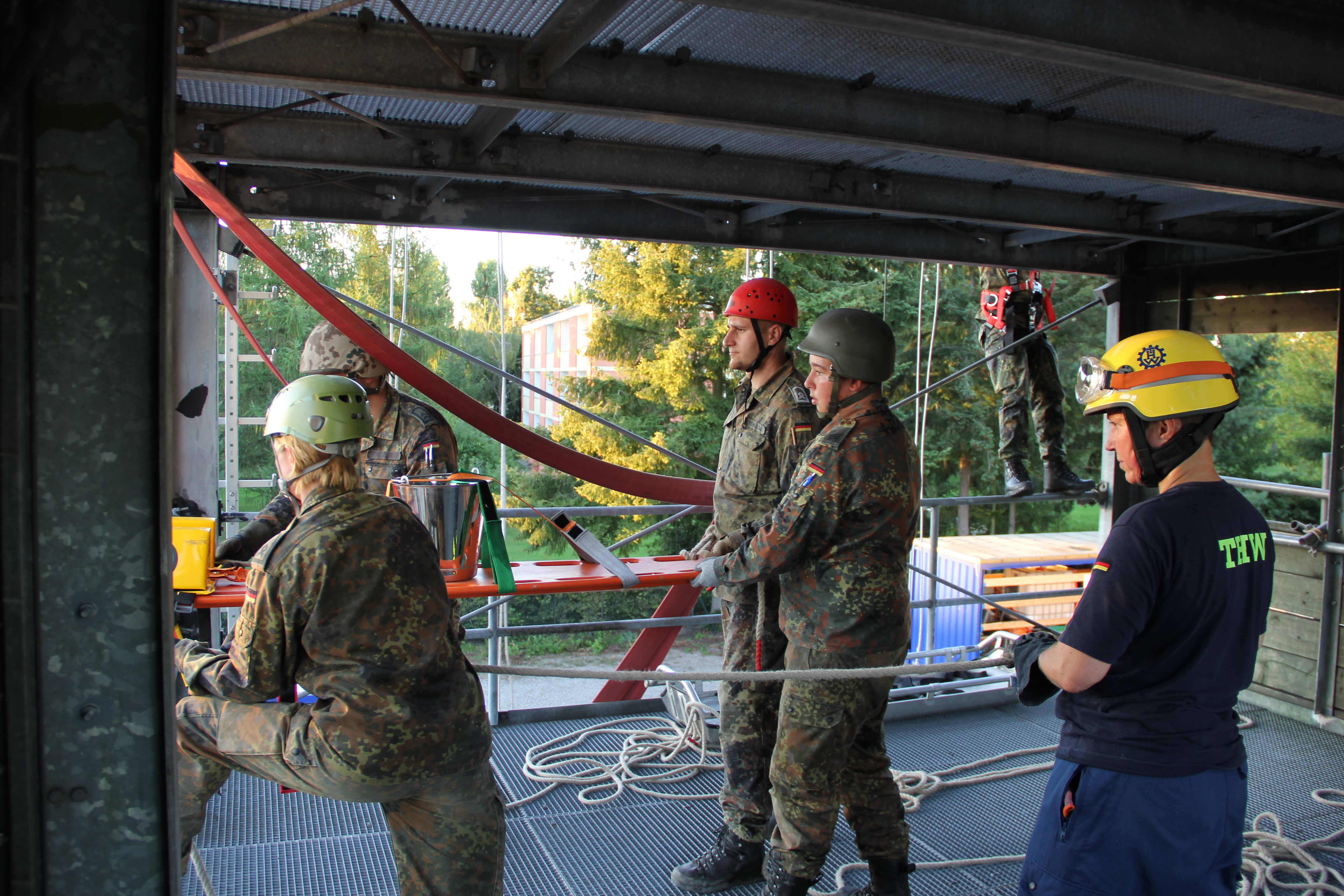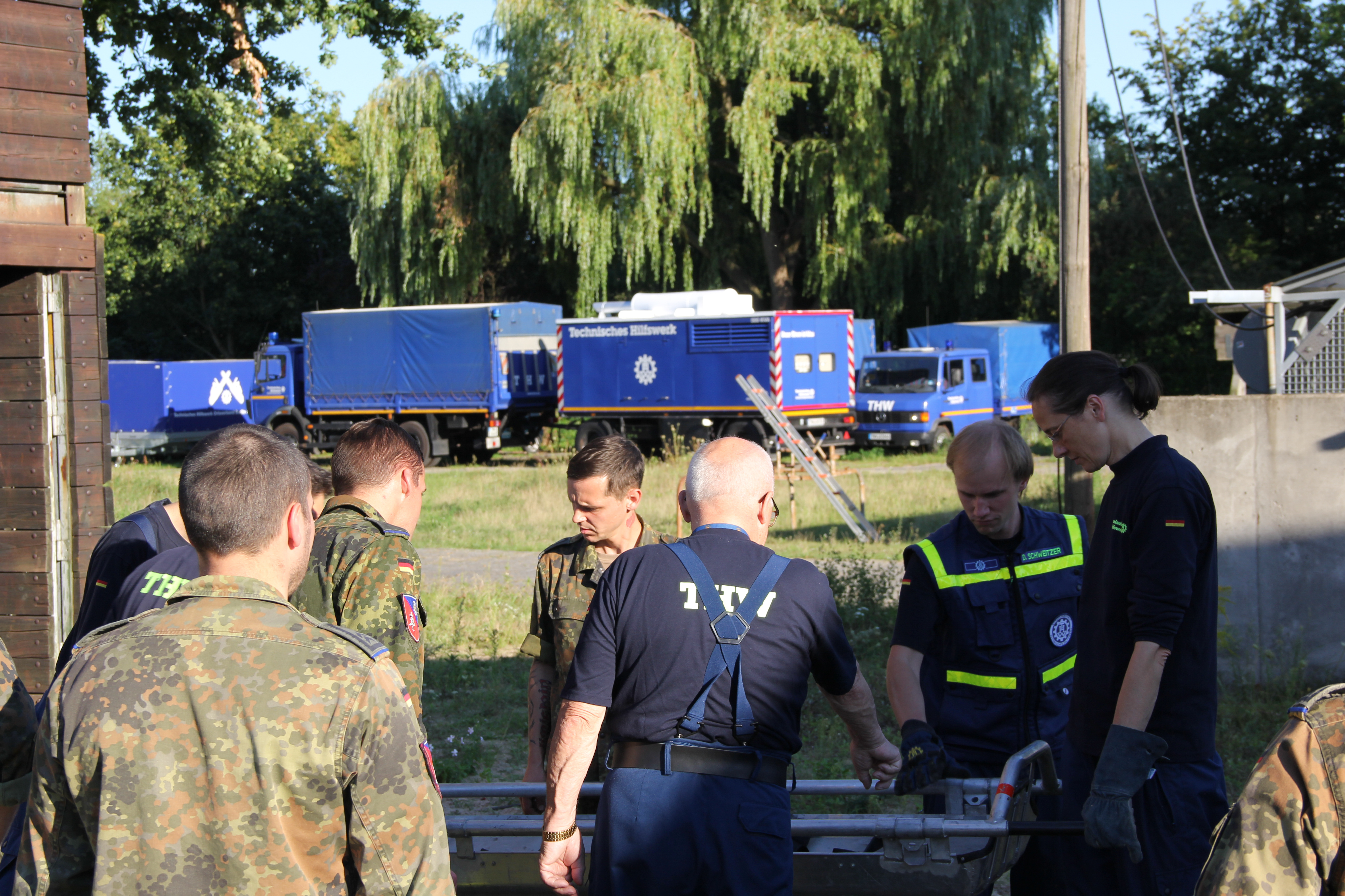So unterschiedlich die Aufgaben und Aufträge auch sind: Wenn es darum geht, Menschen aus Gefahr zu retten, sind sowohl Bundeswehr als auch THW gefragt. Deshalb trafen wir uns am vergangenen Mittwoch wieder mit Soldatinnen und Soldaten aus der 7. Kompanie des 1. Sanitätsregiments in Berlin-Kladow, um ihnen einige Erfahrungen aus unserem Bereich weiterzugeben.