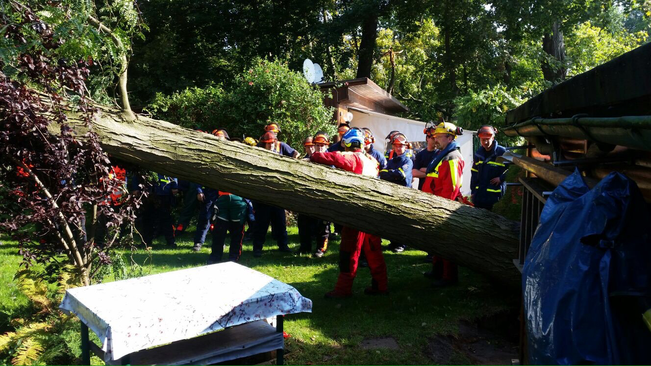 Realitätsnaher kann man Einsatzkräfte kaum an der Motorkettensäge ausbilden: Fast 50 Helferinnen und Helfer wurden bei einem Einsatzszenario der besonderen Art nach dem neuesten THW-Standard an den Geräten ausgebildet. Ein Verein hatte uns zu Hilfe gerufen, weil bei einem schweren Gewitter auf der Insel Kleiner Rohrwall mehrere Bäume entwurzelt wurden und teilweise auf Gebäude gestürzt waren.