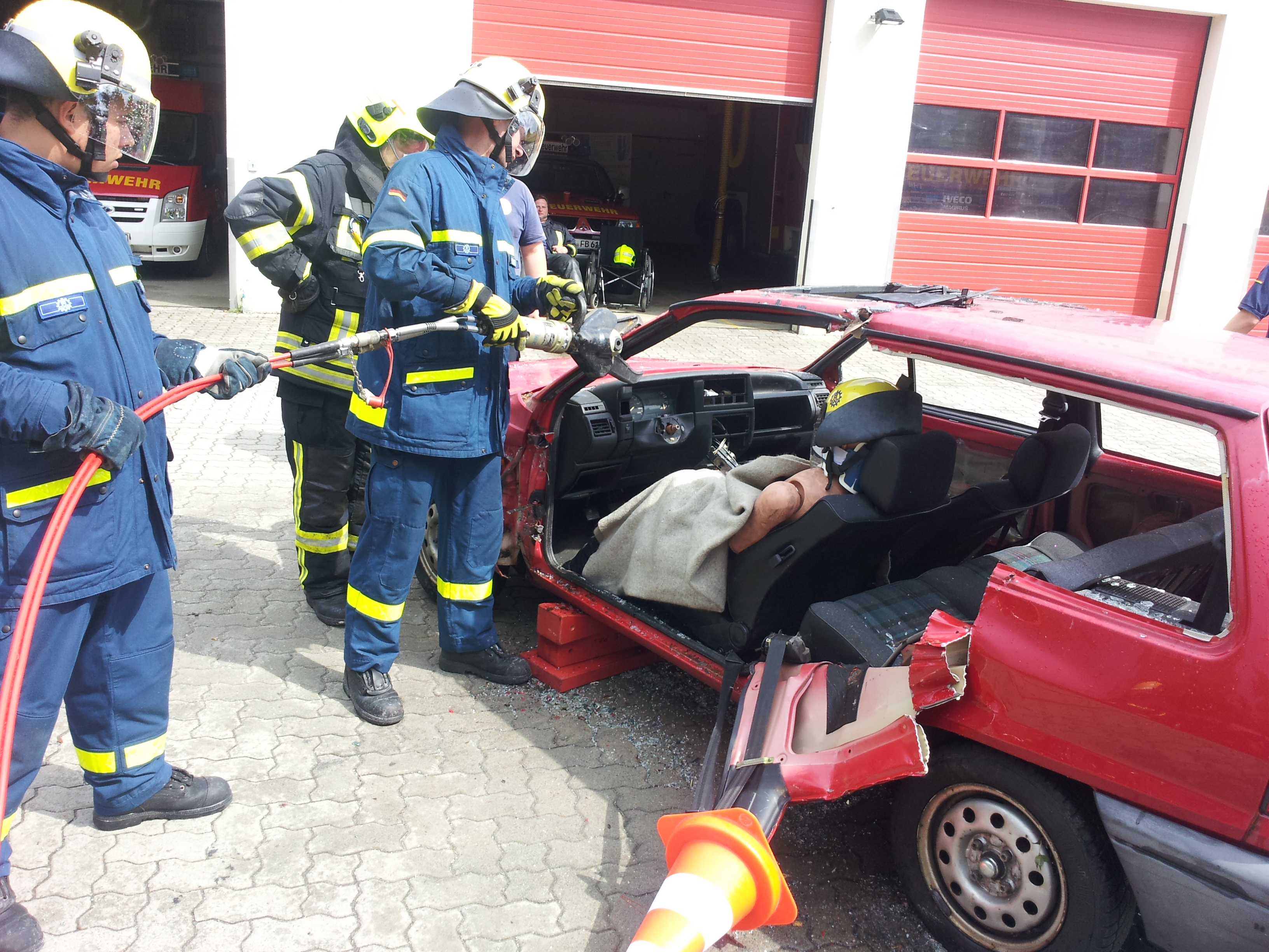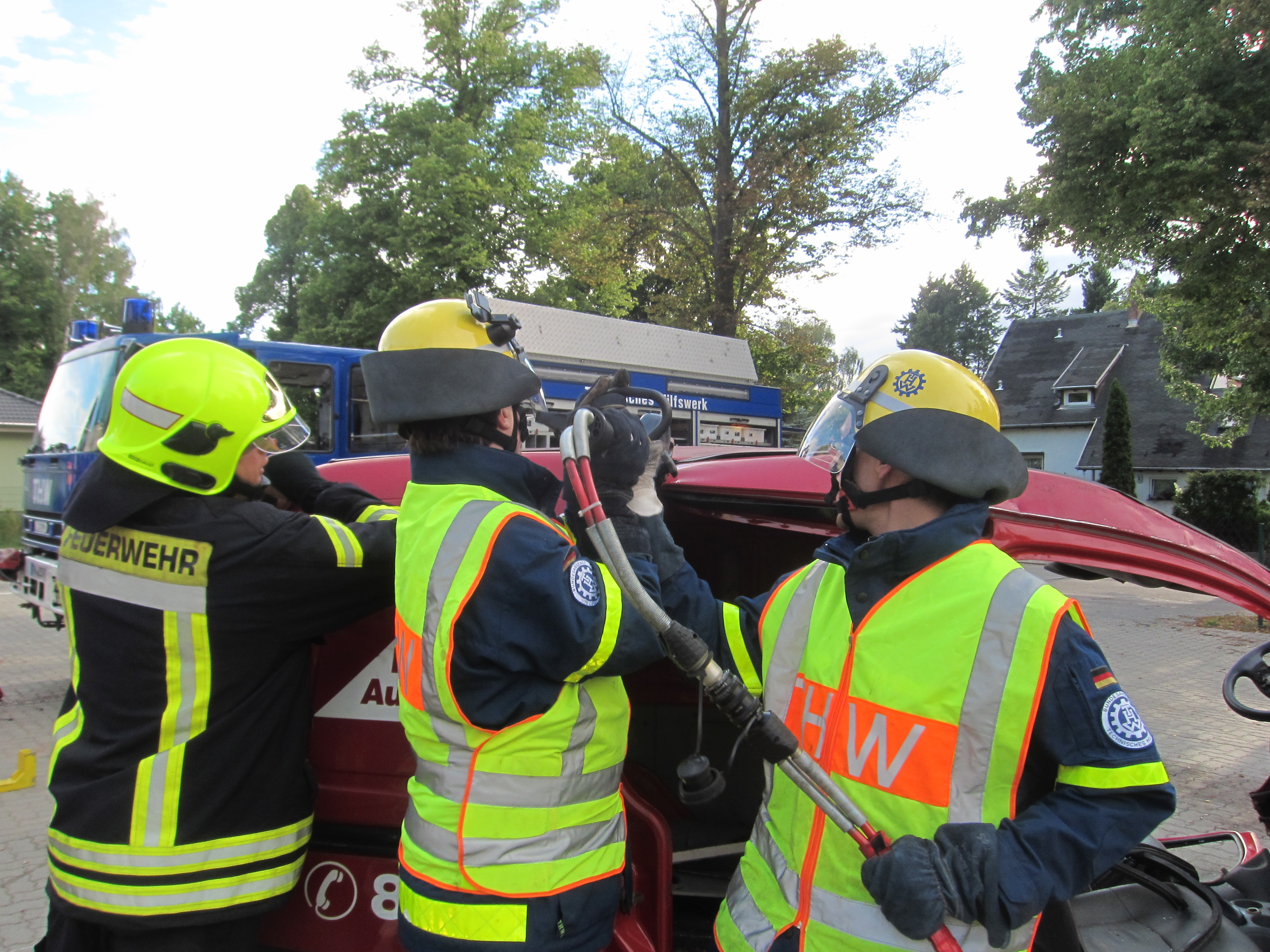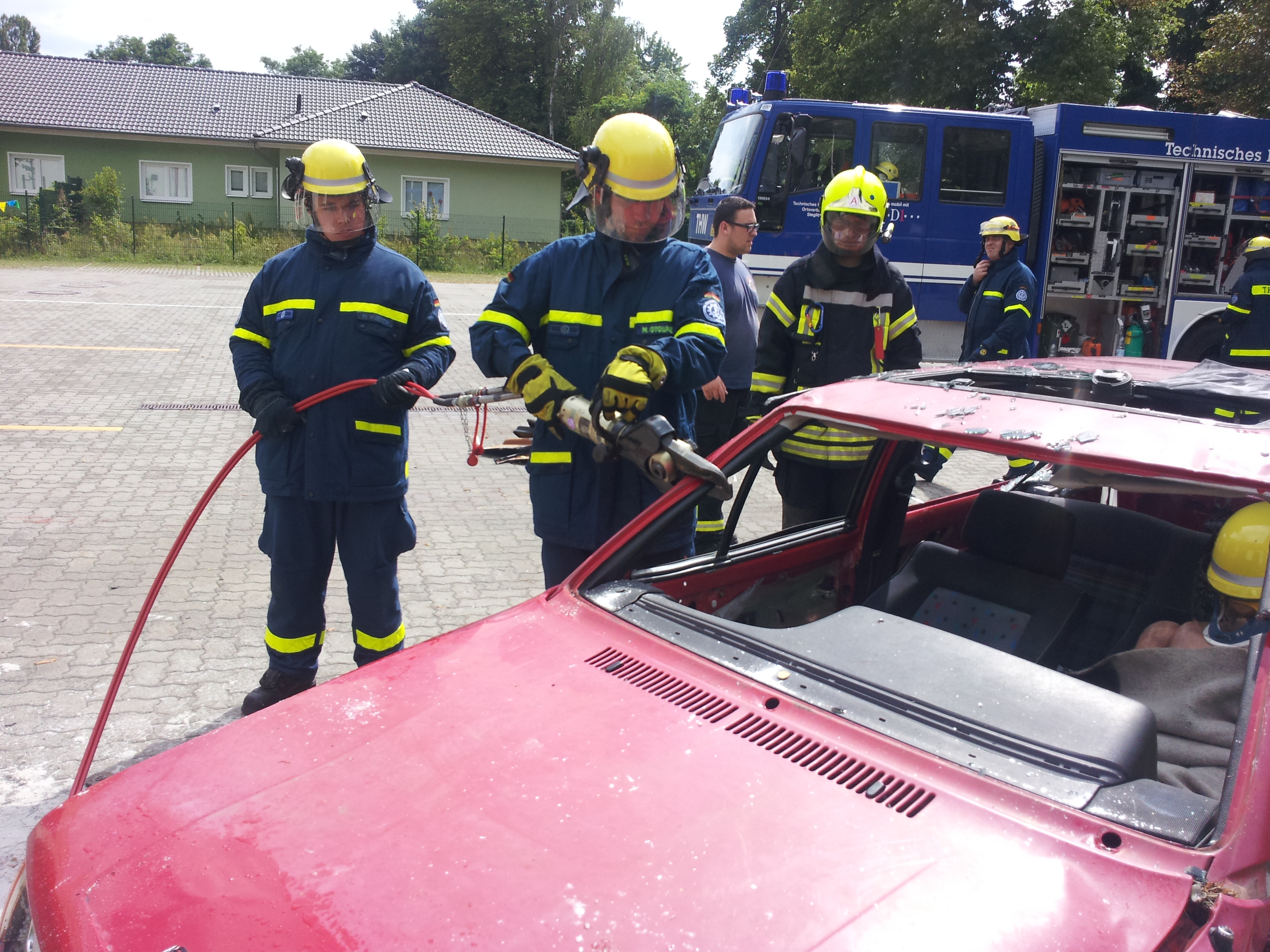 en aus verschiedenen Gruppen des Ortsverbandes Steglitz-Zehlendorfvon der freiwilligen Feuerwehr Blankenfelde am 12. und 13. Juli 2014 eine Einweisung in die Personenrettung aus PKWs.