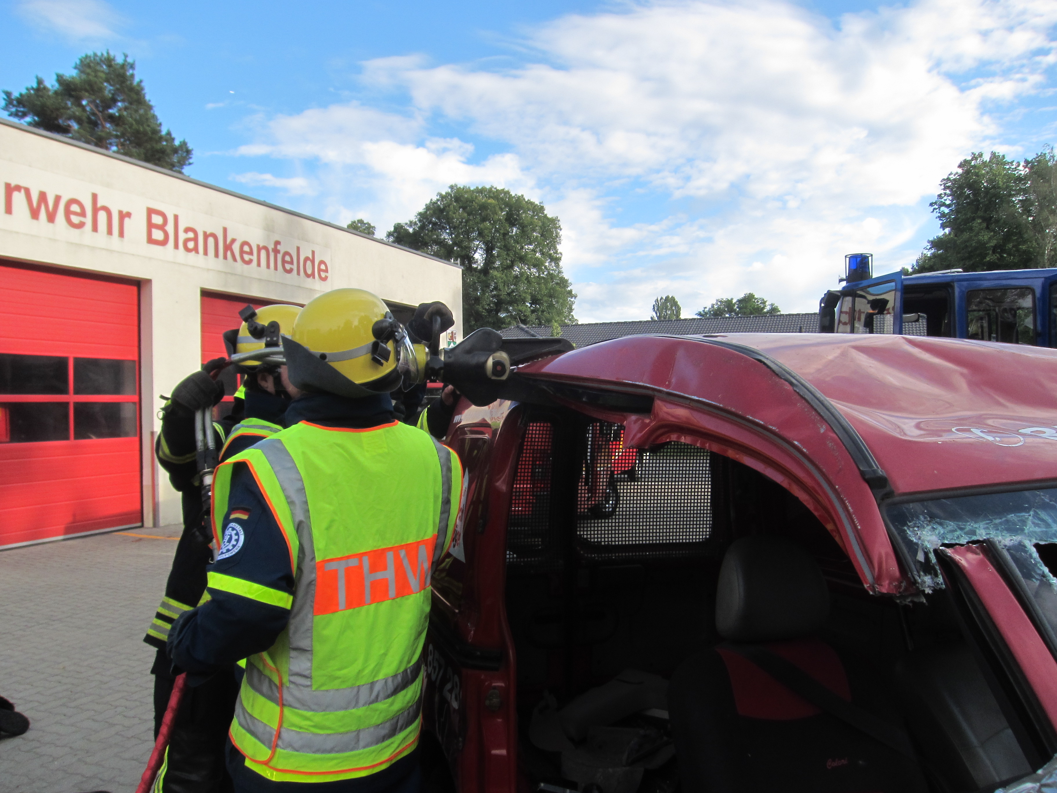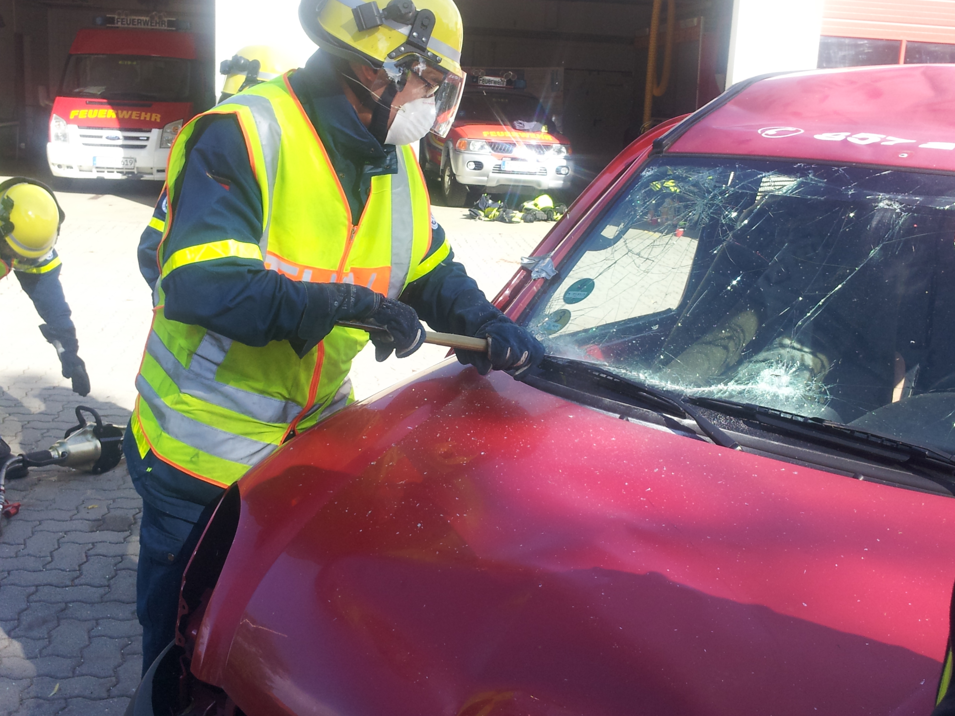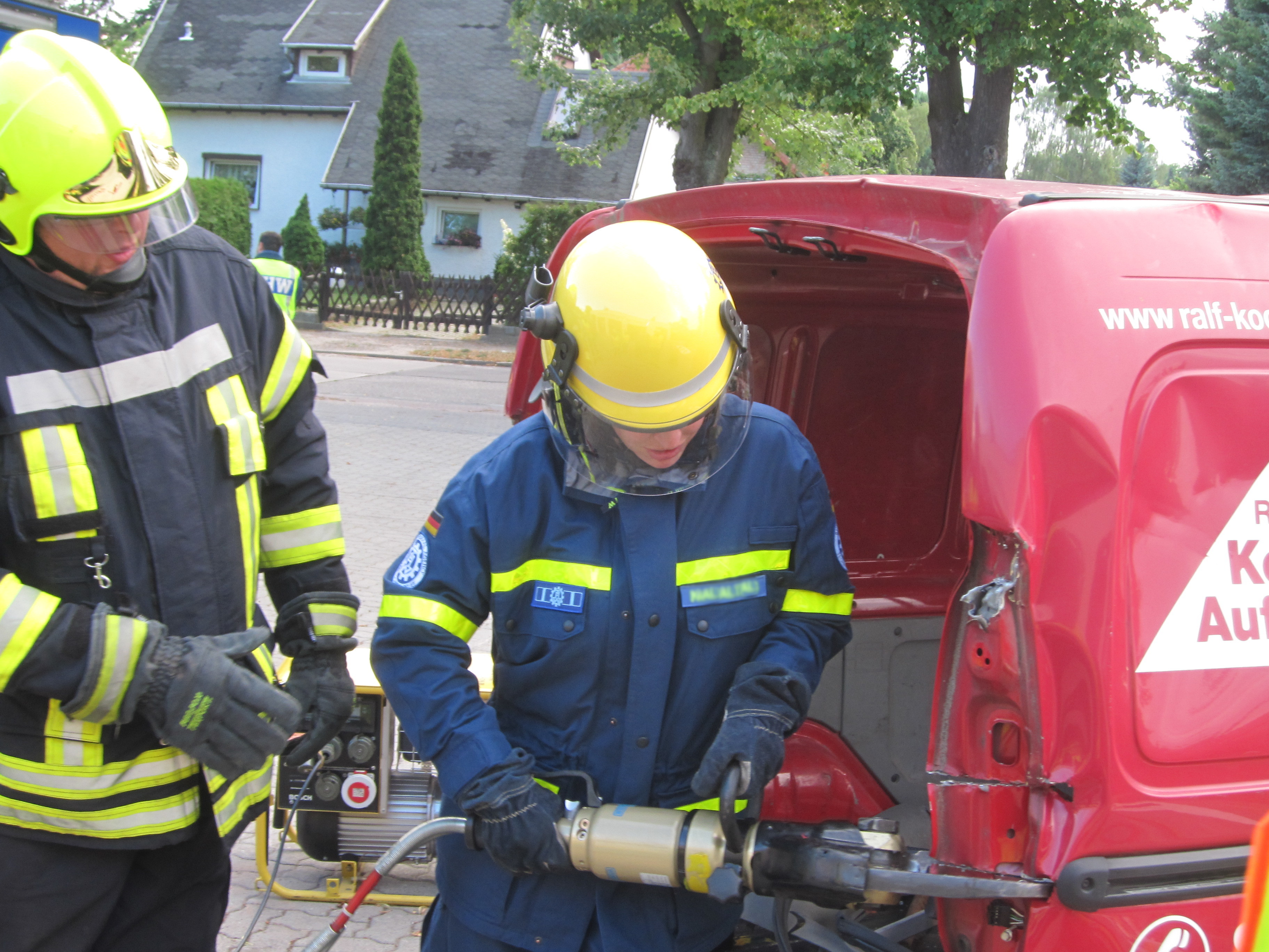 en aus verschiedenen Gruppen des Ortsverbandes Steglitz-Zehlendorfvon der freiwilligen Feuerwehr Blankenfelde am 12. und 13. Juli 2014 eine Einweisung in die Personenrettung aus PKWs.