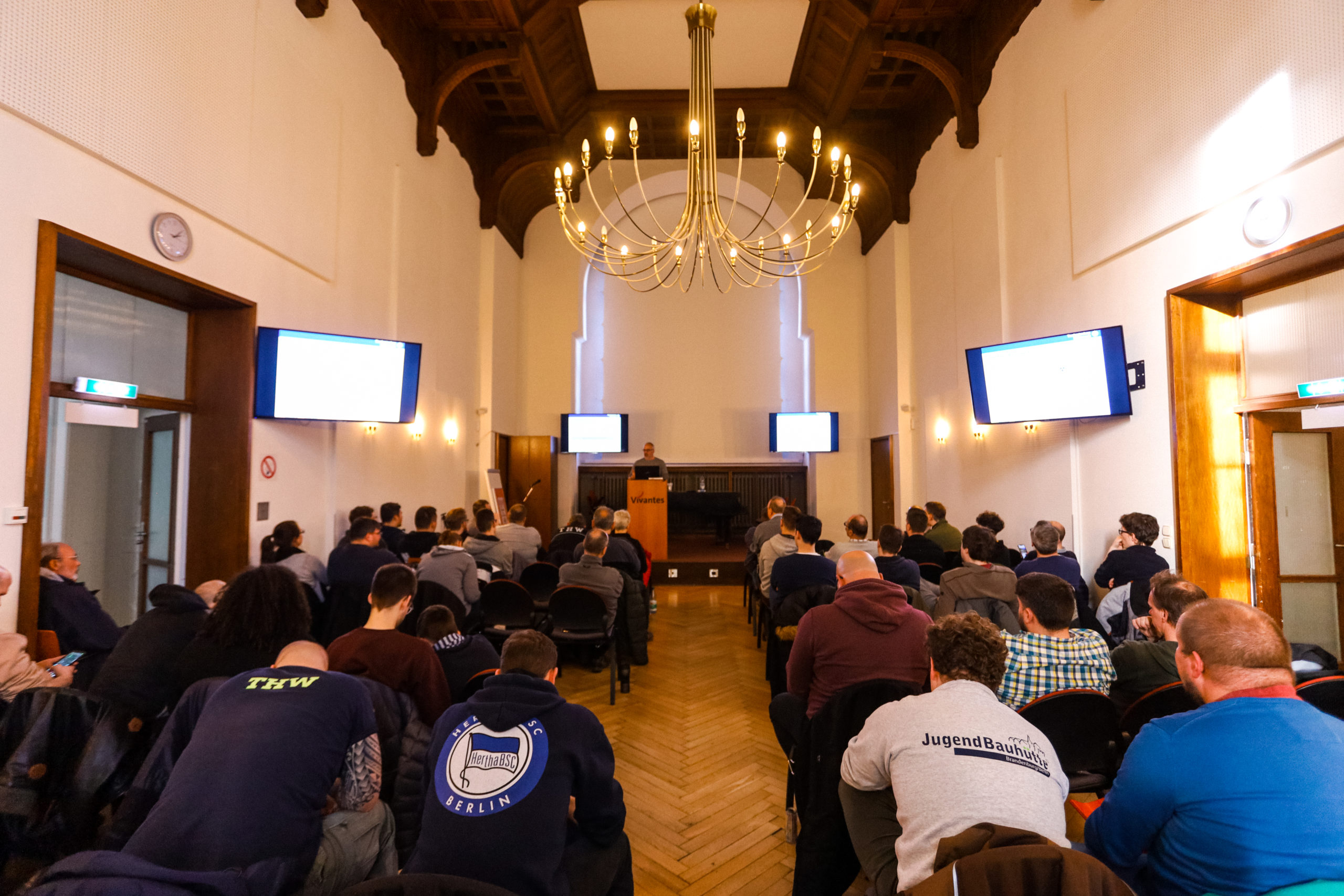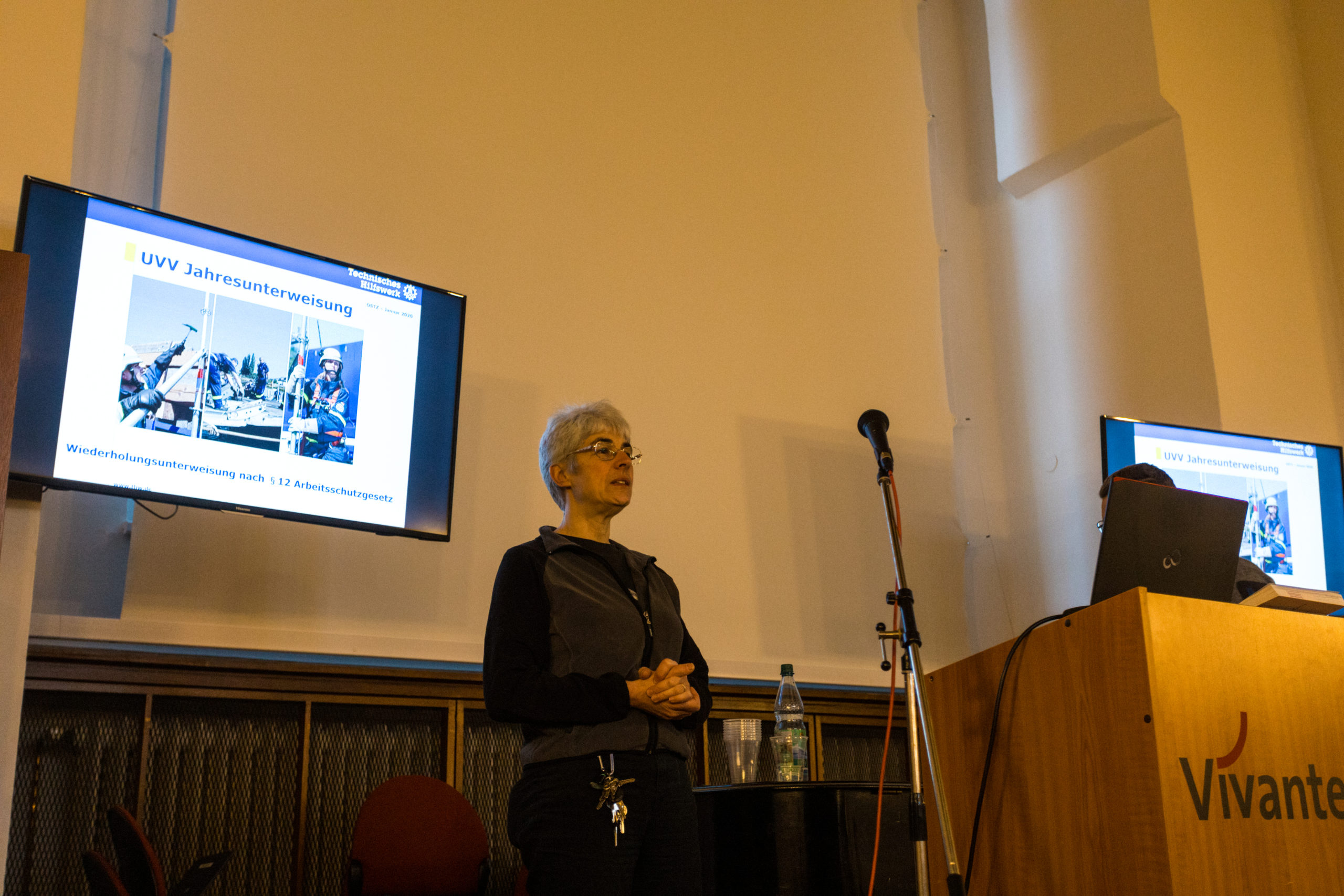 Na von wegen – um auch immer auf dem neusten Stand der Arbeitsschutzvorschriften und Gesetzlichen Reglungen zu sein, fand am 11.01.2019 die große Jahres-Sicherheitsunterweisung unseres Ortsverbandes statt. Da wir mittlerweile über so viele Helfende verfügen, dass unsere Unterkunft an ihre Kapazitätsgrenzen stößt, sind wir dieses Mal in den Gründersaal des Vivantes Auguste-Viktoria-Klinikum ausgewichen. In der historischen Kulisse des 1903 gegründeten Krankenhauses fand fanden die weit über 60 Kameraden platz!