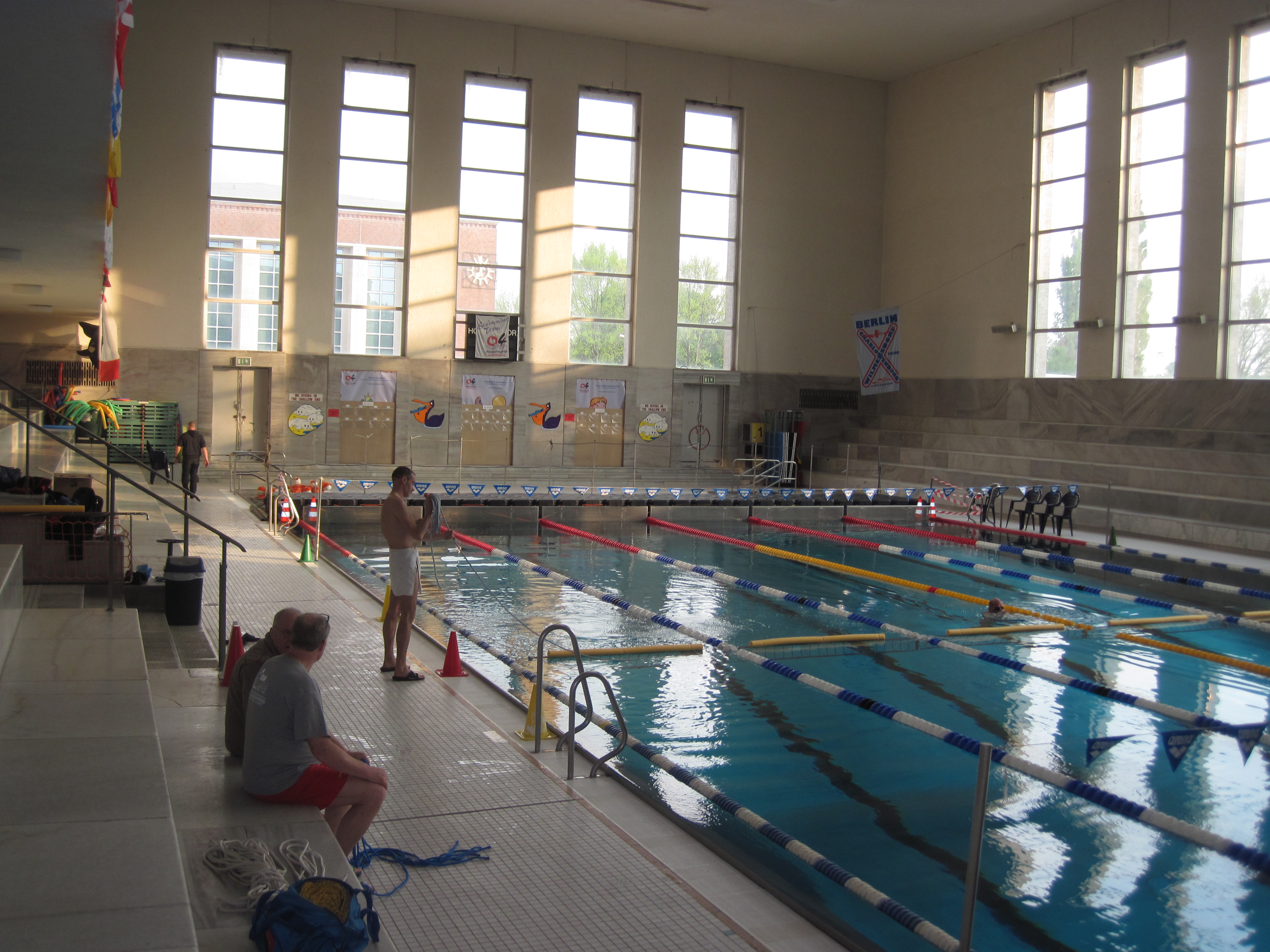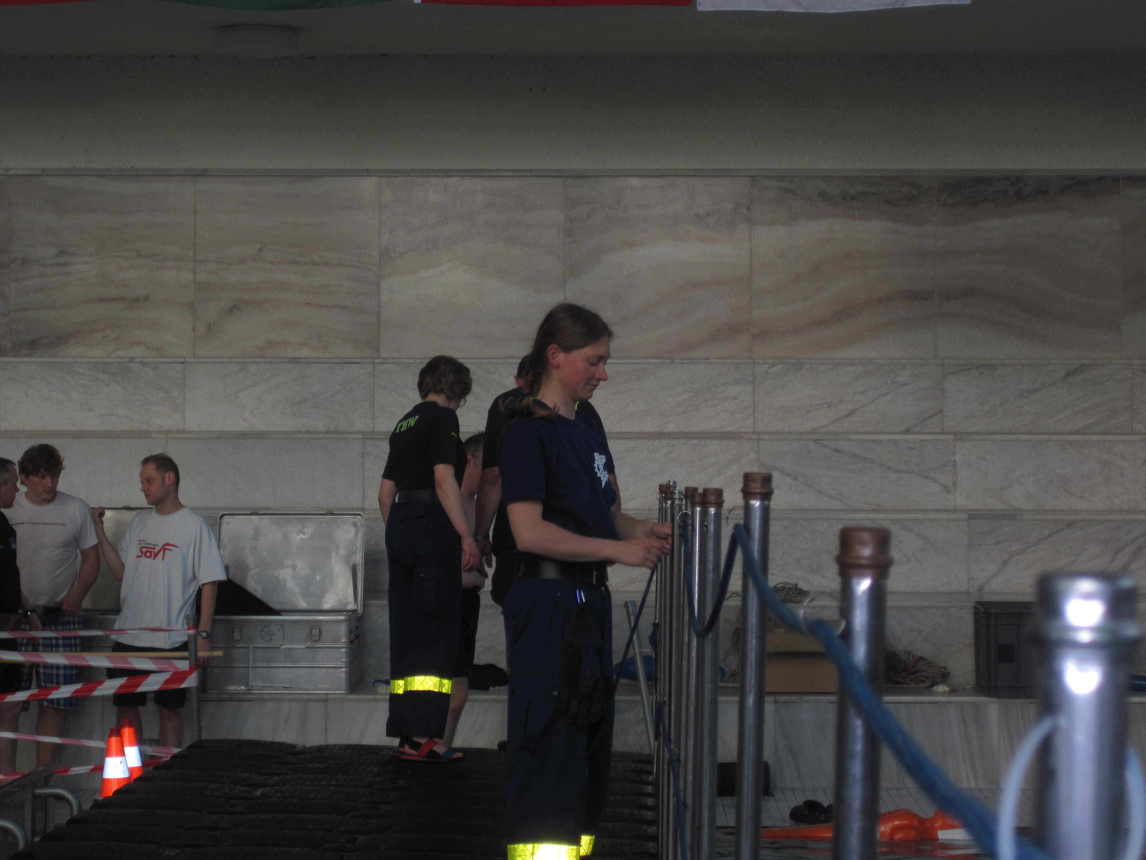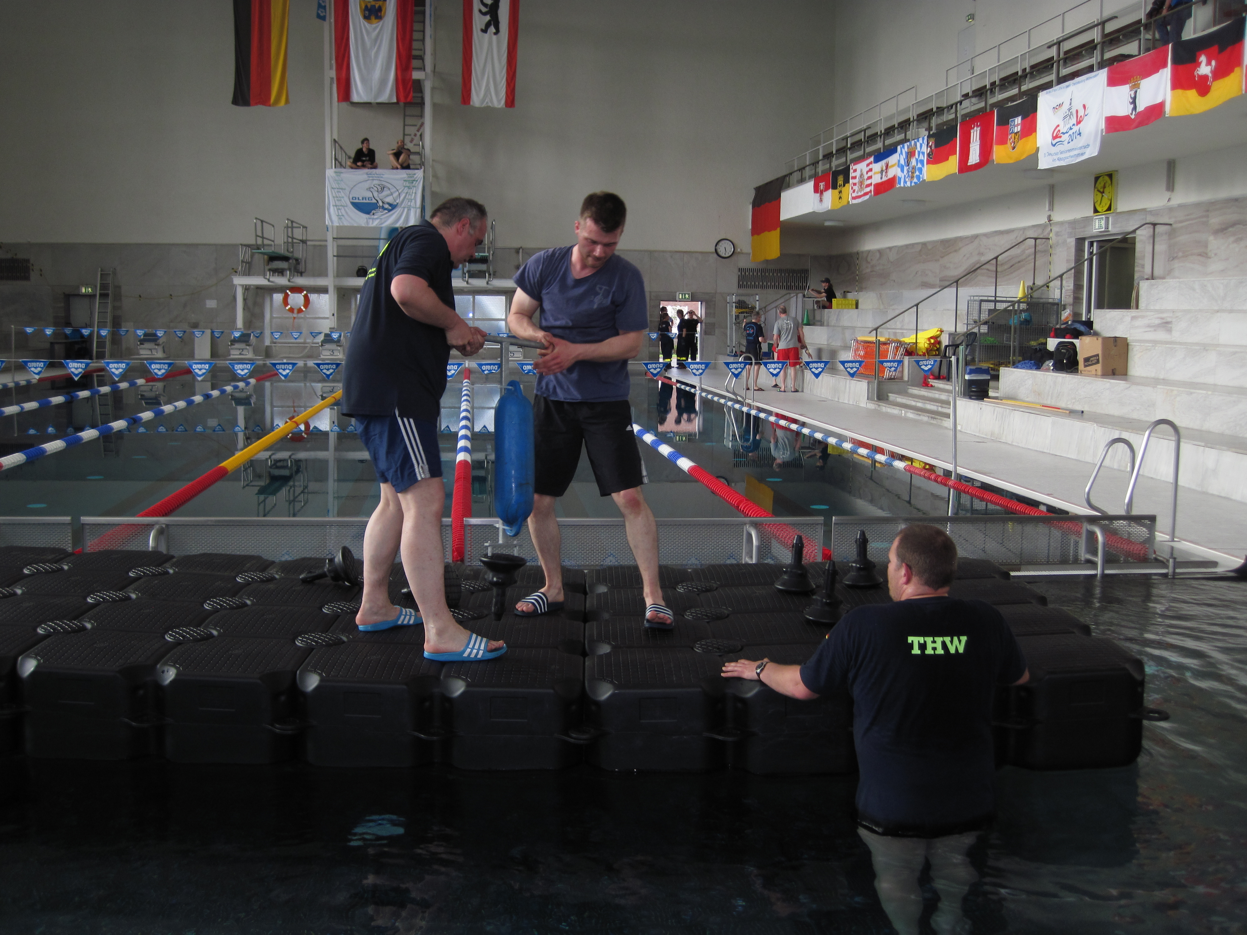 Wir freuen uns immer, befreundeten Organisationen bei ihren Aufgaben auszuhelfen. Die Arbeitsteilung zwischen den Katastrophenschutz-organisationen hat lange Tradition. Die Deutsche Lebensrettungsgesellschaft (DLRG) stellt absolute Profis im Bereich Wasserrettung, dafür hat das THW seine Stärken im technischen Bereich. Daher war es für uns selbstverständlich, die DLRG bei der Durchführung der Deutschen Seniorenmeisterschaften im Rettungsschwimmen 2014 vom 24.04.-27.04.2014 im Forumbad am Olympiastadion zu unterstützen.