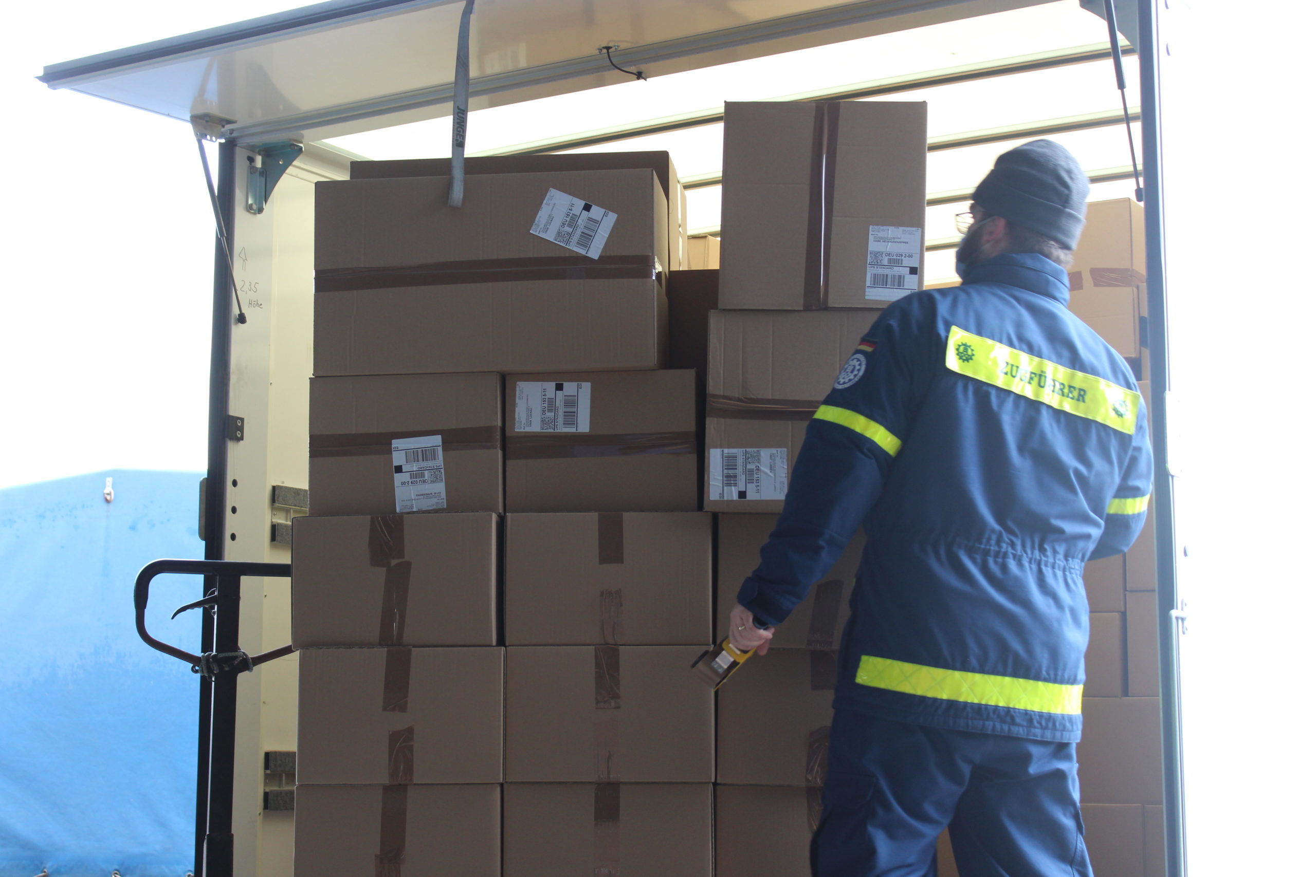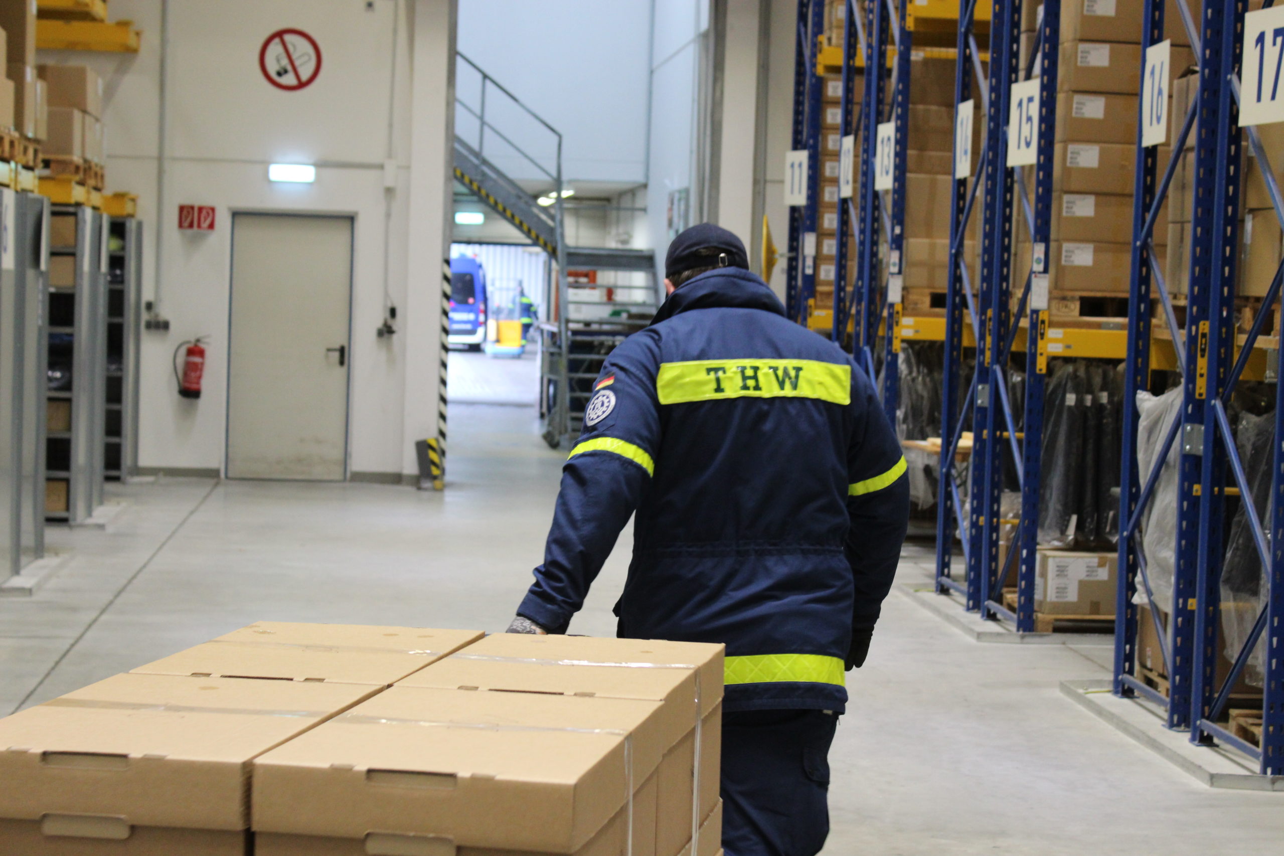 Am Dienstag wurde das THW in Amtshilfe gebeten sich der Aufgabe anzunehmen. Die ehrenamtlichen THW-Kräfte aus den drei Ortsverbänden Luckenwalde, Herzberg und Berlin Steglitz-Zehlendorf setzen es nun um. Zuvor hatte das THW den Zentraldienst der Polizei beraten, wie mehrere Parallel-Packstraßen im Zentrallager installiert werden können, um eine effiziente und schnelle Auslieferung sicher zu stellen.