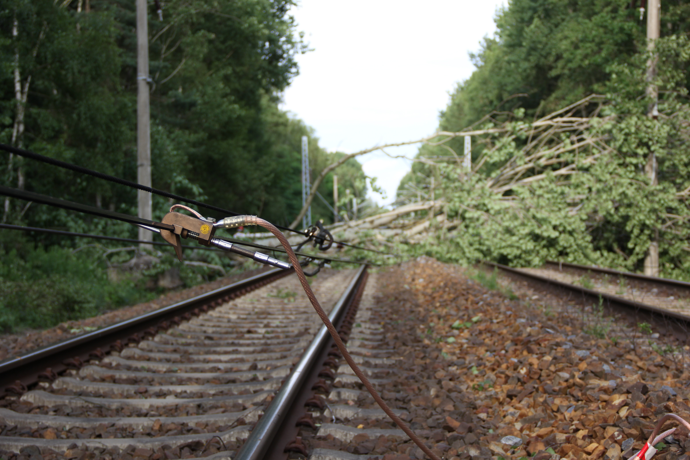 Am Donnerstag fegte Sturmtief „Paul“ auch über Berlin und Brandenburg. Vielerorts wurden Bäume entwurzelt und umgeworfen. So auch auf einer Bahnstrecke in Brandenburg. Dort wurde der Zugverkehr durch mehrere Bäume auf Schienen und Oberleitungen unterbrochen.