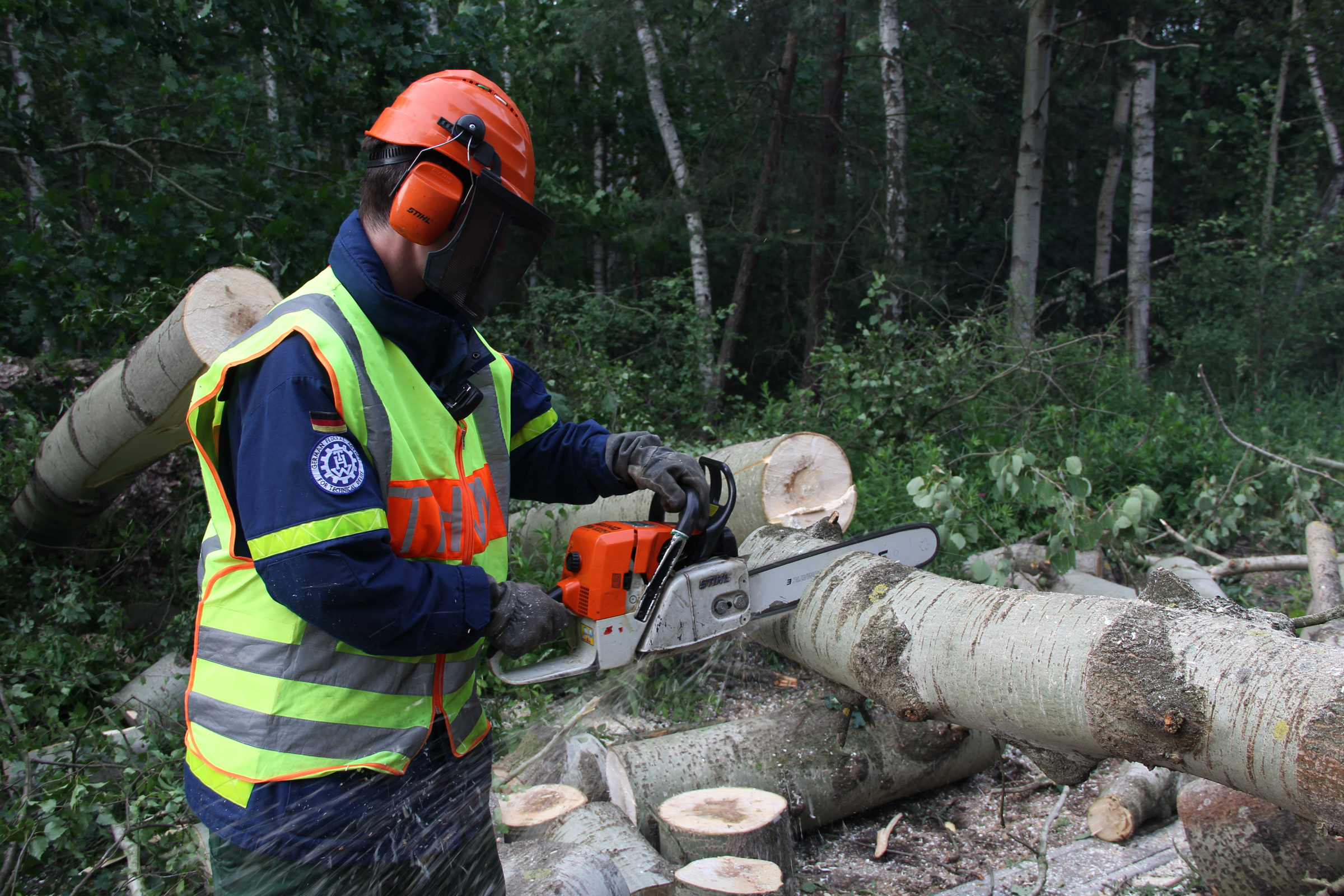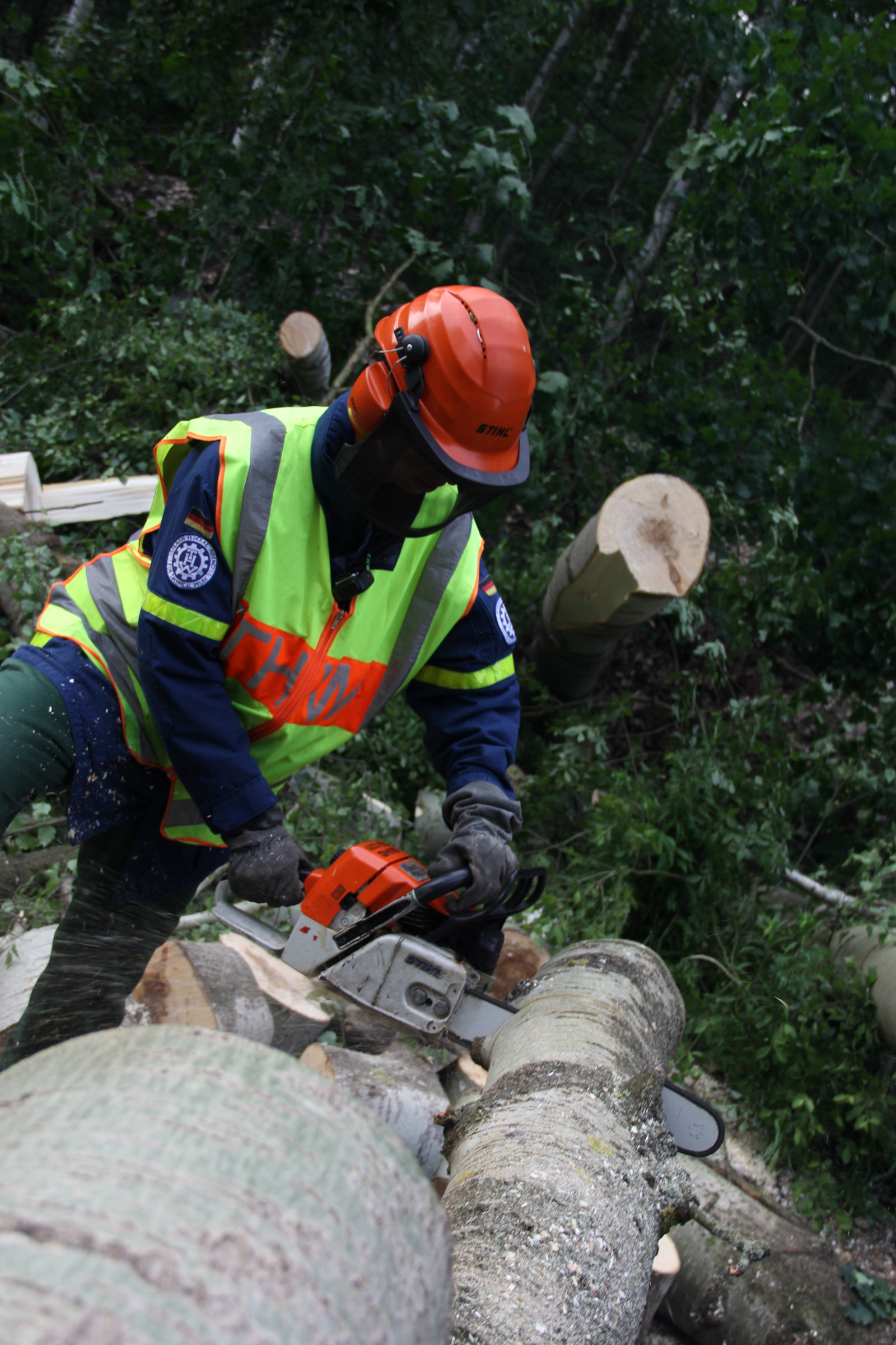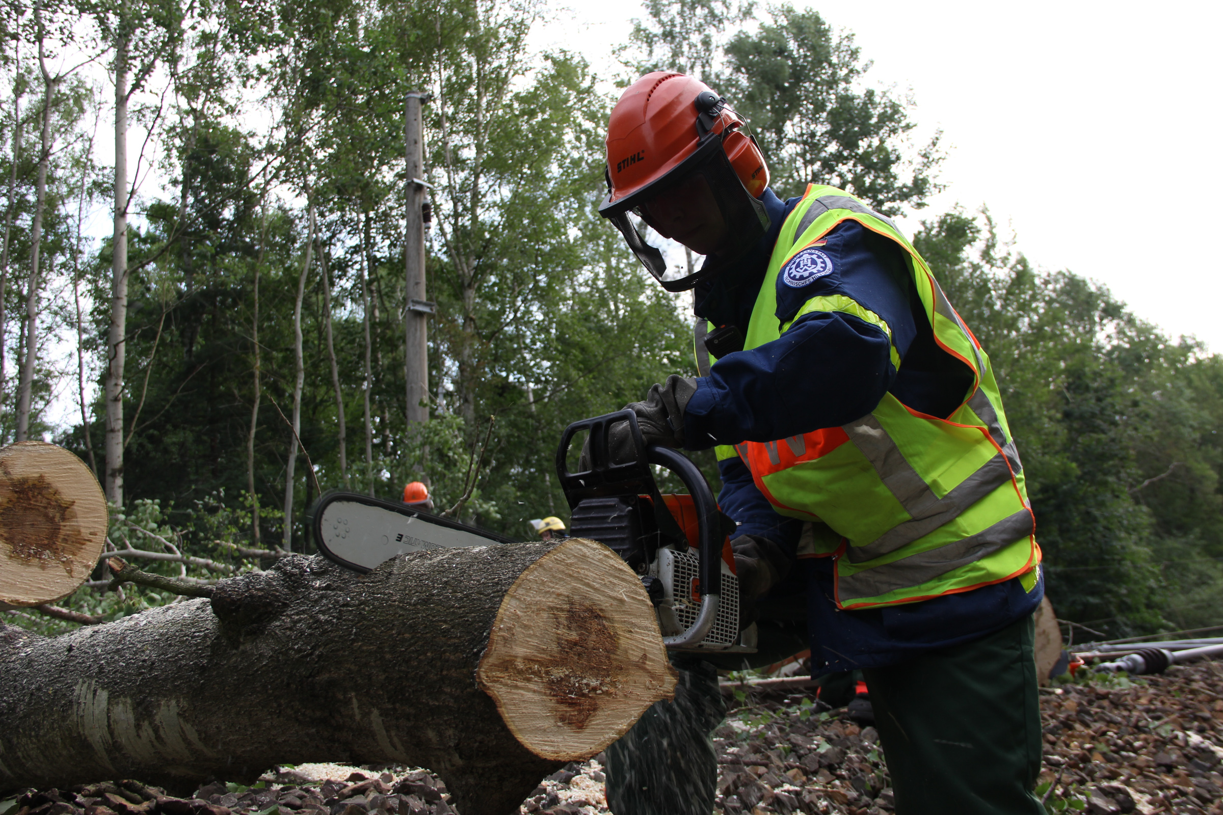 Die Arbeiten des THW koordinierte und führte der Ortsverband Lübben, gemeinsam mit den Ortsverbänden Berlin Tempelhof-Schöneberg, Senftenberg und Herzberg stellte er darüber hinaus genauso wie wir speziell an der Motorkettensäge ausgebildete Einsatzkräfte. Der Ortsverband Herzberg kümmerte sich außerdem um die Versorgung der eingesetzten Helferinnen und Helfer.