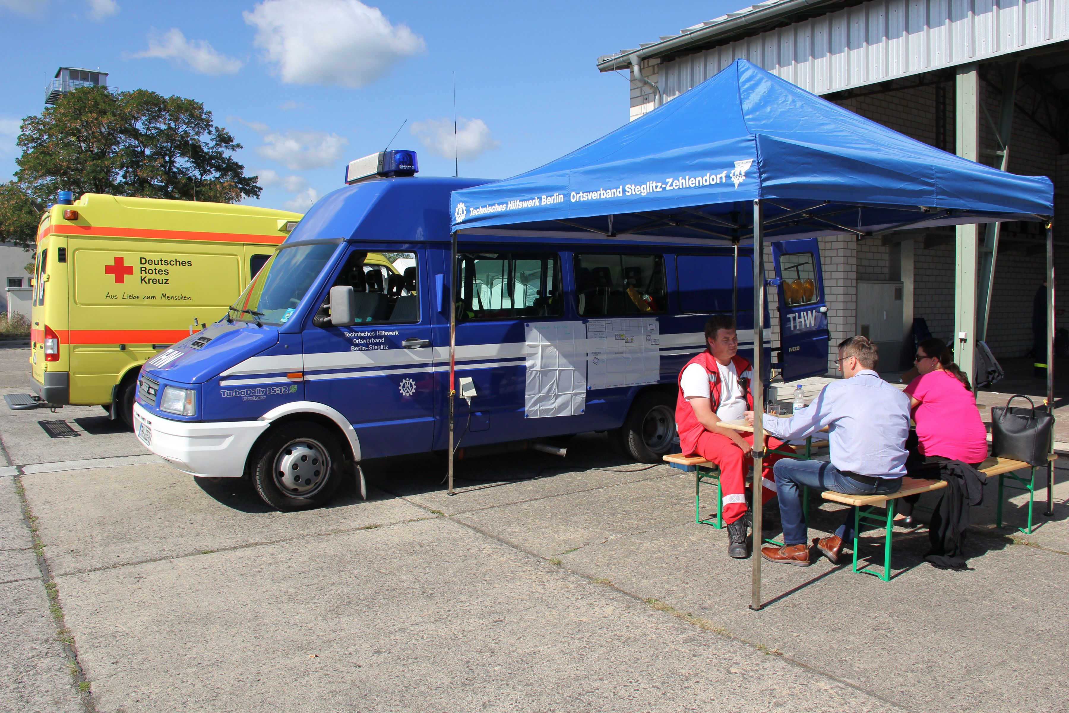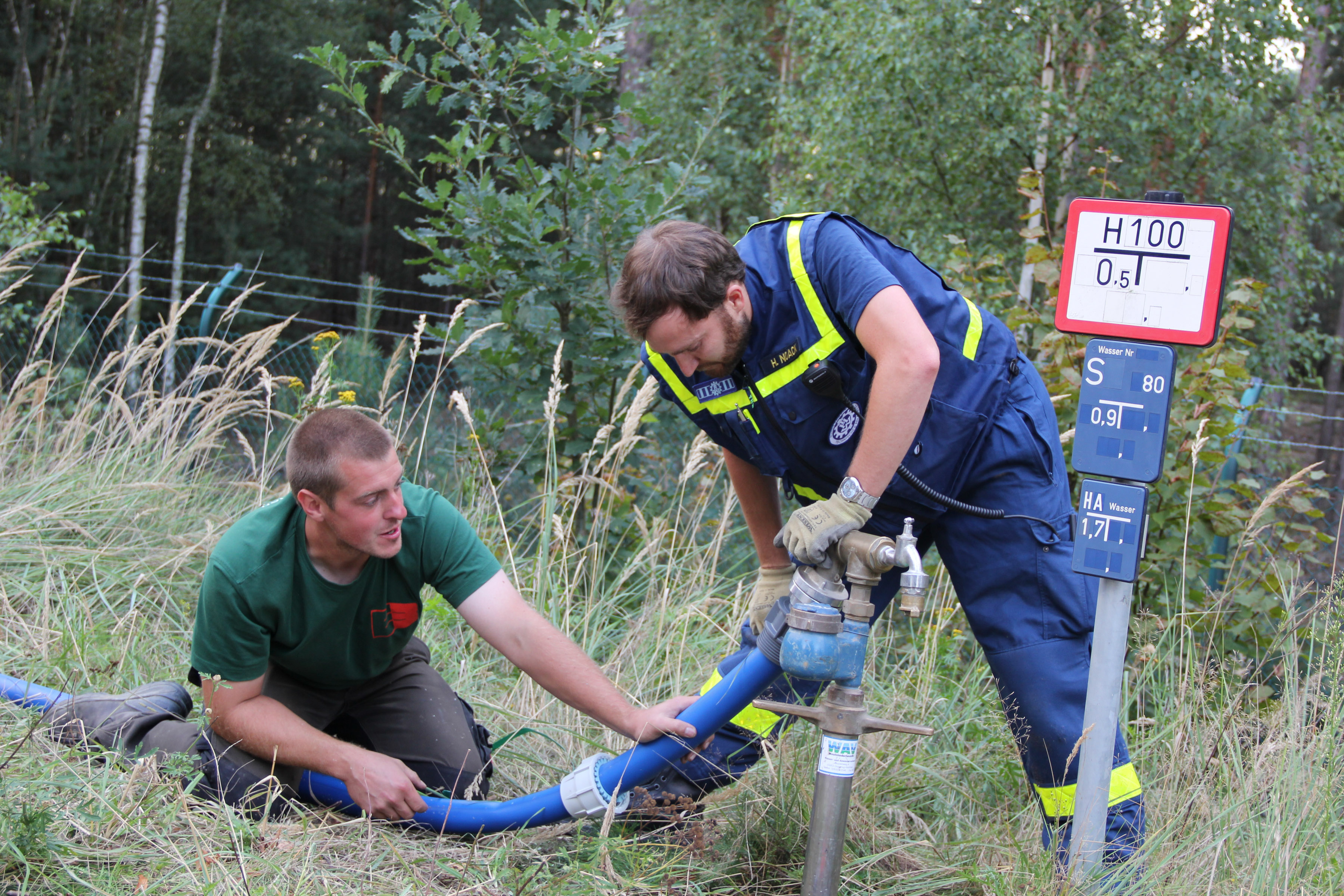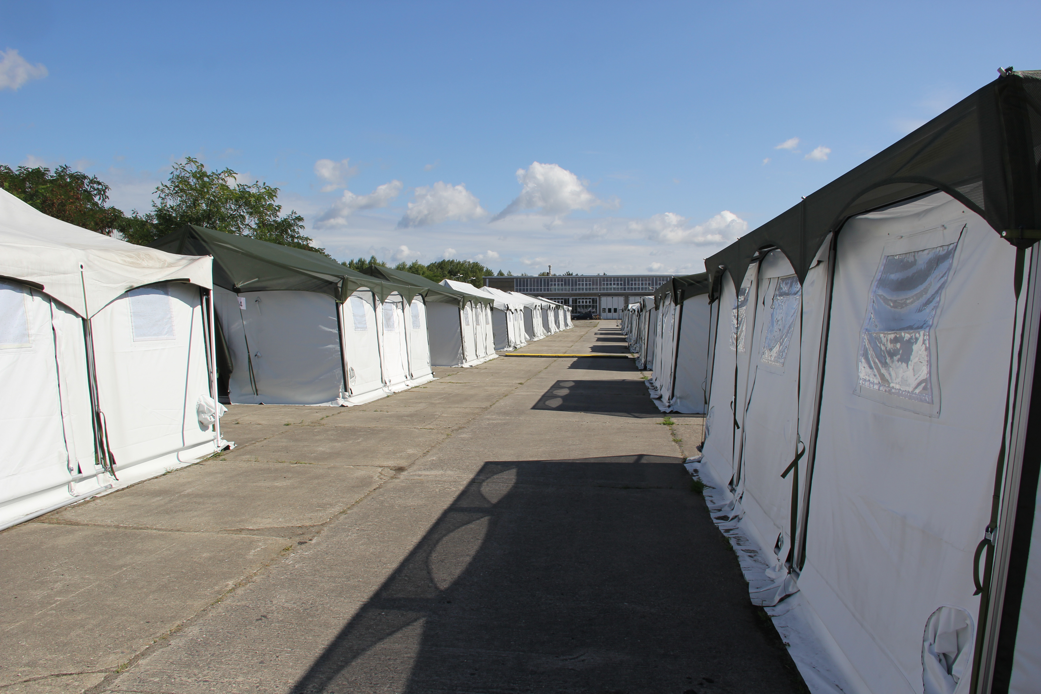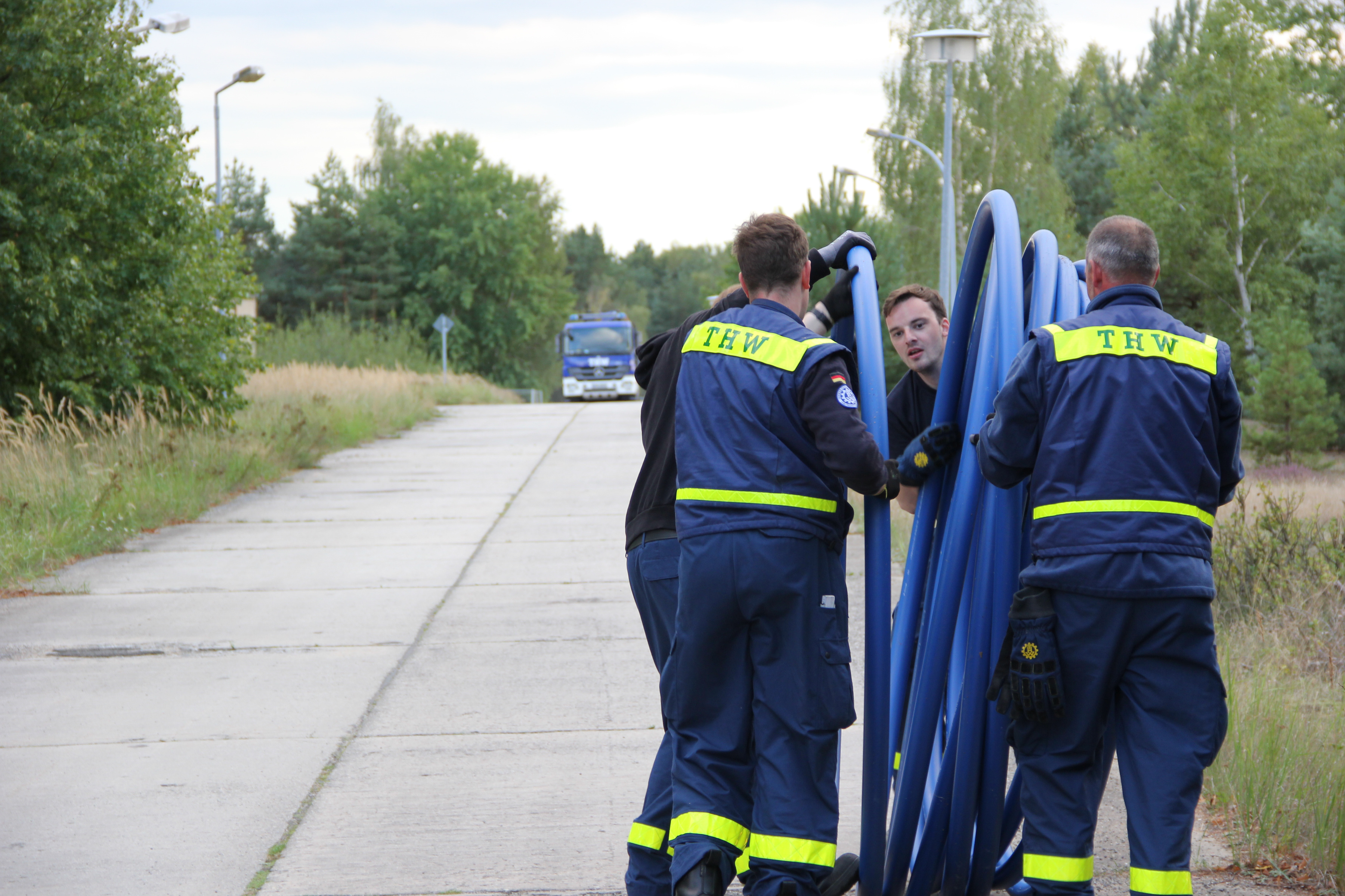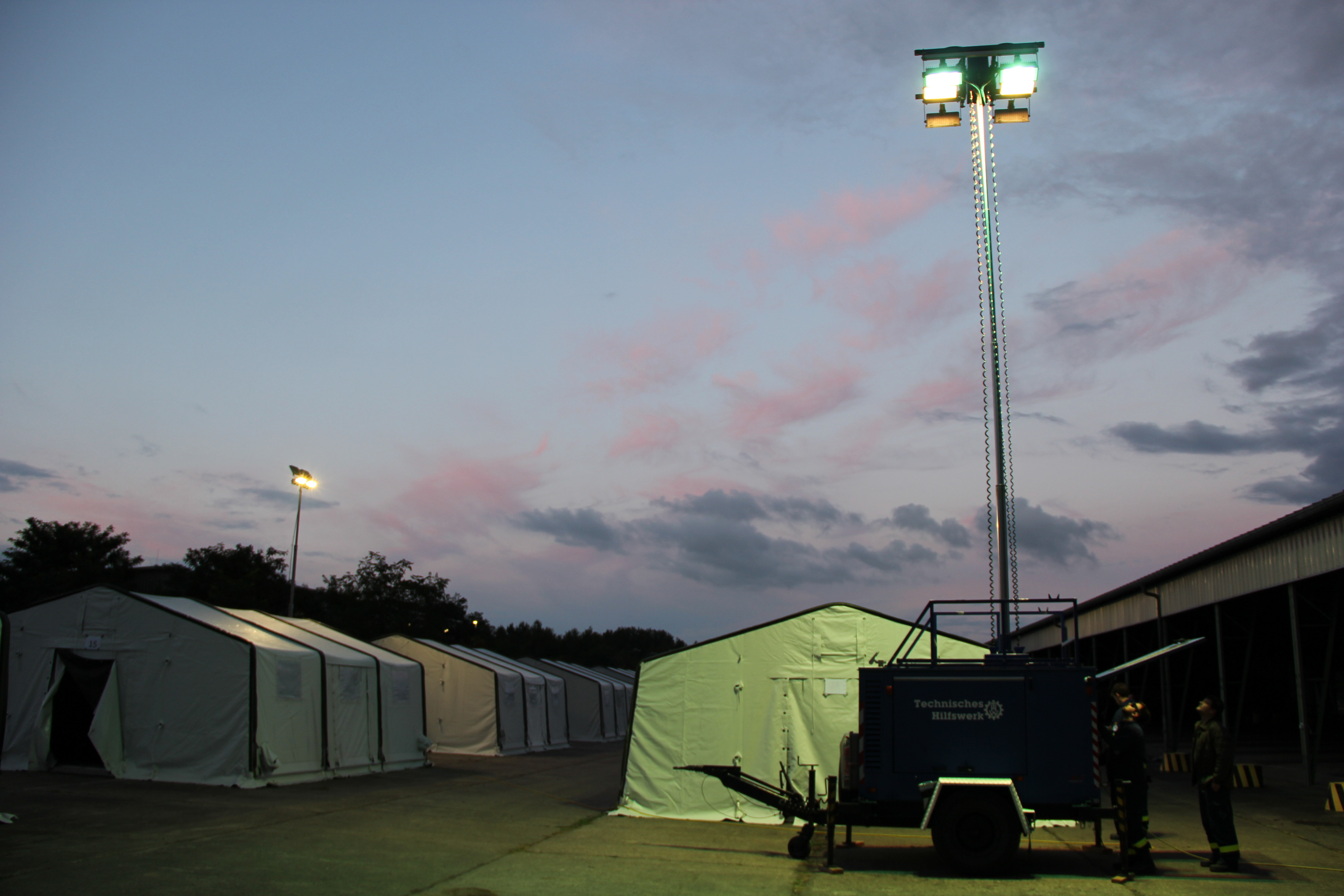 Aufgrund der anhaltend hohen Zahl der Asylbewerber, die derzeit Deutschland erreichen, hat das Land Brandenburg eine im Bau befindliche Zeltunterkunft auf einem ehemaligen Kasernengelände behelfsmäßig für die Aufnahme herrichten lassen. Aufgrund der Dringlichkeit übernahmen wir gemeinsam mit anderen Ortsverbänden die Aufgabe, vorübergehend die Versorgung mit Frisch- und Abwasser sowie Beleuchtung sicherzustellen.