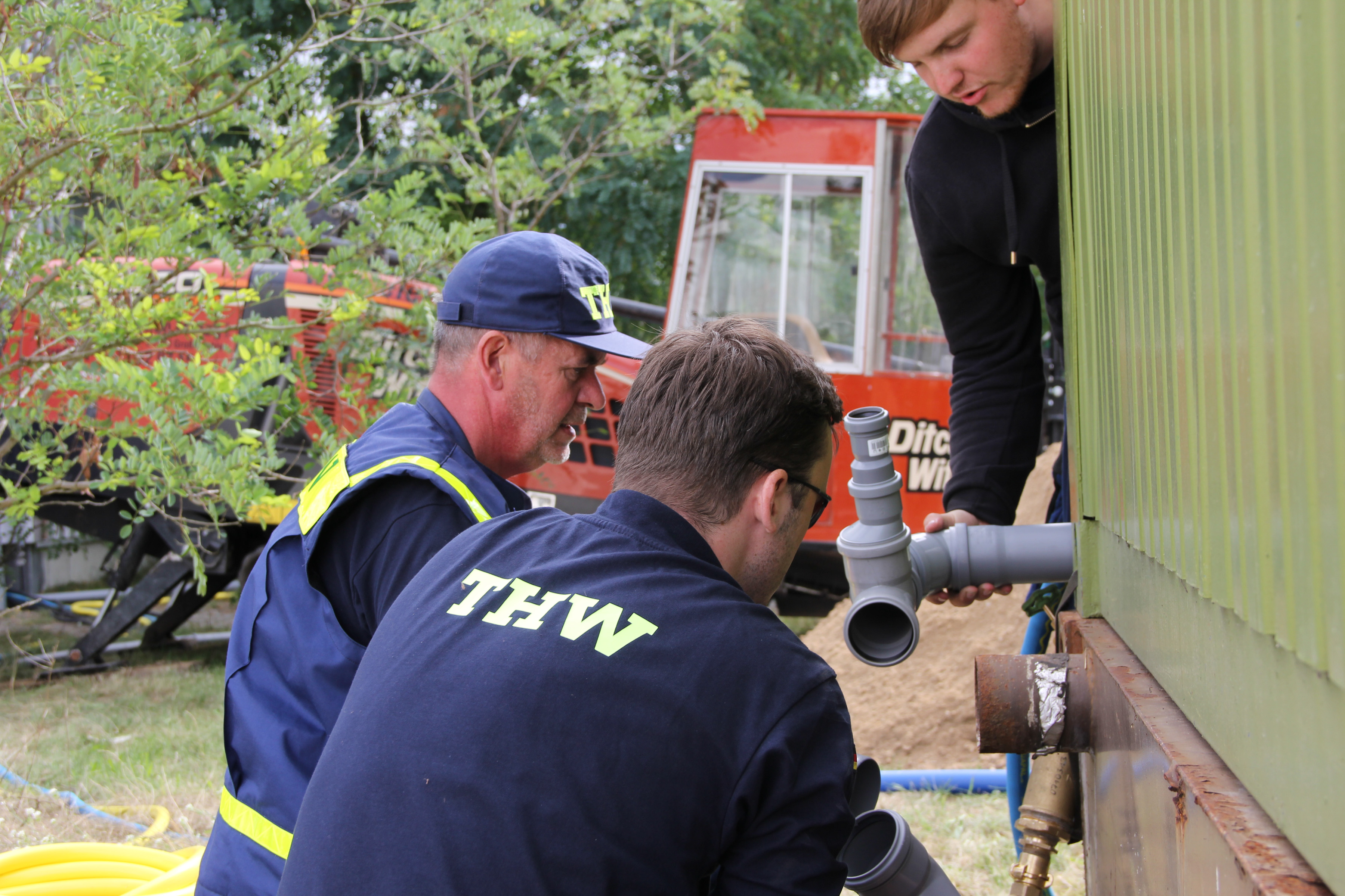 Im Auftrag der Ministeriums für Inneres und Kommunales des Landes und dem zuständigen Baumangager, der BLB, wurden diese Arbeiten parallel zu den laufenden Vorbereitungen der Firmen vor Ort durchgeführt. Wenn die reguläre Versorgung in den nächsten Tagen fertiggestellt ist, können die behelfsmäßigen Lösungen des THW wieder abgebaut werden.