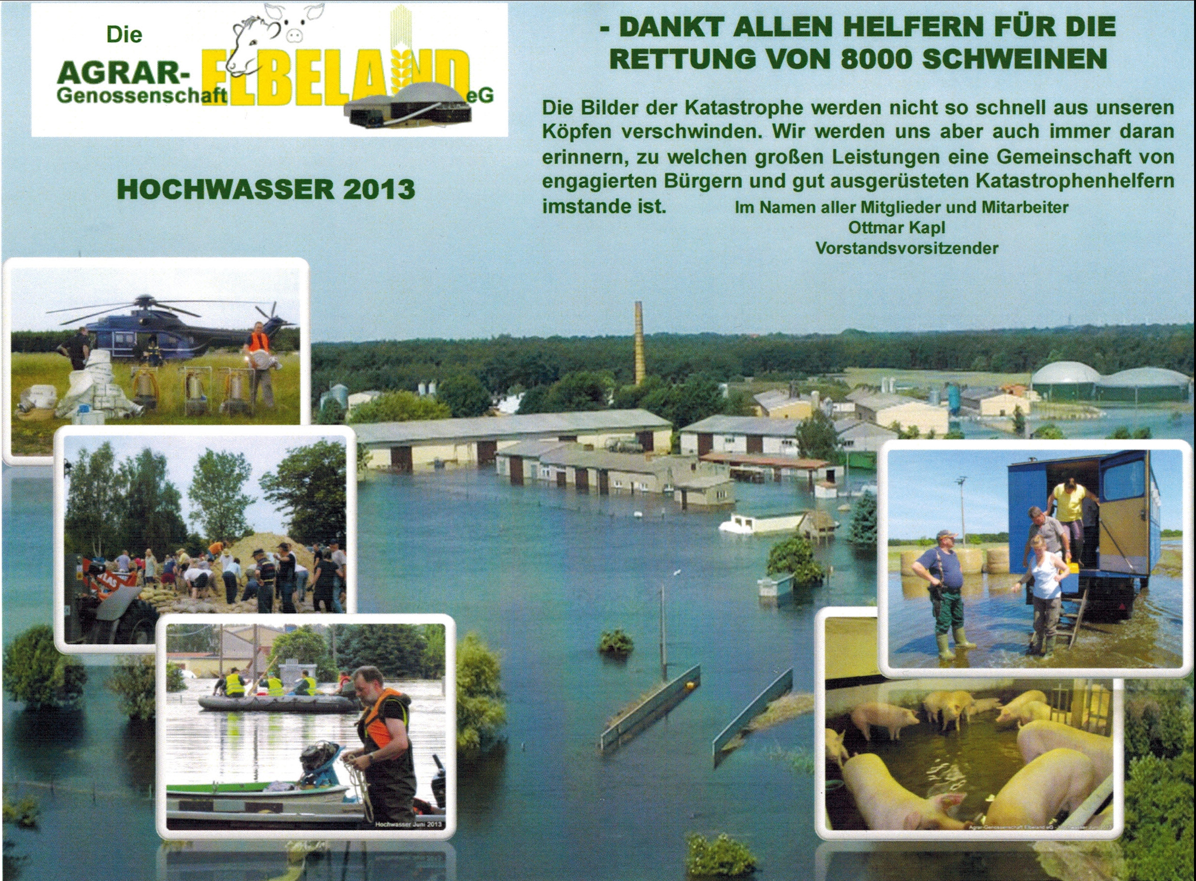 Die kleine Gemeinde Klietz wurde vom Hochwasser im Frühsommer schwer getroffen. Direkt in der Nähe von Fischbeck liegend, wo der Deich an der Elbe gebrochen war, standen weite Teile der Kommune unter Wasser. Neben den betroffenen Bewohnerinnen und Bewohnern waren es auch Tiere, die es zu schützen galt. Denn im Ortsteil Scharlibbe sitzt eine Agrargenossenschaft, deren Bestand von 8.000 Schweinen durch die Fluten bedroht waren.