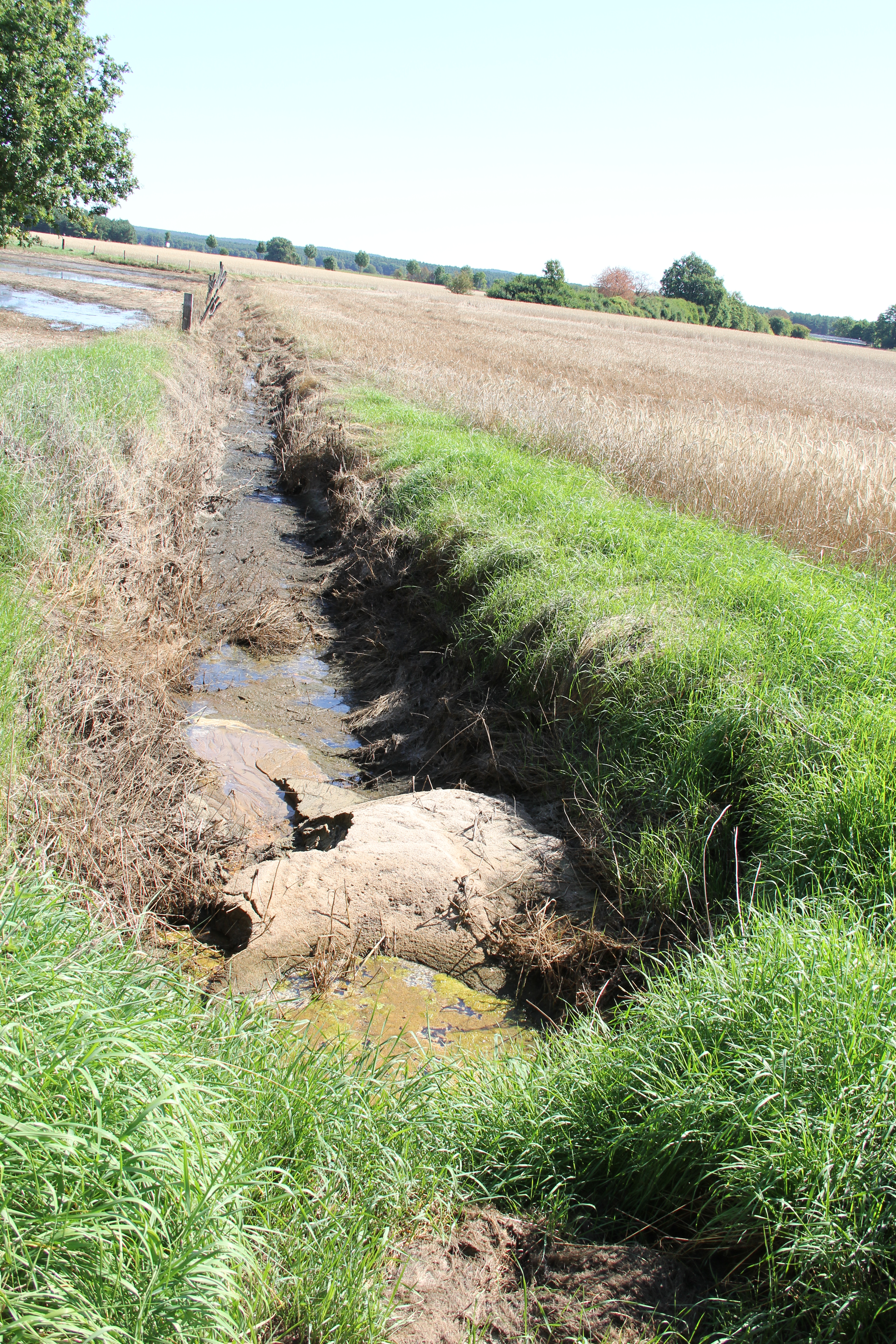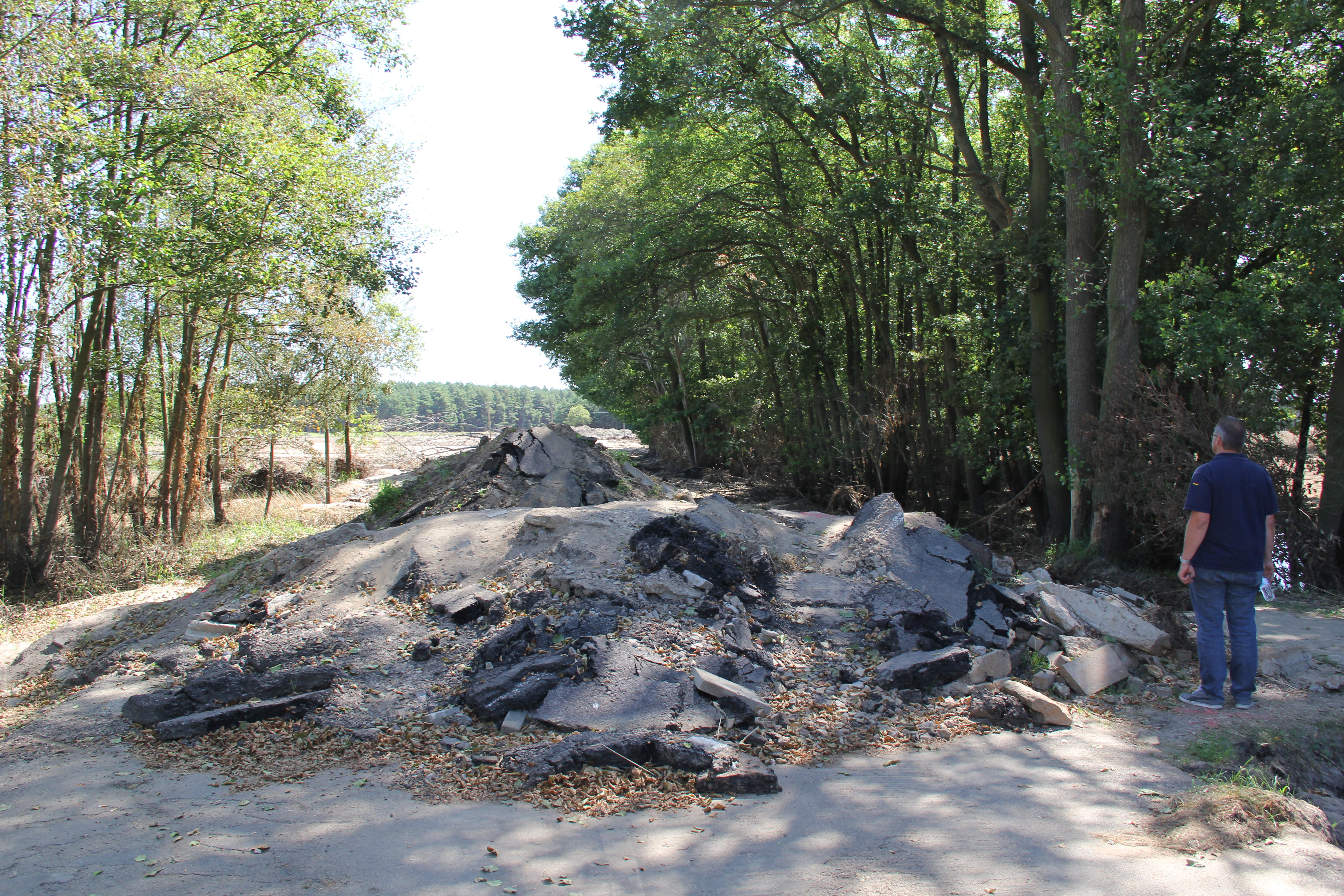Die Helferinnen und Helfer unseres Ortsverbandes besichtigten anschließend die ehemaligen Einsatzstellen, um sich einen Eindruck von den Aufräumarbeiten zu machen. Dabei wurden zum Teil auch Schäden sichtbar, die das Wasser erst beim Abfließen freigegeben hat. In einigen Senken ist es bis heute noch nicht trocken geworden.