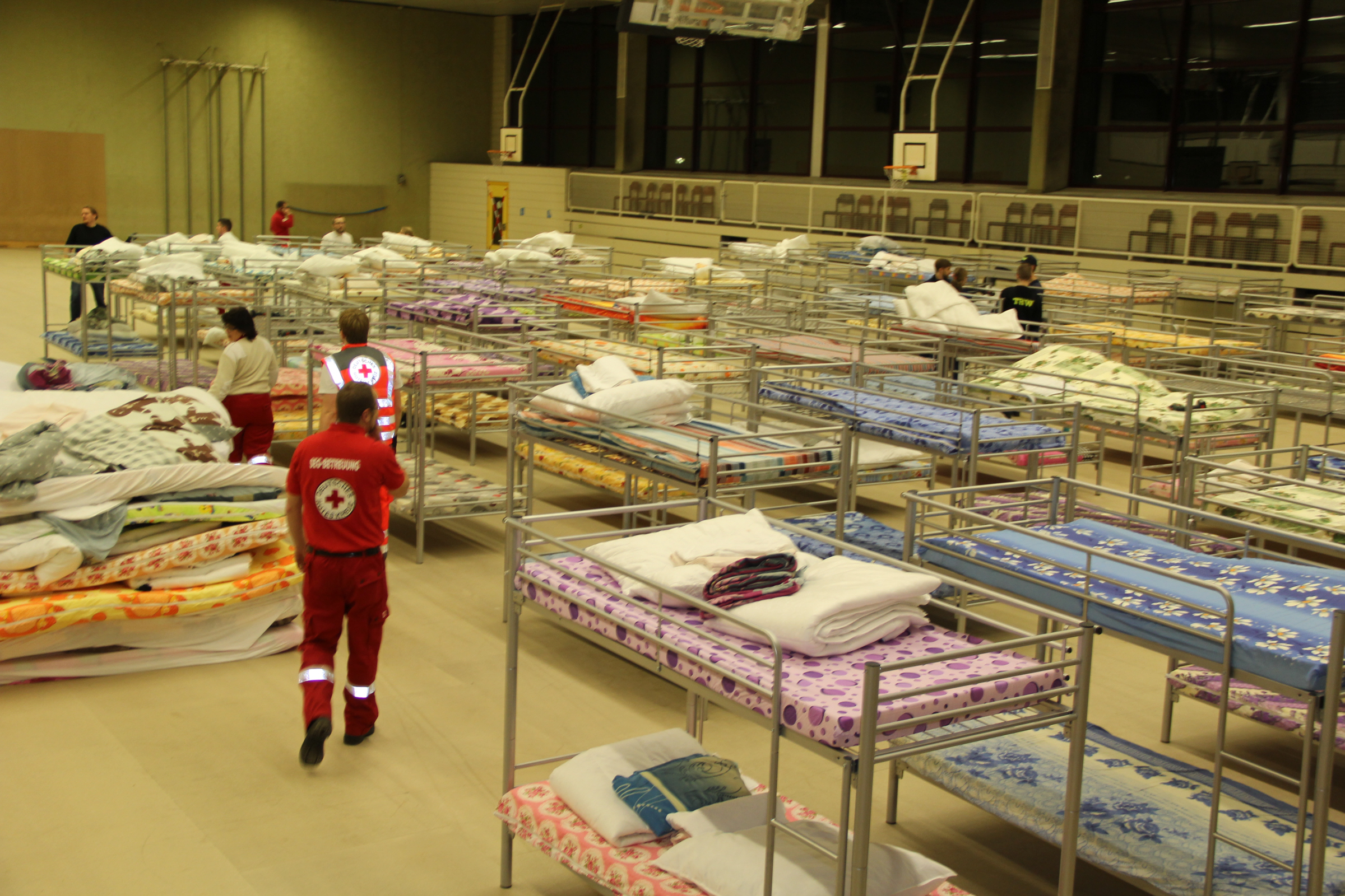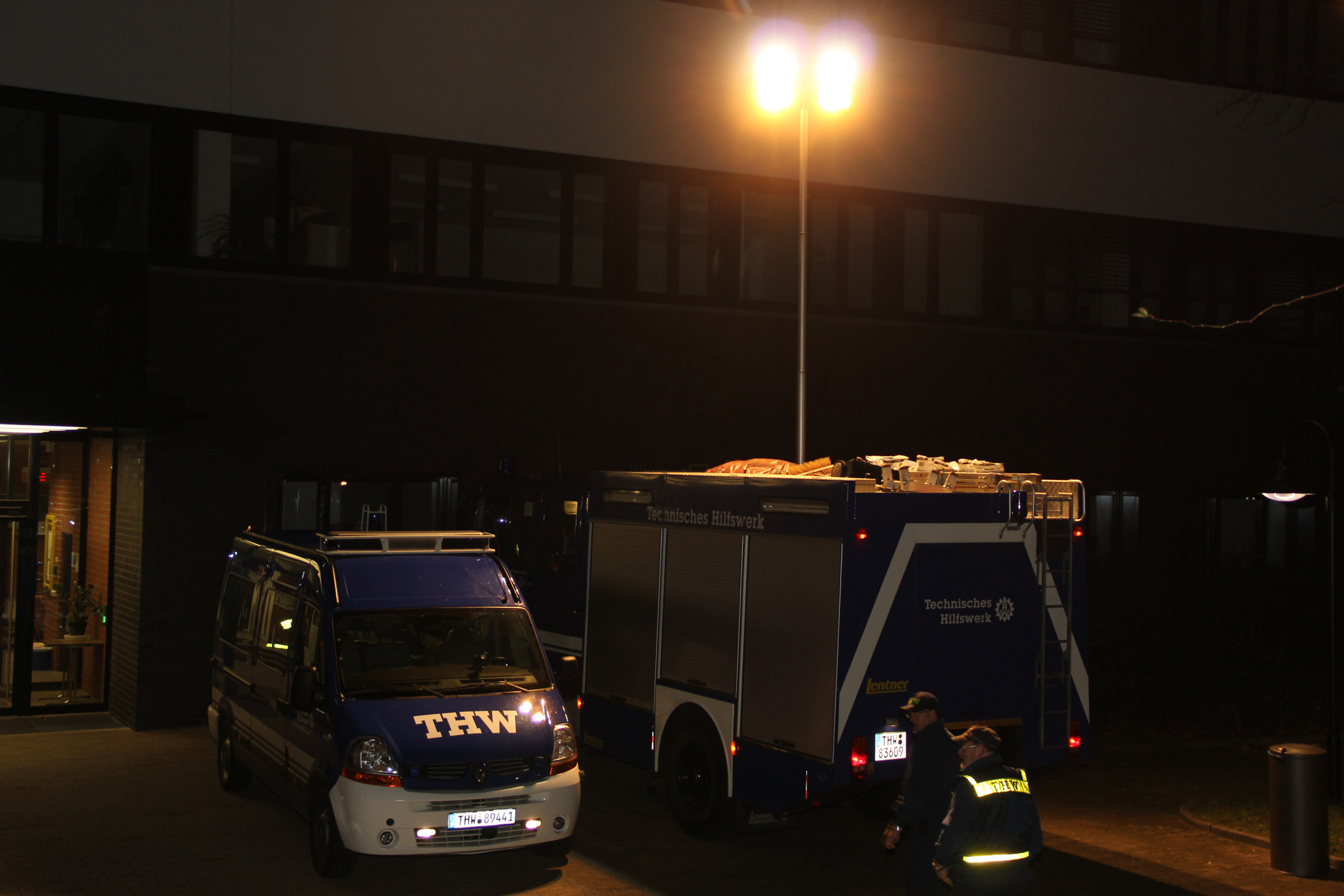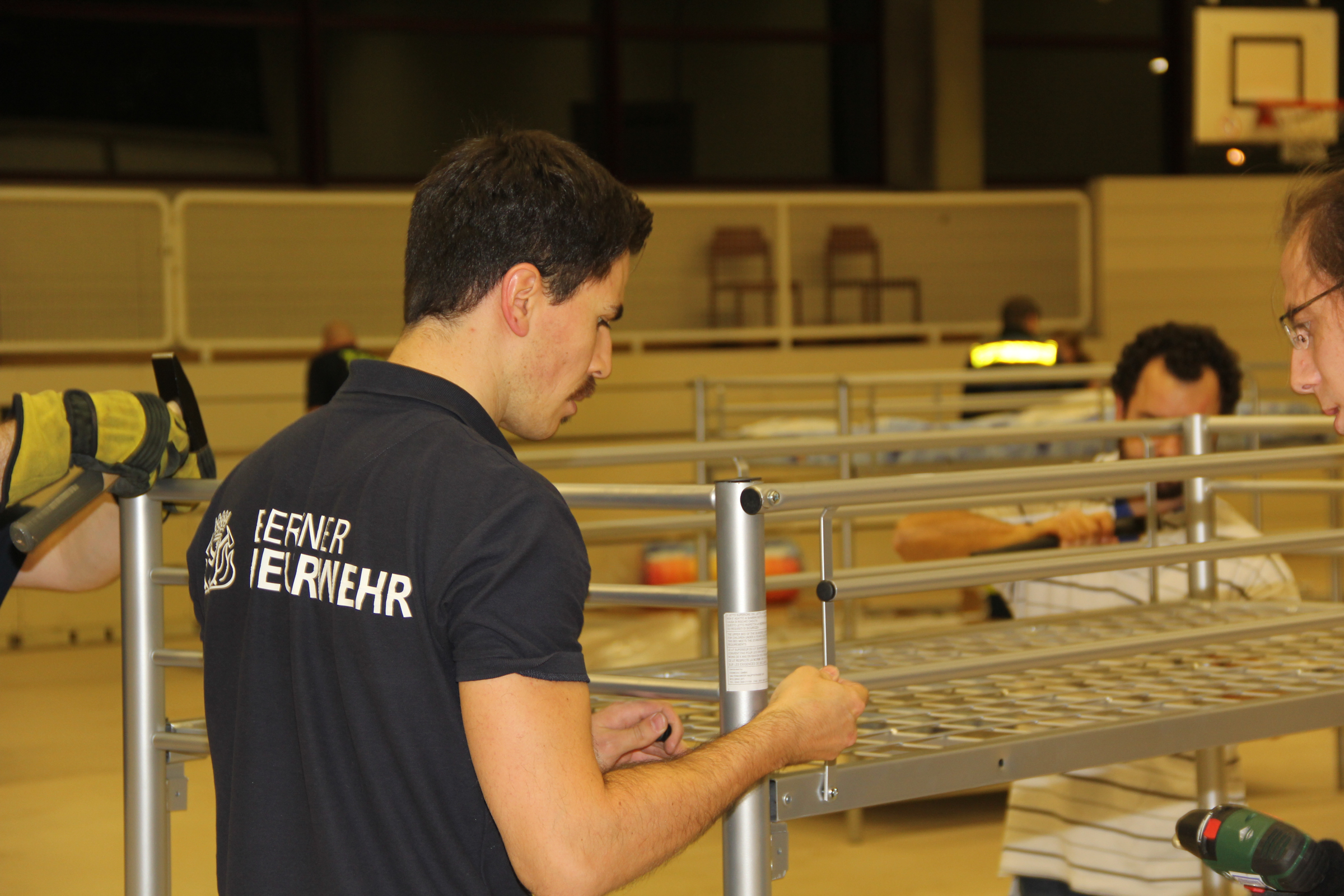 Effektiv und zügig funktionierte die Zusammenarbeit zwischen den Kräften von Freiwilliger Feuerwehr, der Berufsfeuerwehr und vom THW. Damit konnten sie die Aufgabe trotz der besonderen Eile sorgfältig erledigen. Als die Bewohnerinnen und Bewohner gegen 22:30 Uhr in die neue Notunterkunft einzogen, fanden sie gemachte Betten und, dank des Deutschen Roten Kreuzes, ein warmes Essen vor.