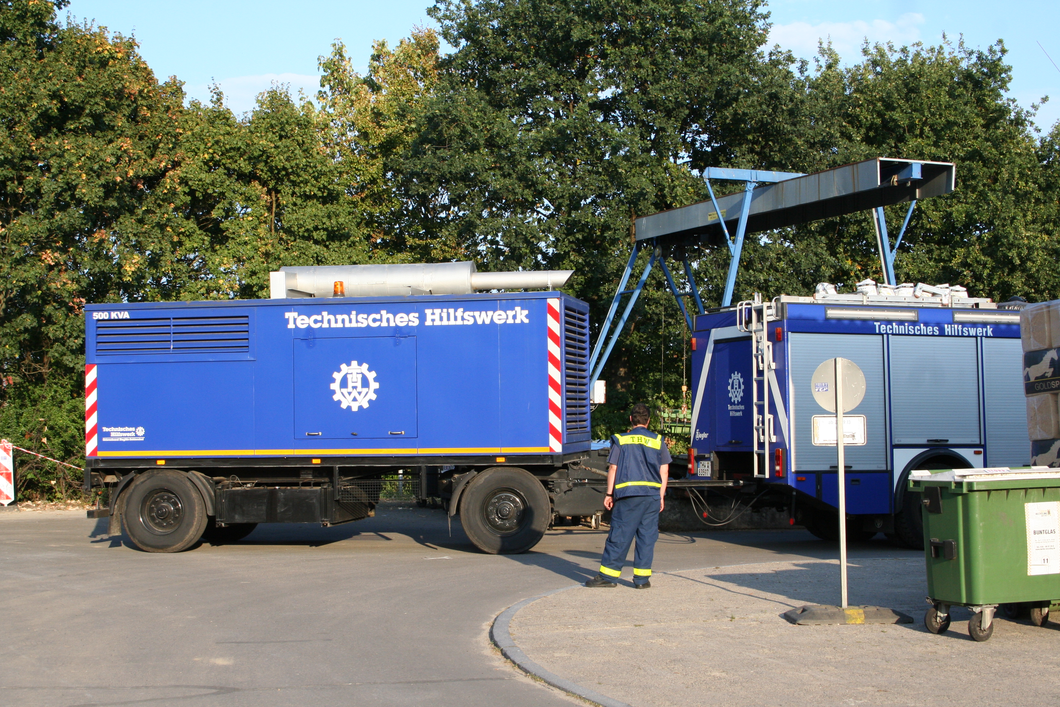 Aufgrund der langjährigen Kooperation bei Veranstaltungen und Übungen alarmierte die Technikabteilung der Universität deshalb die Fachgruppe Elektroversorgung unseres Ortsverbandes. Gegen 17:00 Uhr trafen unsere drei großen Netzersatzanlagen (500 kVA, 315 kVA, 175 kVA) mit 11 Helfern und fünf Fahrzeugen vom Mannschaftstransportwagen bis zum neuen Mannschaftslastwagen IV an der Klinik ein. Weil sich Hauptamtliche der Freien Universität und Ehrenamtliche unseres Ortsverbandes gut kennen und blind verstehen, stand schnell eine Ersatzversorgung über unsere Stromerzeuger.