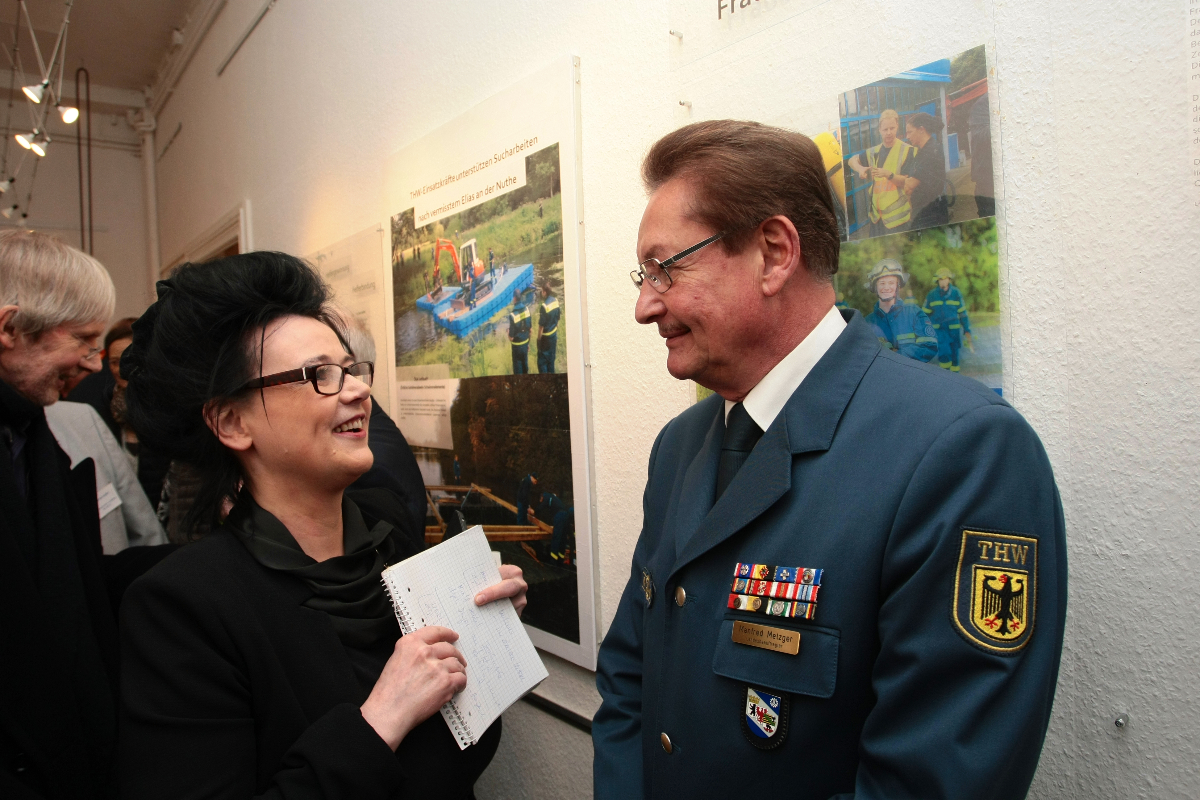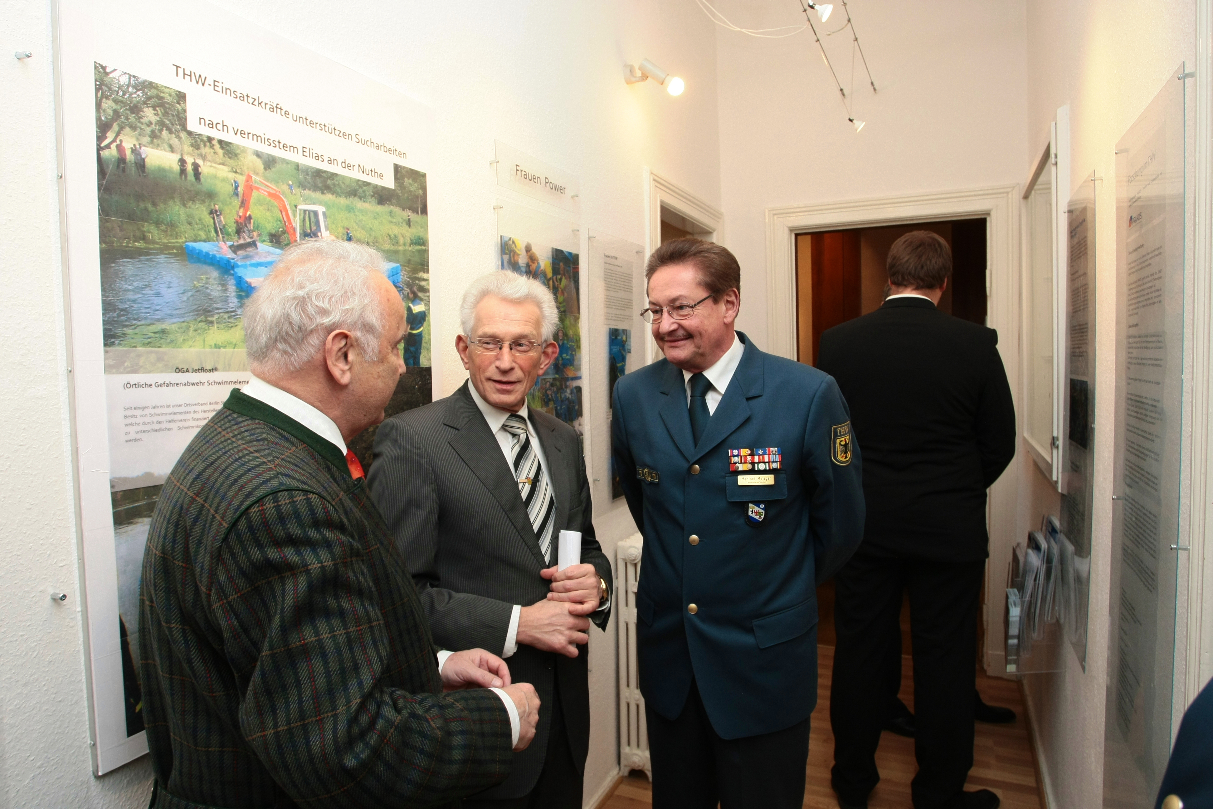 Am Mittwoch, den 27. Januar, eröffneten der Präsident des THW, Albrecht Broemme, und Bezirks-bürgermeister Norbert Kopp die Ausstellung. Sie wird bis zum Sommer von Dienstag bis Freitag und am Sonntag jeweils von 15 bis 18 Uhr im Heimatmuseum in der Drakestraße zu sehen sein. Während der Eröffnung ordneten Gabriele Schuster vom Heimatverein und Dr. Gernot Wittling vom THW die Ausstellung für die ersten Besucherinnen und Besucher in kurzen Redebeiträgen ein.