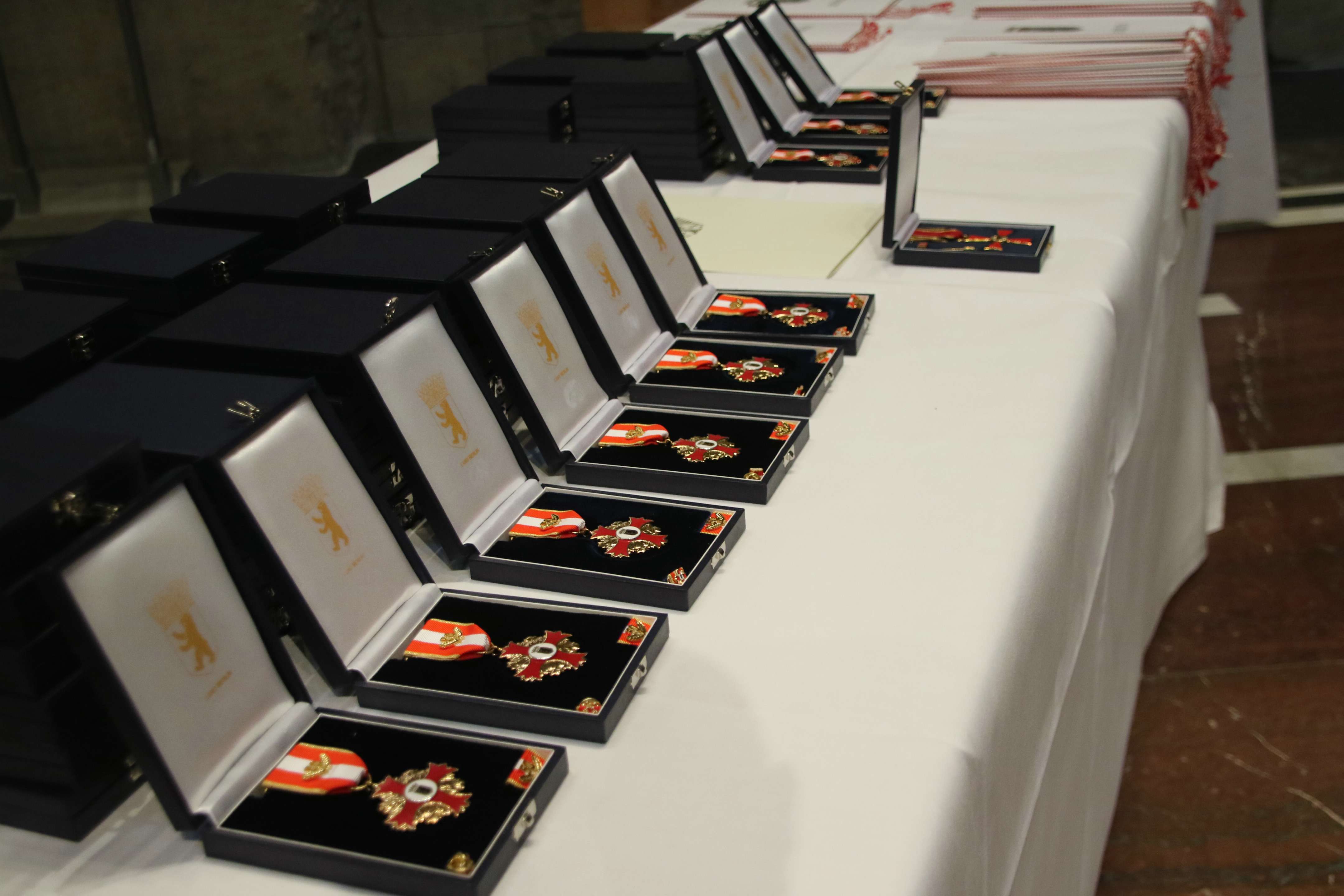 Nachdem in diesem Jahr die Verwaltungsvorschrift geändert wurde, übergab nun der Innensenator insgesamt 58 Goldene Feuerwehr- und Katastrophenschutz-Ehrenzeichen der Stufe 4 für 50-jähriges und 18 Ehrenzeichen der Stufe 5 für 60-jähriges Engagement an die geladenen Mitglieder von Arbeiter-Samariter-Bund, Deutsche Lebensrettungsgesellschaft, Deutsches Rotes Kreuz, Johanniter Unfall-Hilfe, Malteser-Hilfsdienst, Freiwillige Feuerwehr und Technischem Hilfswerk. Während der Feierstunde wurde auch ein Bundesverdienstkreuz an ein Mitglied des Deutschen Roten Kreuzes verliehen.