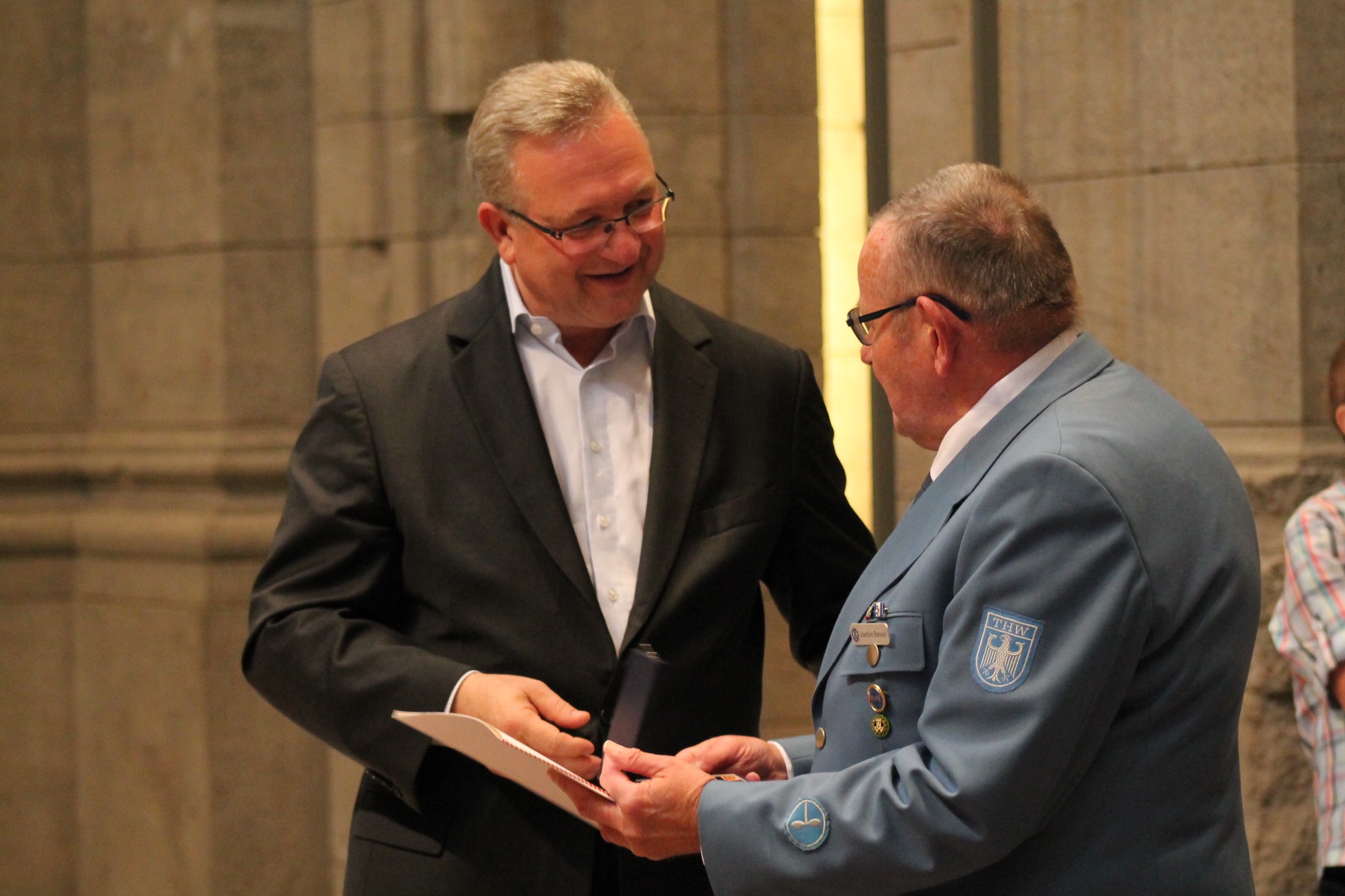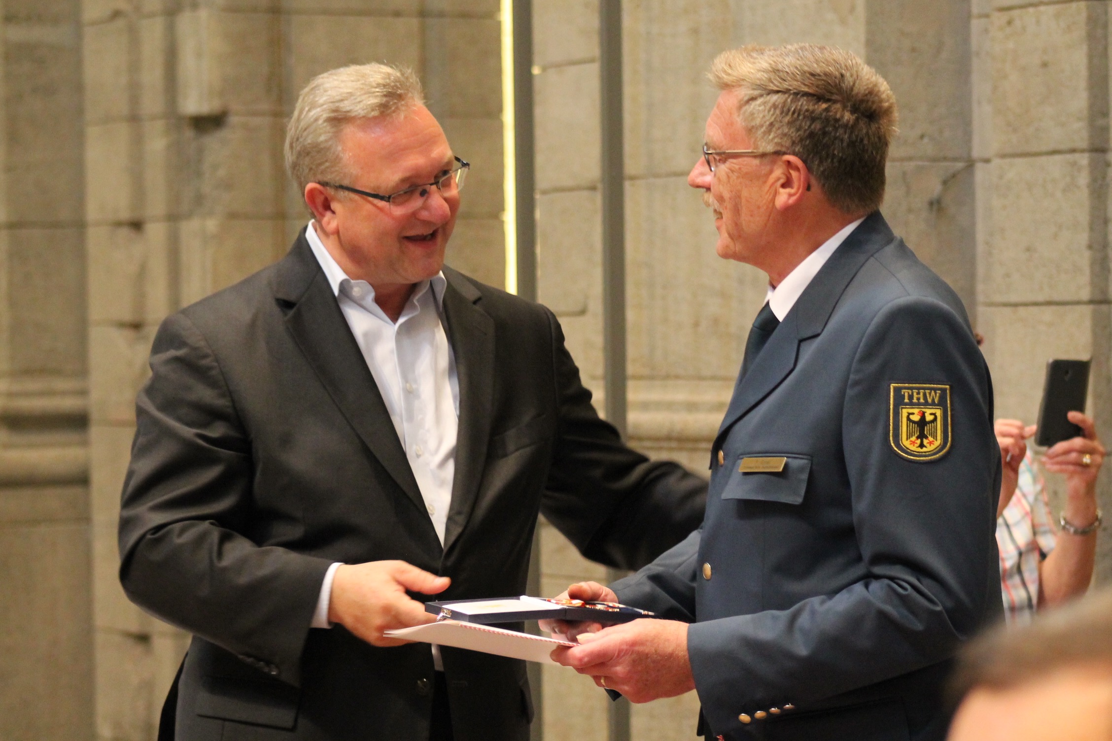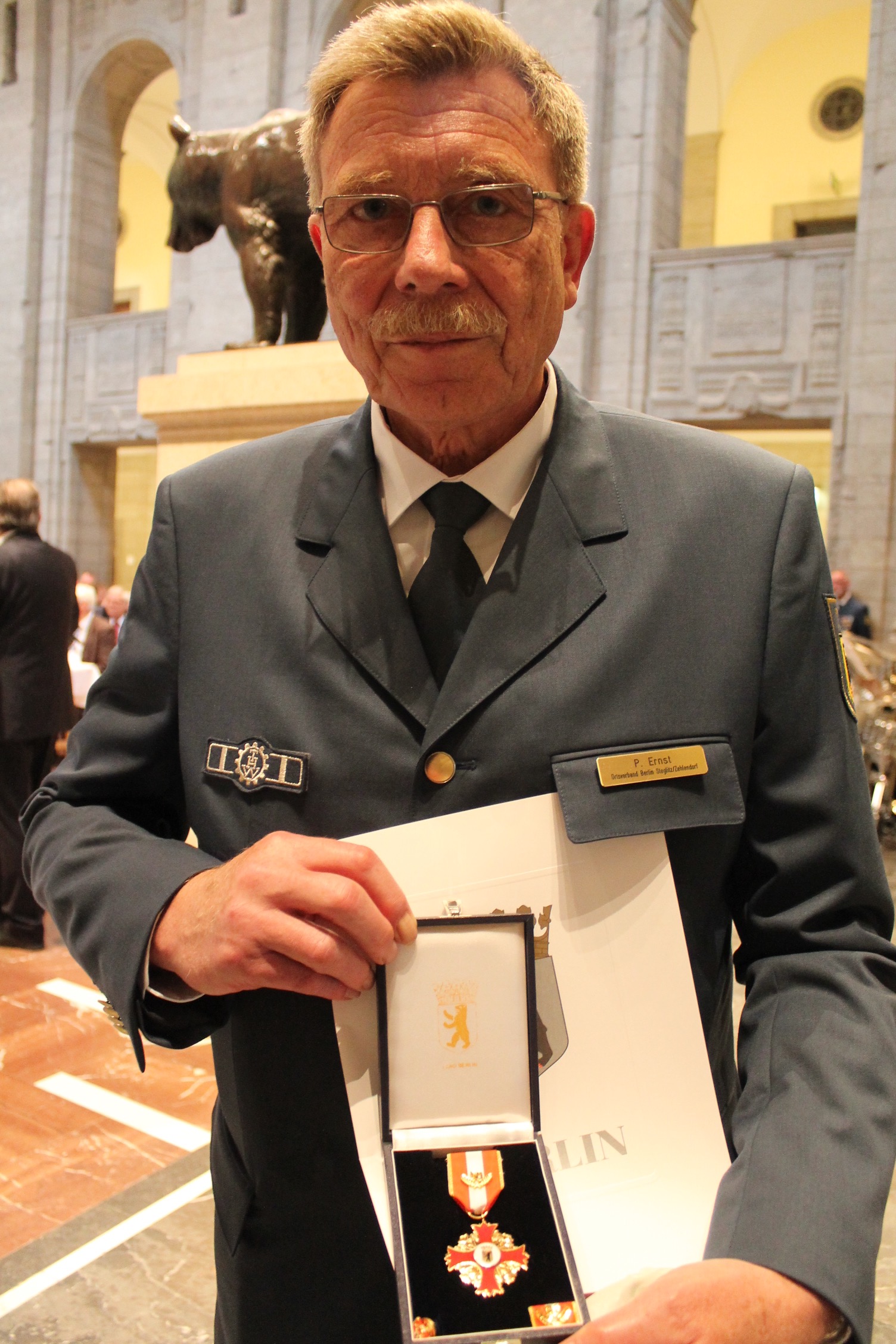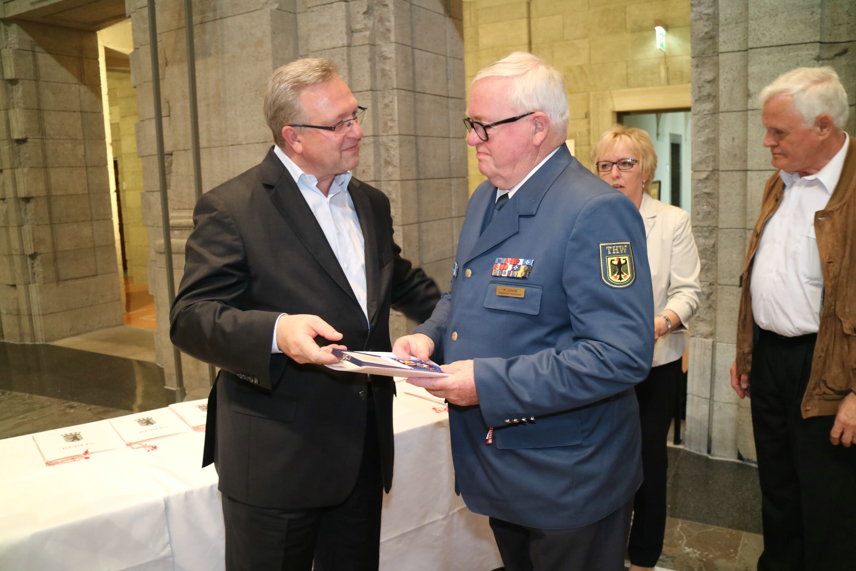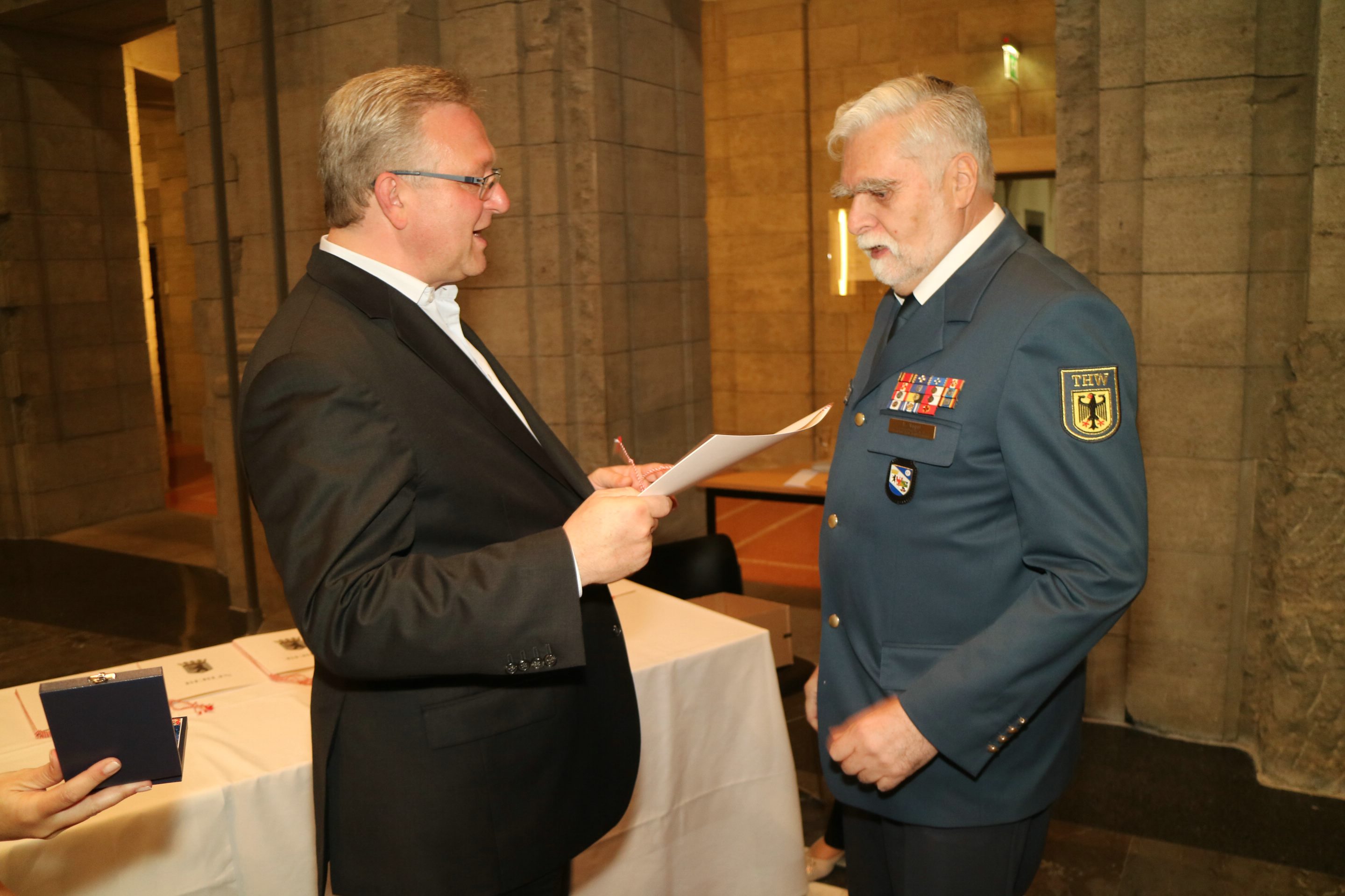 Erstmals ehrte der Berliner Innensenator Frank Henkel Ehrenamtliche für ihr 50- oder 60-jähriges Engagement in einer Hilfsorganisation, bei der Feuerwehr oder im Technischen Hilfswerk. Die 38. Verleihung der Feuerwehr- und Katastrophenschutz-Ehrenzeichen fand im Bärensaal des Alten Stadthauses am 25. Mai 2016 statt. Auch 19 Berliner THW-Helfer waren zu der Feierstunde eingeladen. Siekönnen insgesamt 1.000 ehrenamtliche Dienstjahre vorweisen.