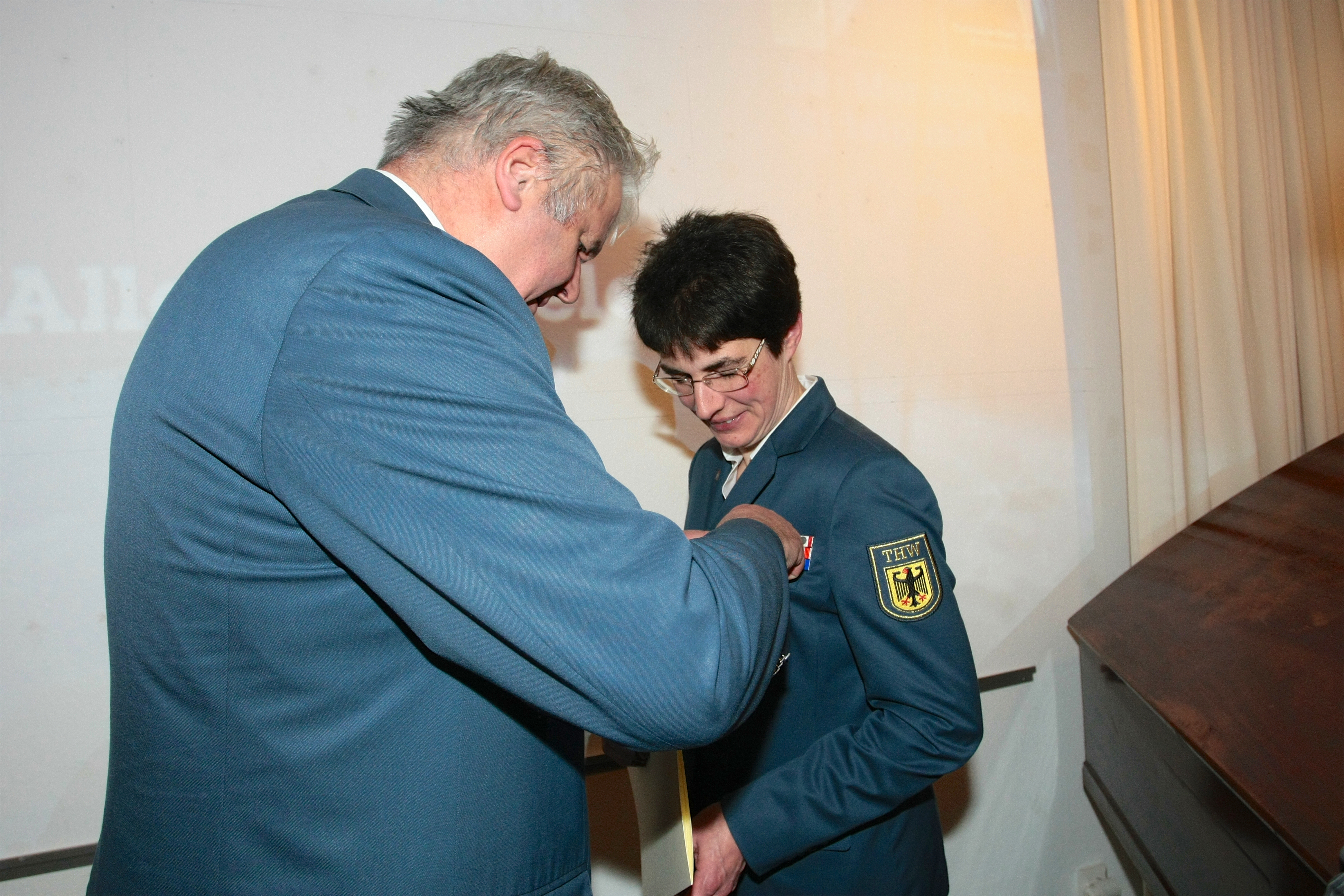 Eine ganz besondere Überraschung gab es für unsere Ortsbeauftragte Hedwig Karkut bei der Eröffnung der THW-Ausstellung im Heimatmuseum Steglitz: Der Präsident der Bundesanstalt Technisches Hilfswerk, Albrecht Broemme, verlieh ihr für ihre Verdienste das THW-Ehrenzeichen in Bronze. Damit würdigte er nicht nur ihre Leistungen im aktuellen Amt, sondern auch ihre Verdienste um die Weiterentwicklung des Ortsverbandes und die Zusammenarbeit mit der staatlichen Feuerwehr Polens.