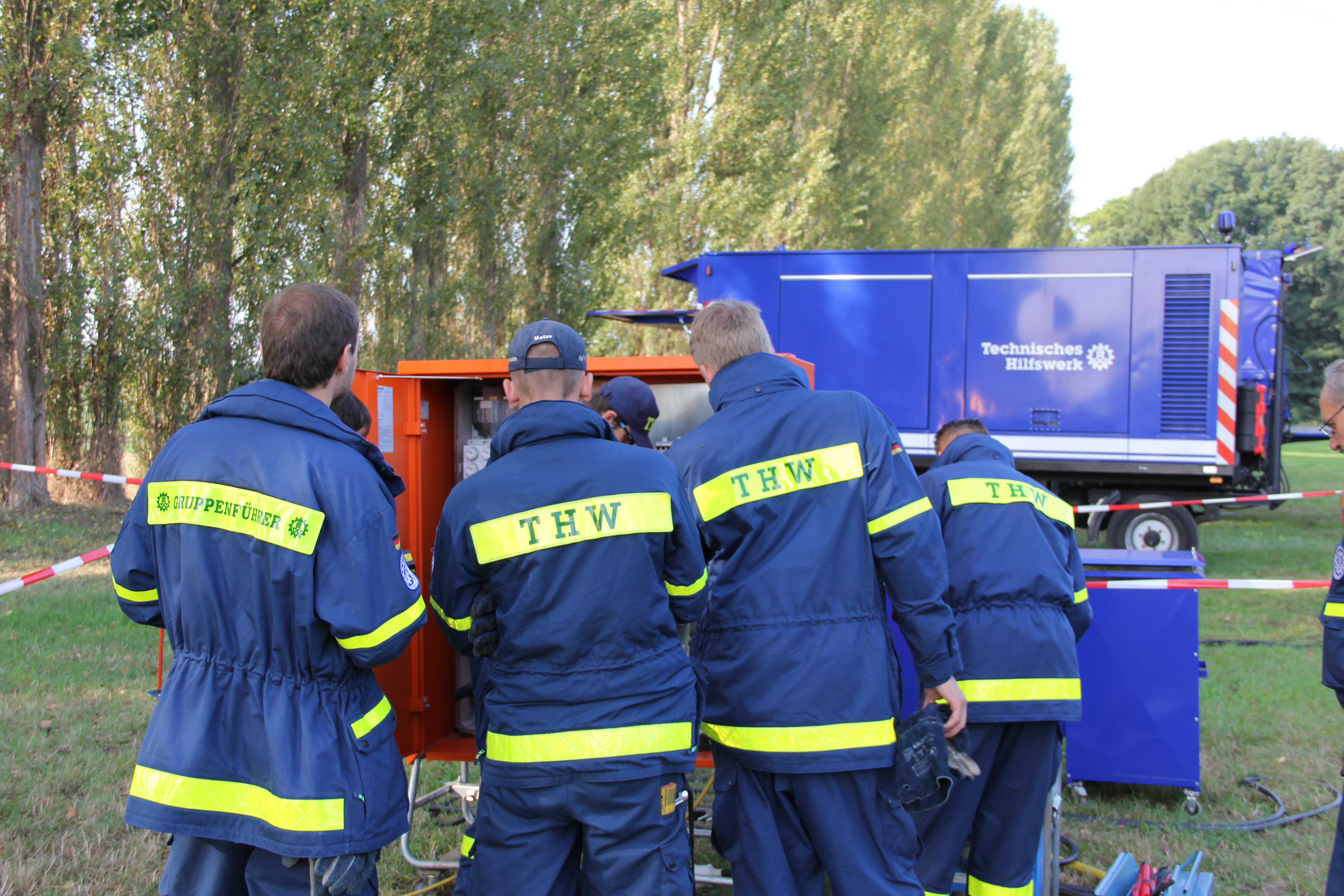 Aus den Ortsverbänden Bad Belzig, Berlin Lichtenberg, Berlin Steglitz-Zehlendorf, Burg, und Eberswalde waren rund 30 Einsatzkräfte nach Havelberg in Brandenburg gekommen, um dort die eigene Ausbildung zu vertiefen. In der Elektroversorgung sind viele Talente gefragt. Neben handfesten Tätigkeiten wie dem Bau von Verbindungen für beschädigte Stromleitungen wird viel gerechnet, denn beim Umgang mit elektrischem Strom ist nur gut geprüfte Arbeit auch sicher. Die Netzersatzanlagen des THW, von denen zwei für die Übung genutzt wurden, fordern außerdem ein hohes Maß von technischem Verständnis.