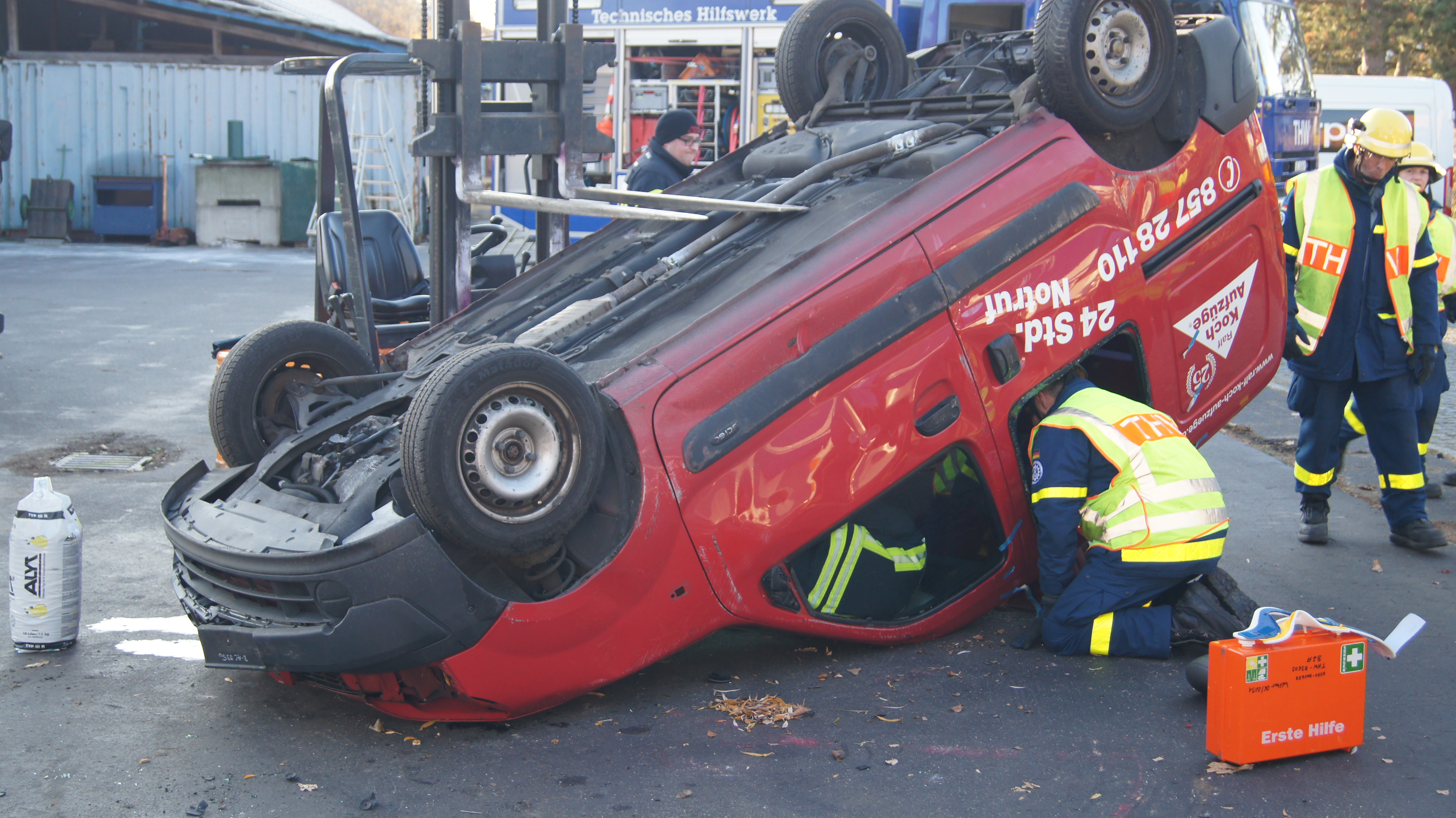 Ein Verkehrsunfall! Eine eingeklemmte Person muss freigeschnitten werden – jetzt muss schweres Gerät her! Eigentlich ist der Umgang mit den hydraulischen Rettungsgeräten Schere und Spreizer jeder Einsatzkraft seit der Grundausbildung bekannt, doch die Kenntnisse sollen und müssen regelmäßig aufgefrischt werden, da diese Art von Einsätzen normalerweise von der Feuerwehr bewältigt werden muss. Die groben Kräfte der mit über 700bar Öldruck betriebenen Gerätschaften und die filigrane Befreiung der Geschädigten zusammenzubringen, ist die große Herausforderung der Fahrzeugrettung.