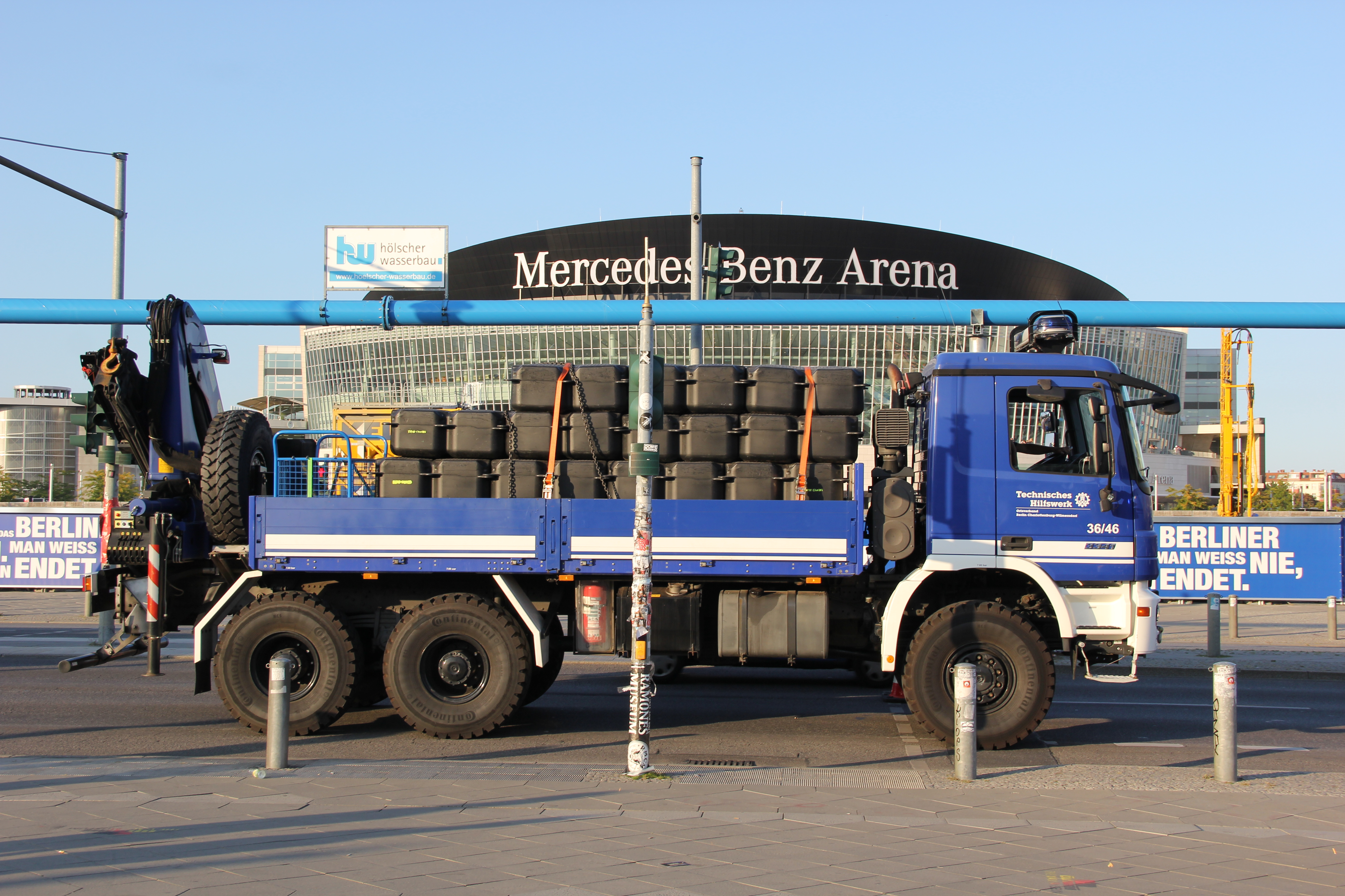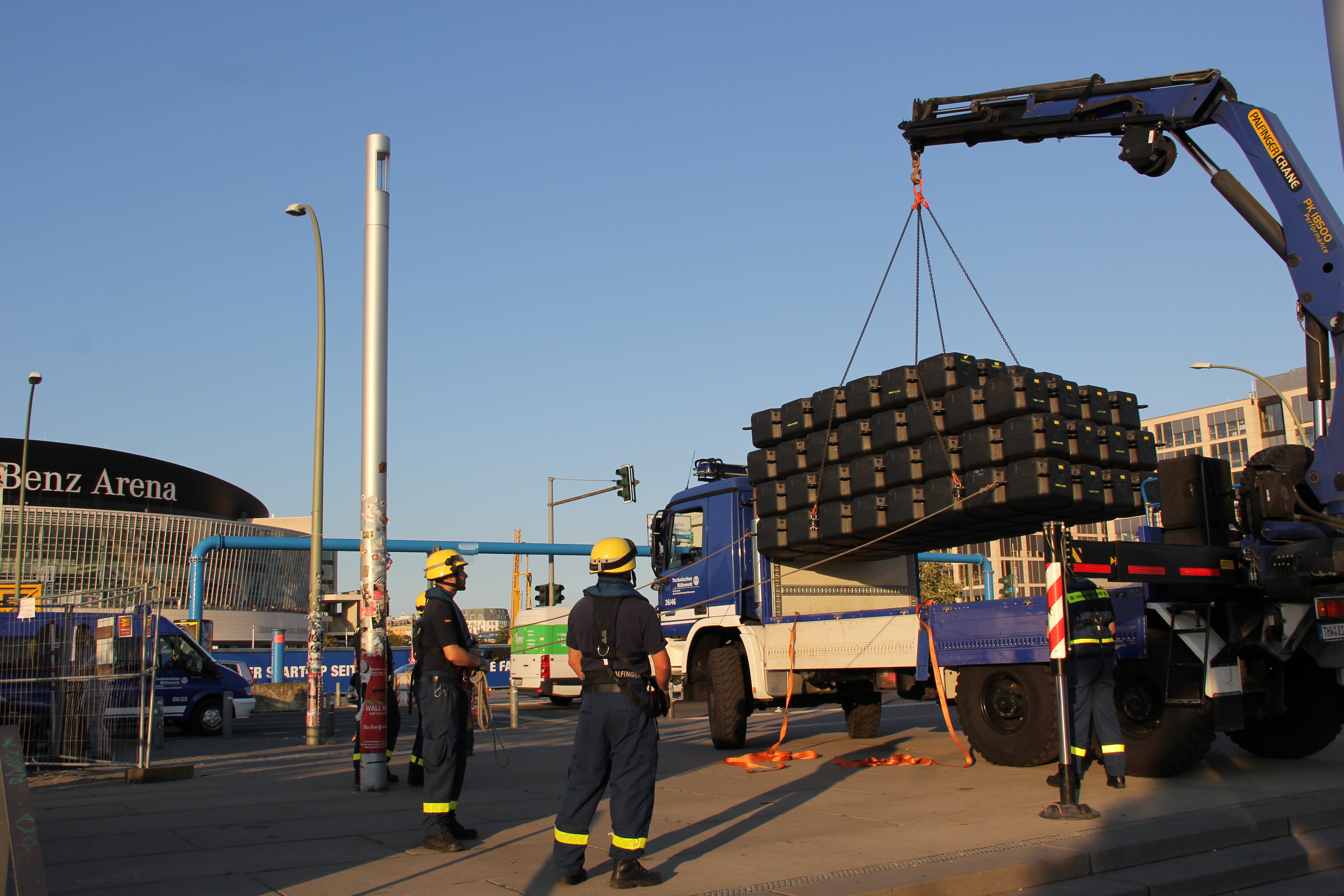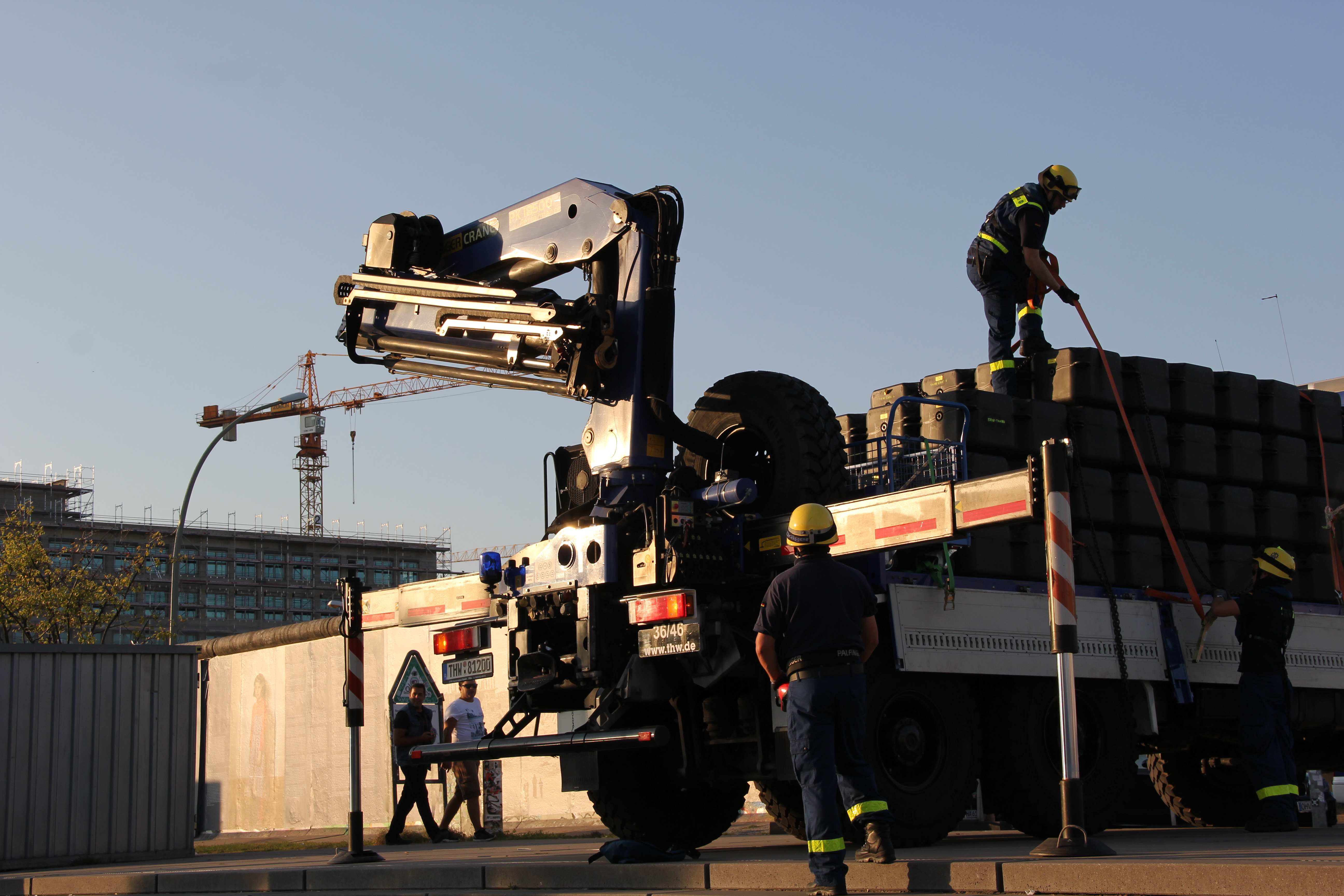 Gemeinsam mit den Ortsverbänden Berlin Charlottenburg-Wilmersdorf, Berlin Neukölln, Berlin Reinickendorf und Potsdam bauten unsere Einsatzkräfte am gestrigen Mittwoch die luftgefüllten Kunststoffteile zunächst am Ufer zu handlichen Flächen zusammen, die dann direkt auf dem Wasser verbunden wurden. Über 40 Frauen und Männer aus den Ortsverbänden waren am Abend bis zum Einbruch der Dunkelheit im Einsatz, um den rechtzeitigen Aufbau für die Rennläufe am Samstag und Sonntag zu gewährleisten.