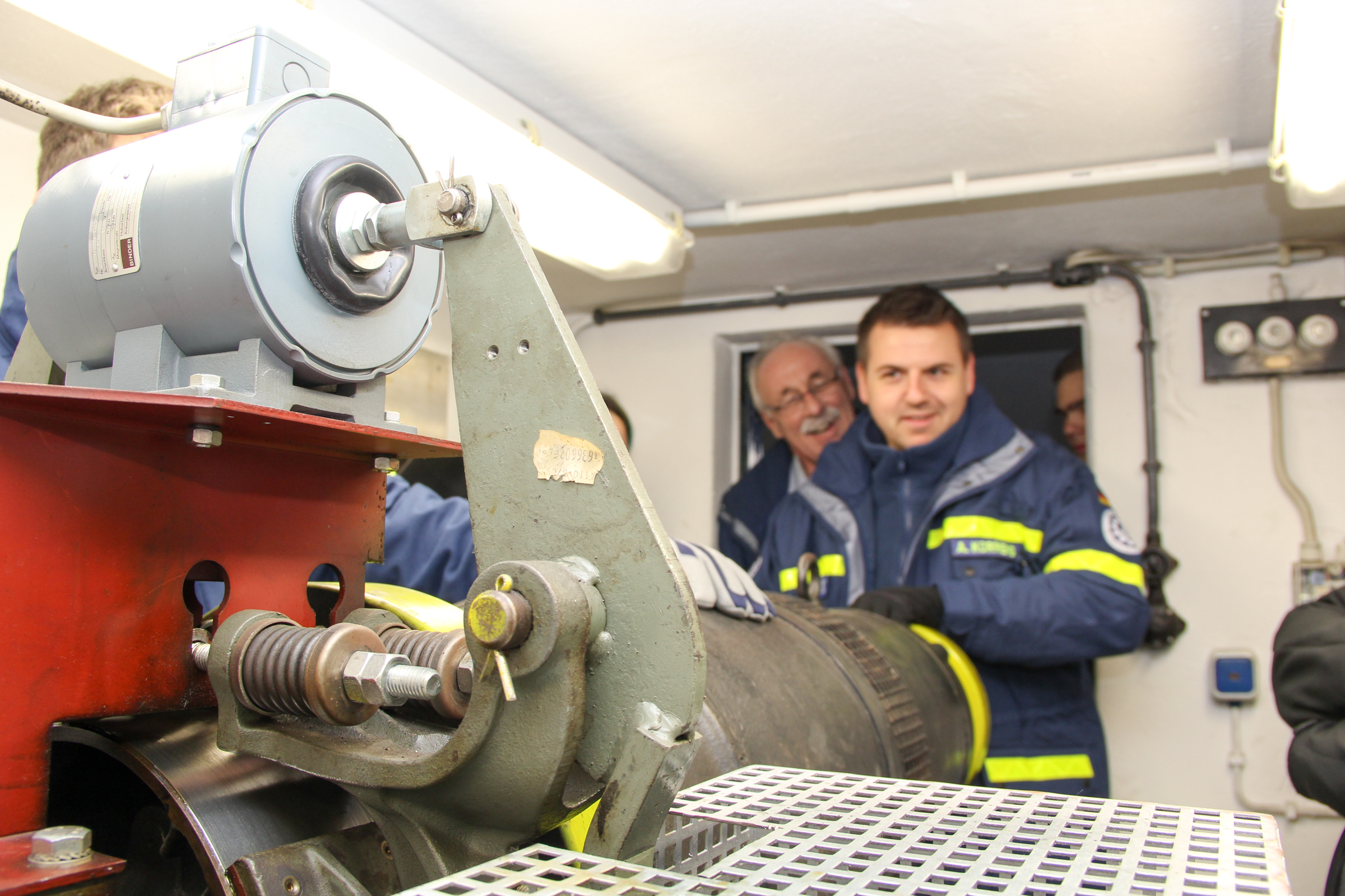 Dabei lernen sie nicht nur Aufbau und Funktionsweise verschiedenster Aufzugstypen kennen, sondern werden auch theoretisch in der Befreiung unterwiesen. Danach geht es in einen praktischen Teil, wo sich die Helferinnen und Helfer mit der Technik beschäftigen und selbst Befreiungsmaßnahmen üben können.